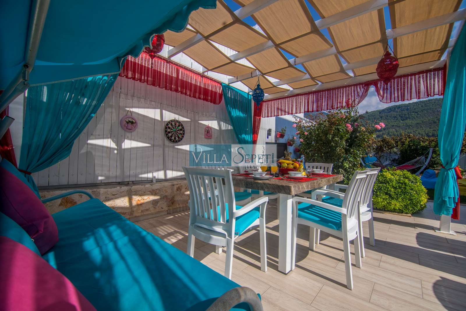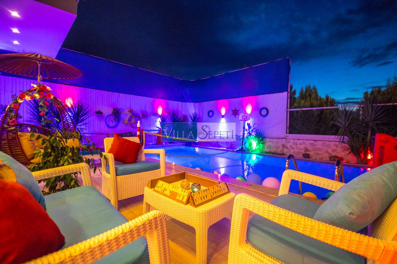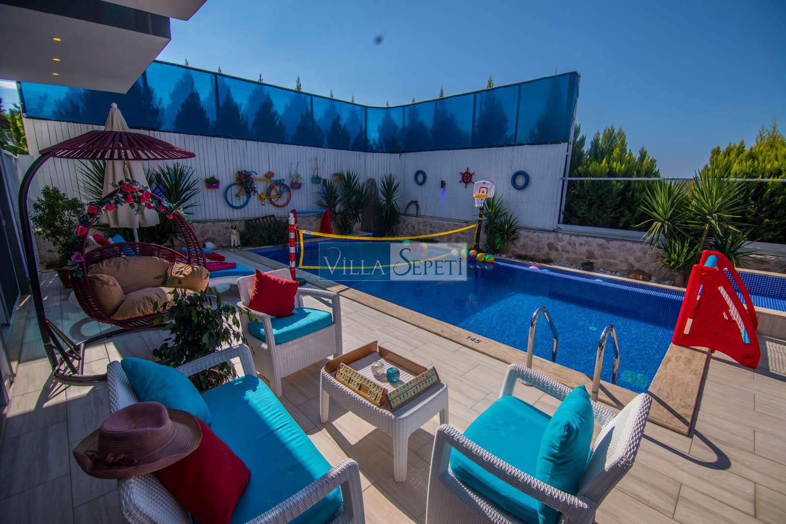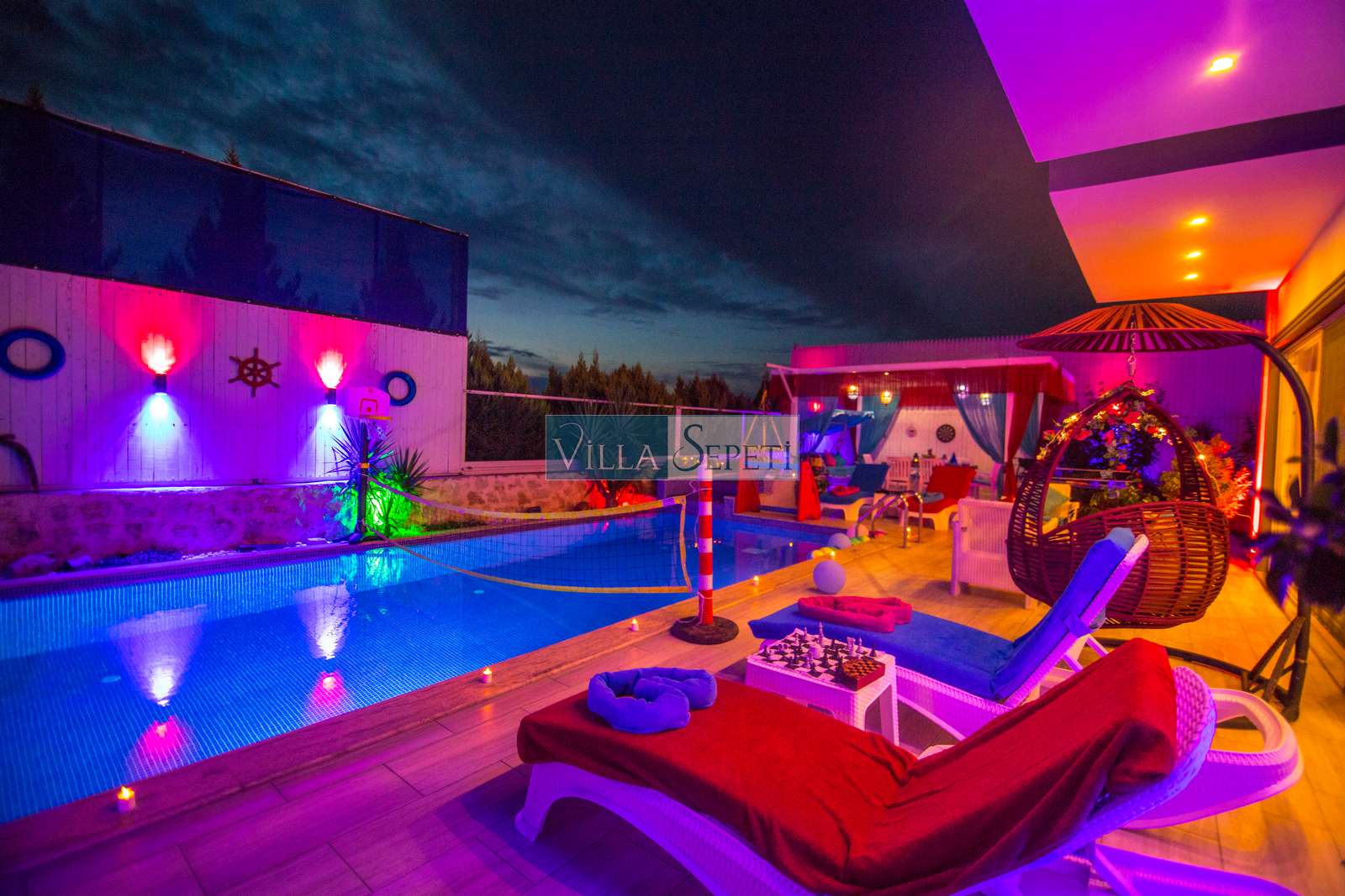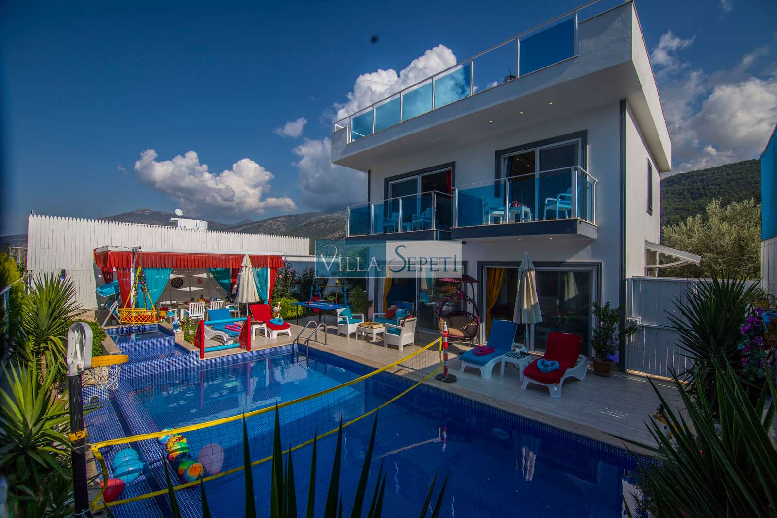 Villa Emir, Kalkan Üzümlü Köyü'nde yer alan mutlu bir tatil garantili, çok özel ve güzel bir tatil evidir. İçerisinde her detay düşünülerek tasarlanan villanın terası oldukça geniştir. Bu terasta yer alan geniş, müstakil yüzme havuzunun hemen bitişiğinde çocuk havuzu da yer almaktadır. Dışarıdan havuzu gözükmeyen villamız, balayı misafirleri ve muhafazakar aileler için çok idealdir. Doğa içerisinde konumlanan evimizin pencerelerinde sineklik mevcuttur. Konumu gereği araç gereklidir zira etraftaki güzellikleri keşfetmeniz açısından da lazım olacaktır.