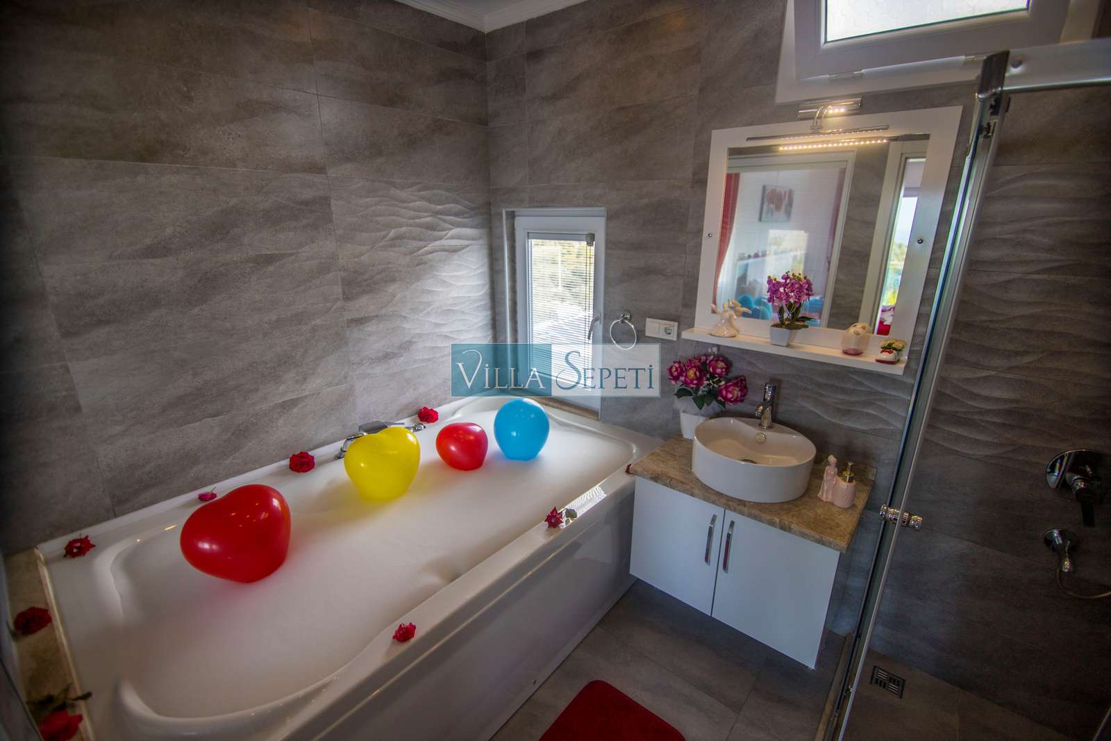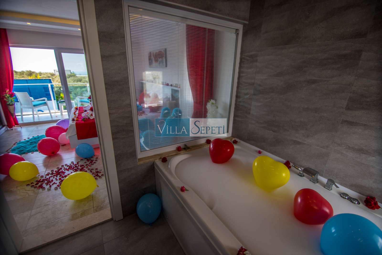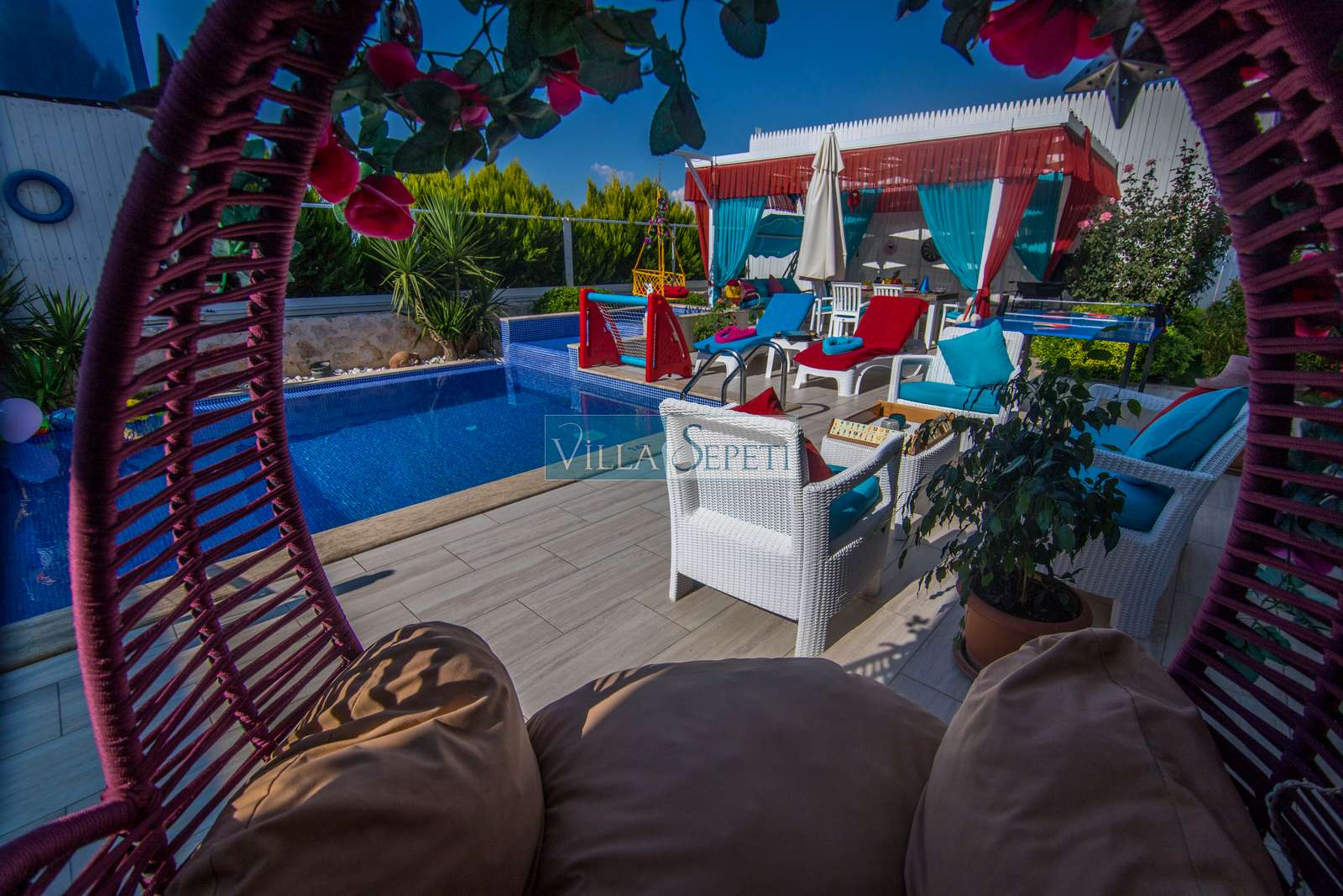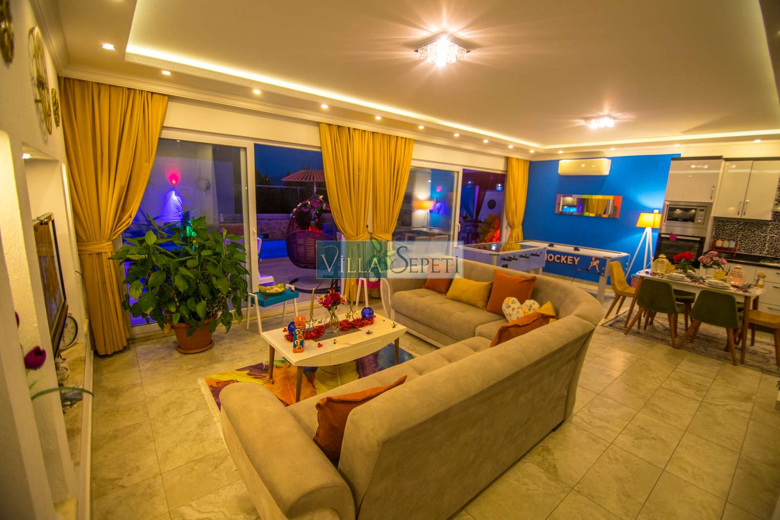 Villa Emir, Kalkan Üzümlü Köyü'nde yer alan mutlu bir tatil garantili, çok özel ve güzel bir tatil evidir. İçerisinde her detay düşünülerek tasarlanan villanın terası oldukça geniştir. Bu terasta yer alan geniş, müstakil yüzme havuzunun hemen bitişiğinde çocuk havuzu da yer almaktadır. Dışarıdan havuzu gözükmeyen villamız, balayı misafirleri ve muhafazakar aileler için çok idealdir. Doğa içerisinde konumlanan evimizin pencerelerinde sineklik mevcuttur. Konumu gereği araç gereklidir zira etraftaki güzellikleri keşfetmeniz açısından da lazım olacaktır.