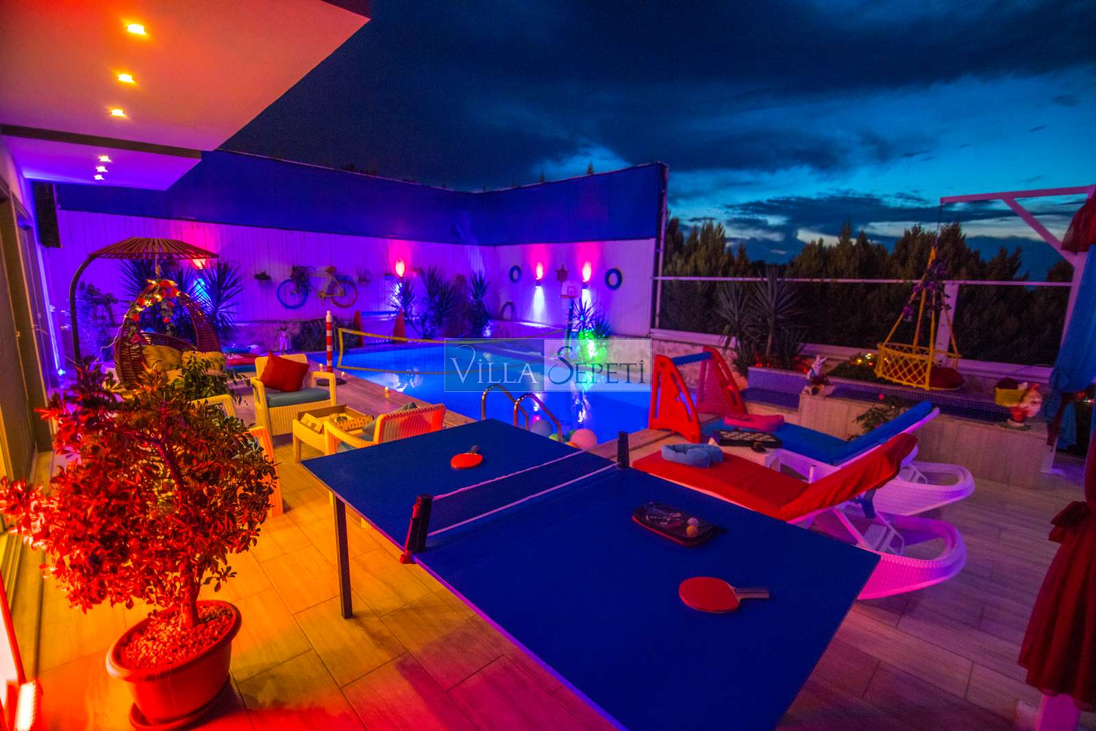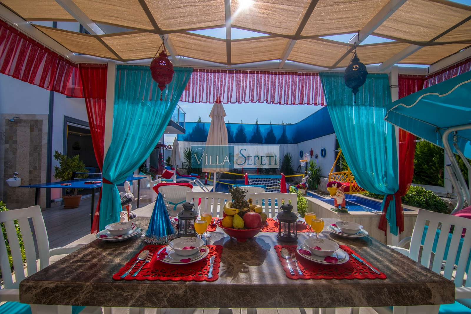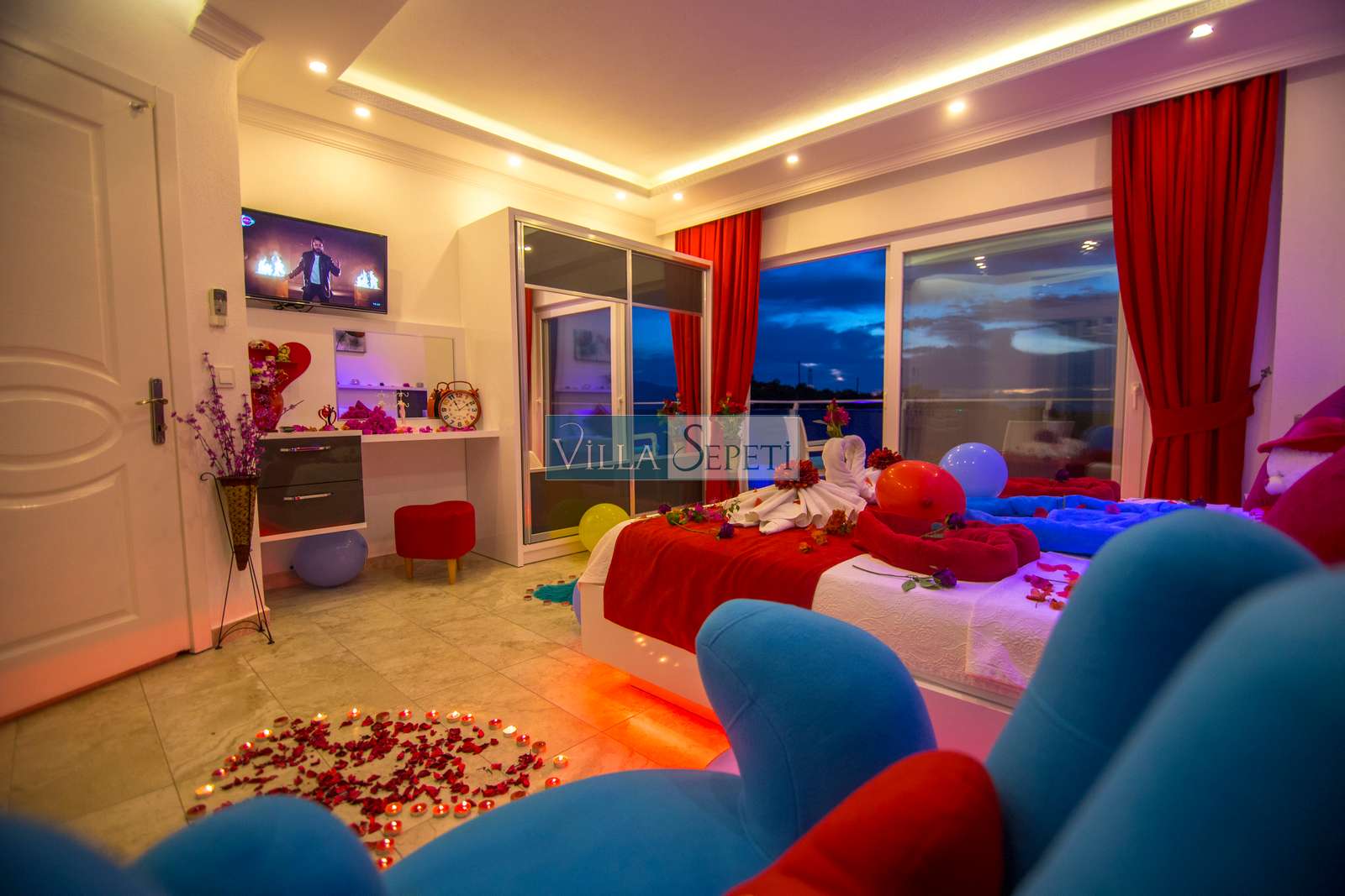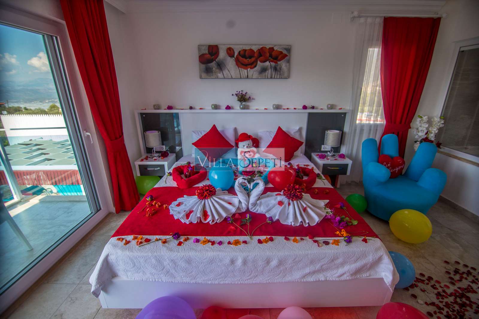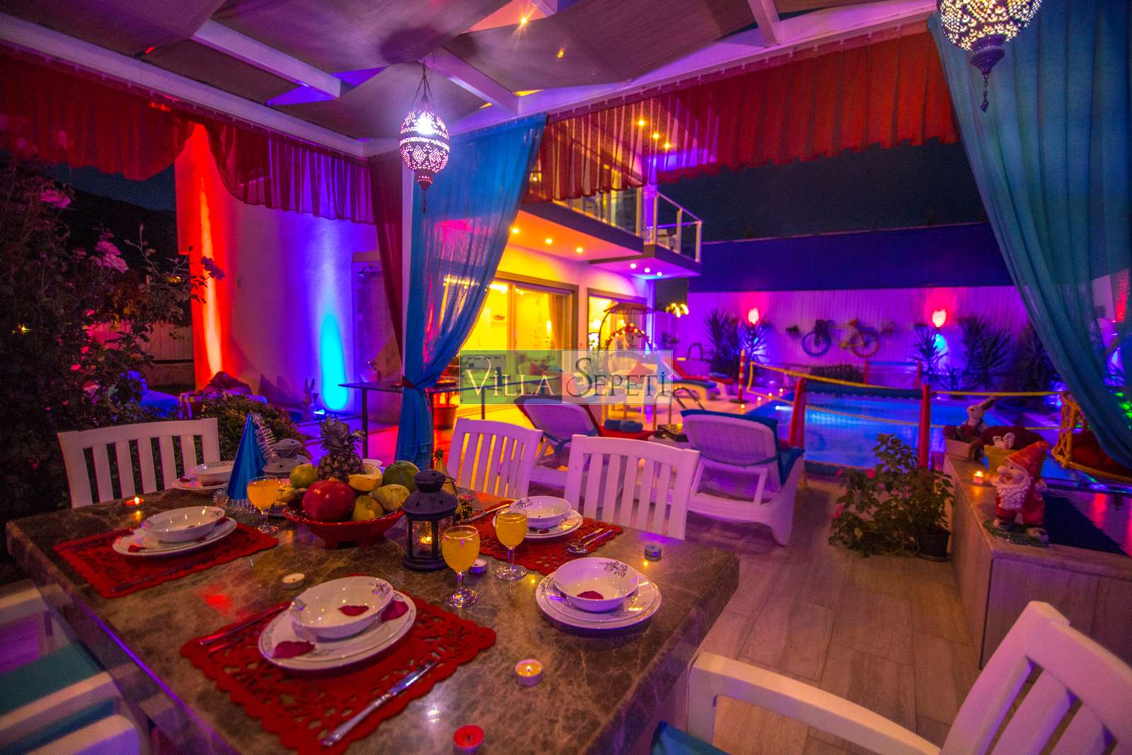 Villa Emir, Kalkan Üzümlü Köyü'nde yer alan mutlu bir tatil garantili, çok özel ve güzel bir tatil evidir. İçerisinde her detay düşünülerek tasarlanan villanın terası oldukça geniştir. Bu terasta yer alan geniş, müstakil yüzme havuzunun hemen bitişiğinde çocuk havuzu da yer almaktadır. Dışarıdan havuzu gözükmeyen villamız, balayı misafirleri ve muhafazakar aileler için çok idealdir. Doğa içerisinde konumlanan evimizin pencerelerinde sineklik mevcuttur. Konumu gereği araç gereklidir zira etraftaki güzellikleri keşfetmeniz açısından da lazım olacaktır.