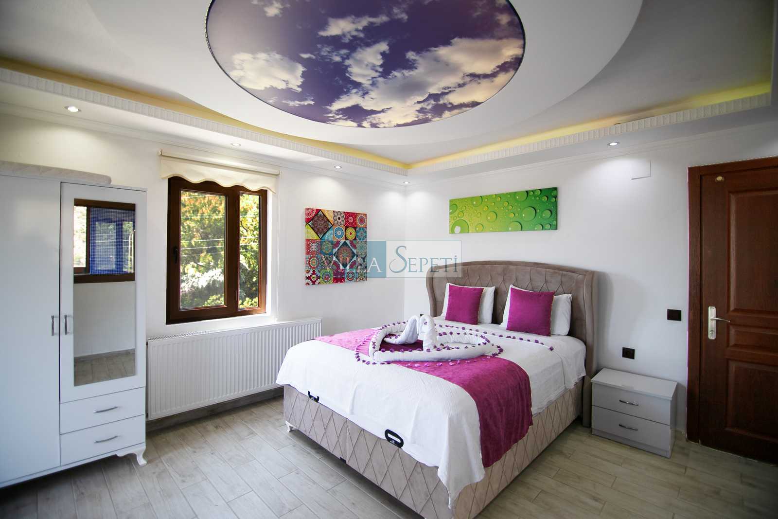 Genel not: Doğa içerisinde konuma sahip olan villalarımızın tamamı böcek ve haşereler için düzenli olarak temizlenmekte ve ilaçlanmaktadır. Doğa içerisinde konuma sahip olan evlerimizde, merkezde yer alan villalara nazaran böcek vb. çıkma ihtimali daha yüksektir. Bu not, bu evle ilgili değil doğa içerisinde konuma sahip olan tüm evlerin bilgilerinde yazılmaktadır.