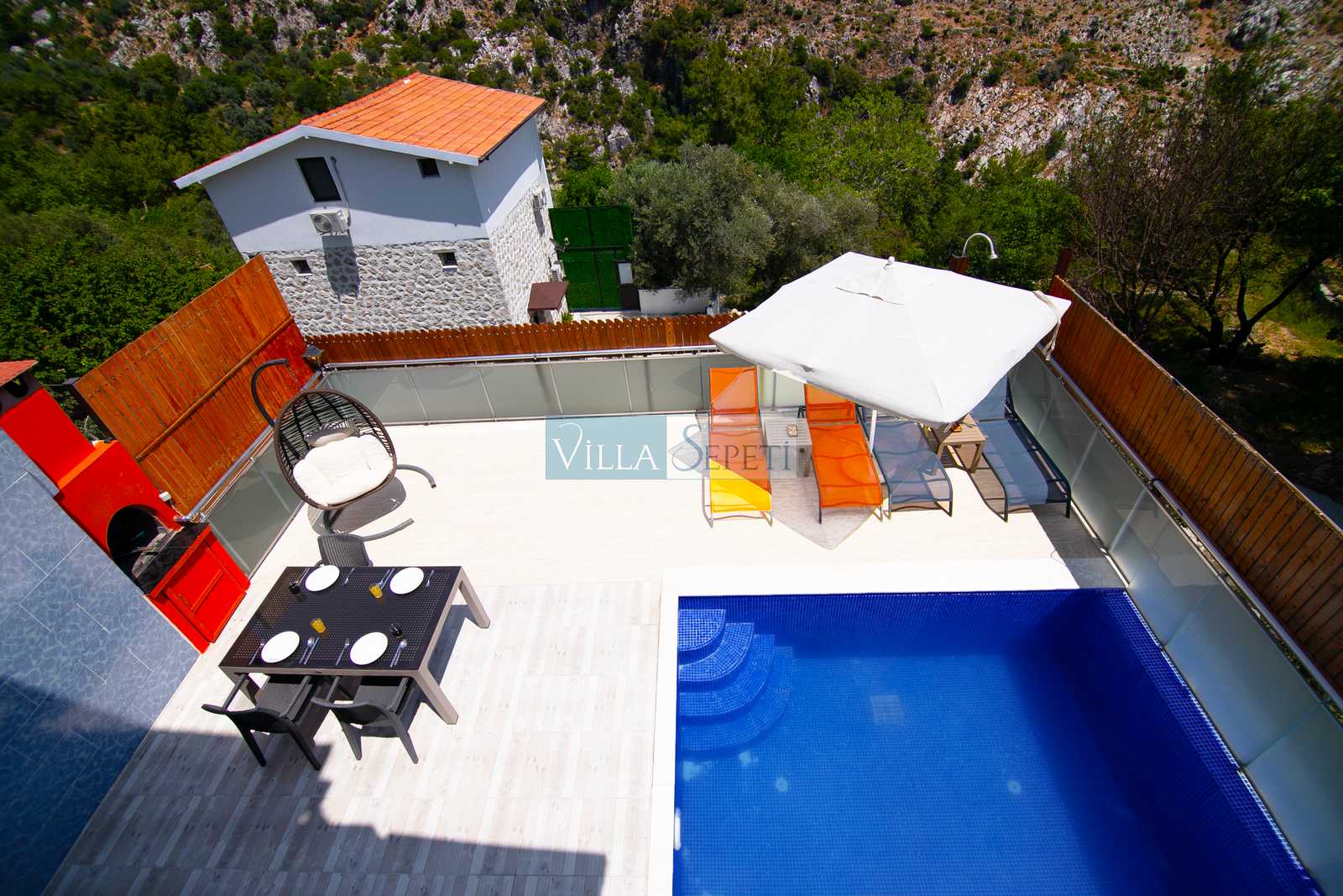 Villa Fark, Kalkan İslamlar bölgesinde konumlanan özel havuzu tam korunaklı villamızdır. Tamamen yemyeşil bir doğa içerisinde konumlanan villamız, özellikle balayı misafirleri ve çocuklu aileler için çok ideal bir seçenektir. Yan tarafında bulunan bahçede ev sahibimizin domates, biber, salatalık vs. gibi birçok sebze bulunmaktadır ve tüm misafirlerimiz bunlardan faydalanmaktadır. Ayrıca köy içerisinde bulunan birçok markette organik yumurta, bal vs. gibi birçok yiyeceği bulabileceksiniz.