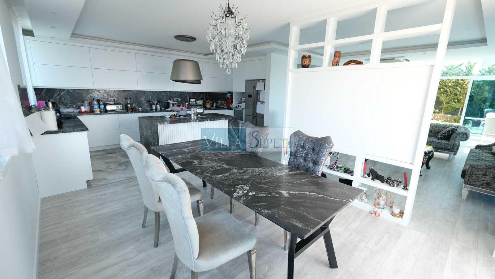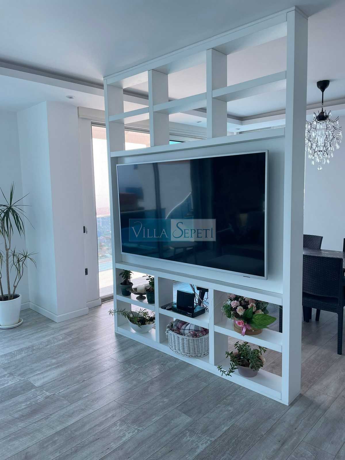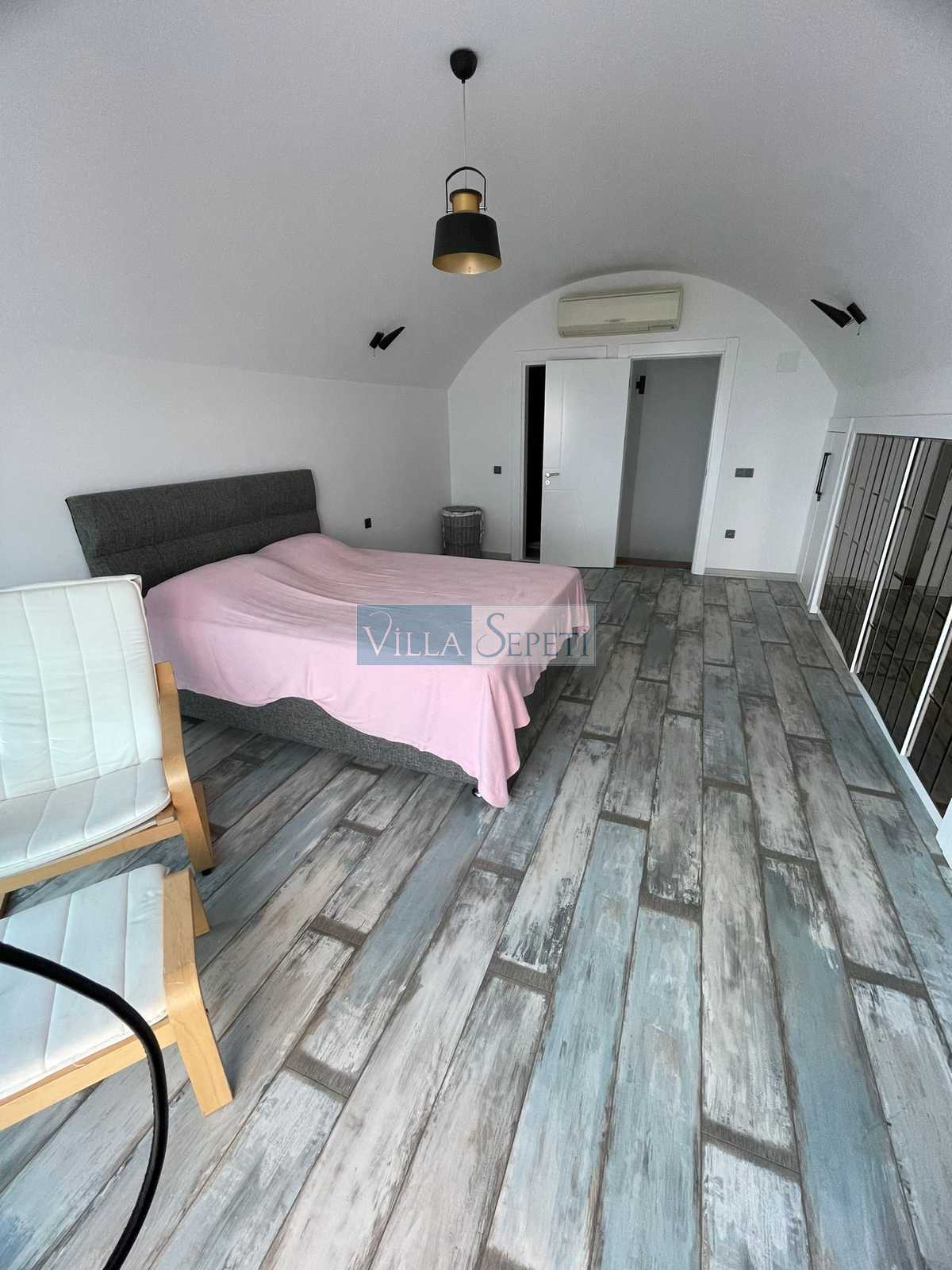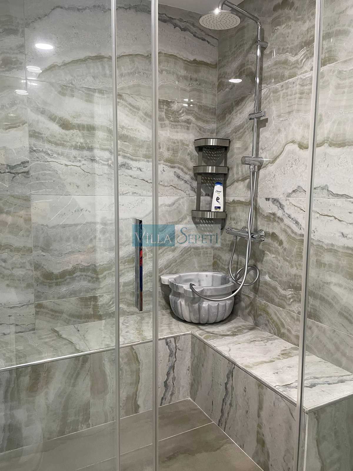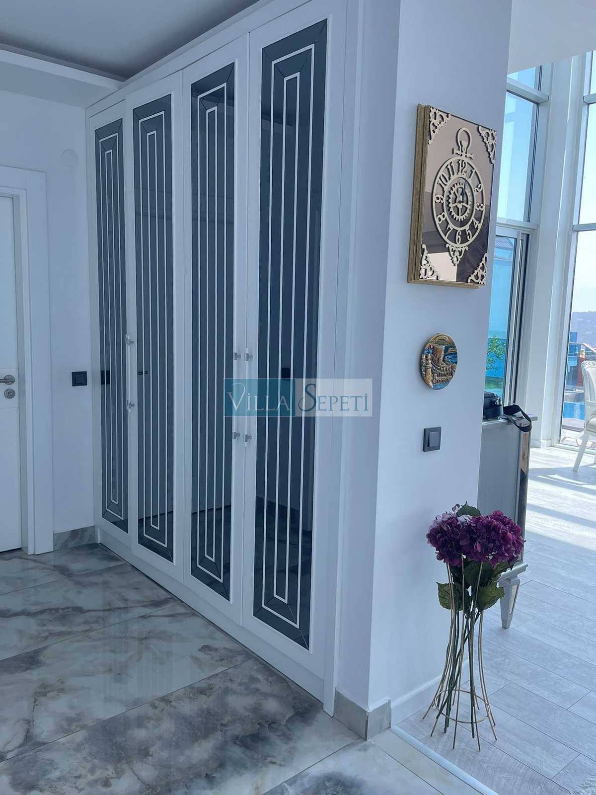 Villamızın zemin katında bir adet çift kişilik yatağa sahip, klimalı bir yatak odası, banyo, çamaşır odası, mutfak ve oturma grubu bulunan bir salon mevcuttur. Giriş katında ise amerikan mutfak, oturma grubu, TV, klima, WC, şömine yer almakta olup ve bu kattan bahçeye ve havuza giriş yapılmaktadır. Üst katta üç yatak odasından ikisi çift kişilik yatak ve klimalı olup, bir tanesi tek kişilik yataklı, klimalı ve ebeveyn banyoludur. Ayrıca bu katta bir adet banyo bulunmaktadır. En üst katta ise bir adet çift kişilik yatak, klima ve ebeveyn banyolu yatak odası ve terası yer almaktadır.