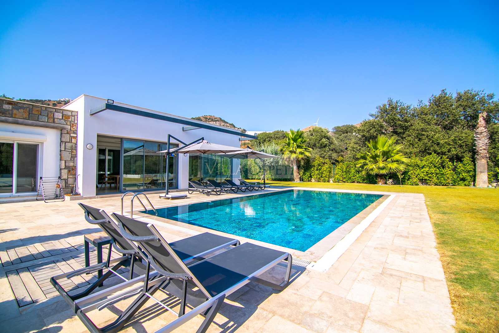 Villa Miju Gümüşlük 3, Bodrum’un gözde bölgelerinden biri olan Gümüşlük mevkiinde, site içerisinde yer alan, çok geniş ve yemyeşil bahçe alanına sahip, özel havuzlu müstakil bir villadır.