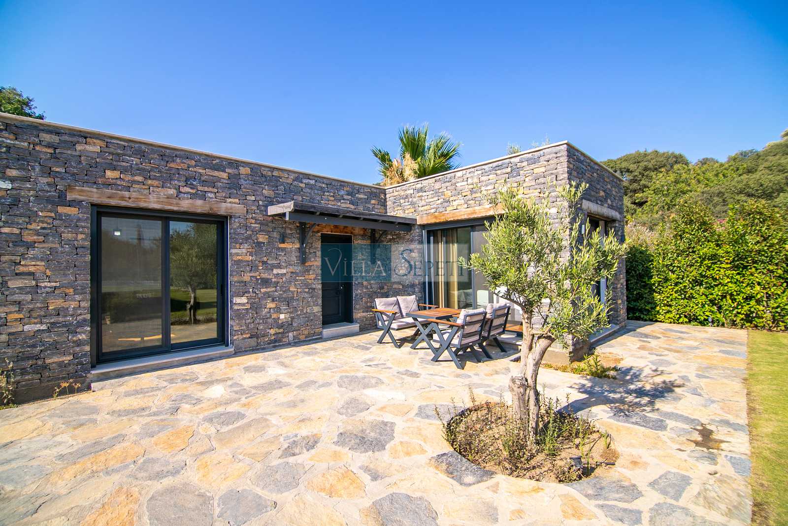 Önemli Not: Tek katlı yapıya sahip olan Villa Miju Gümüşlük, 1+1 müştemilatı ile Villada 6, müştemilatta 2 olacak şekilde maksimum 8 kişilik konaklama kapasitesi sunmaktadır.