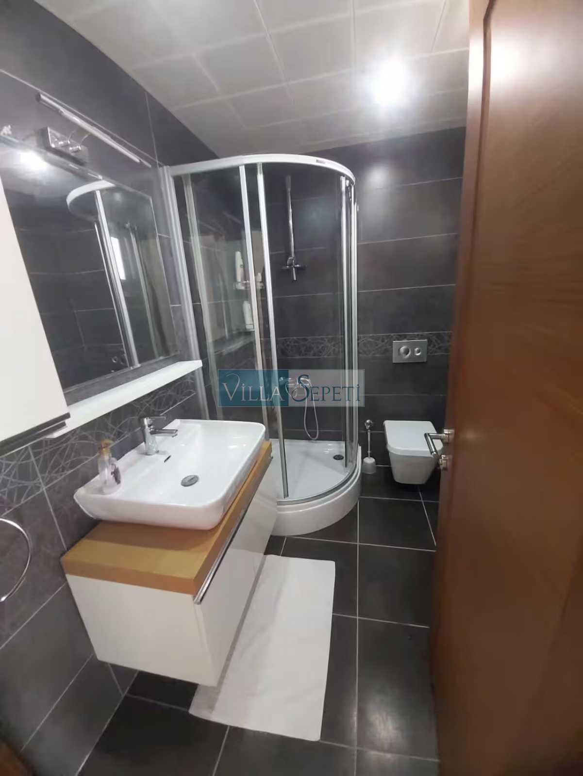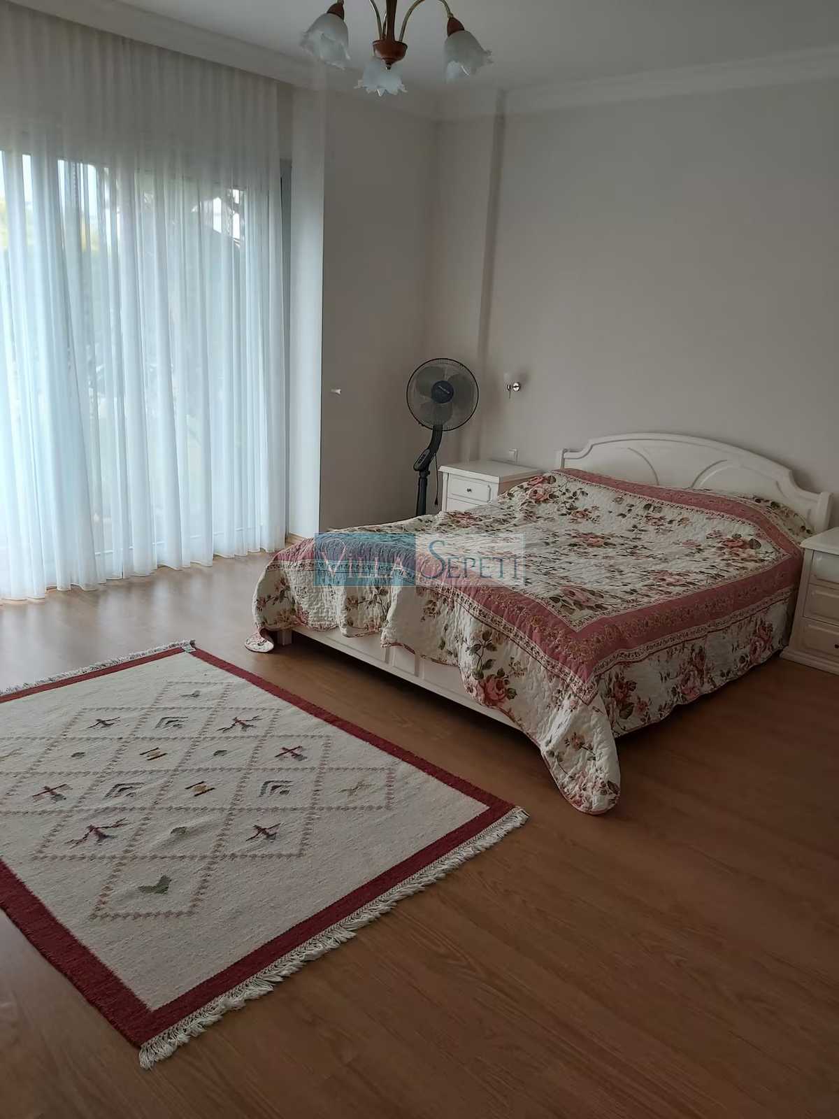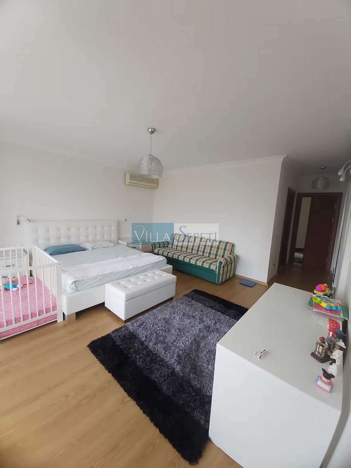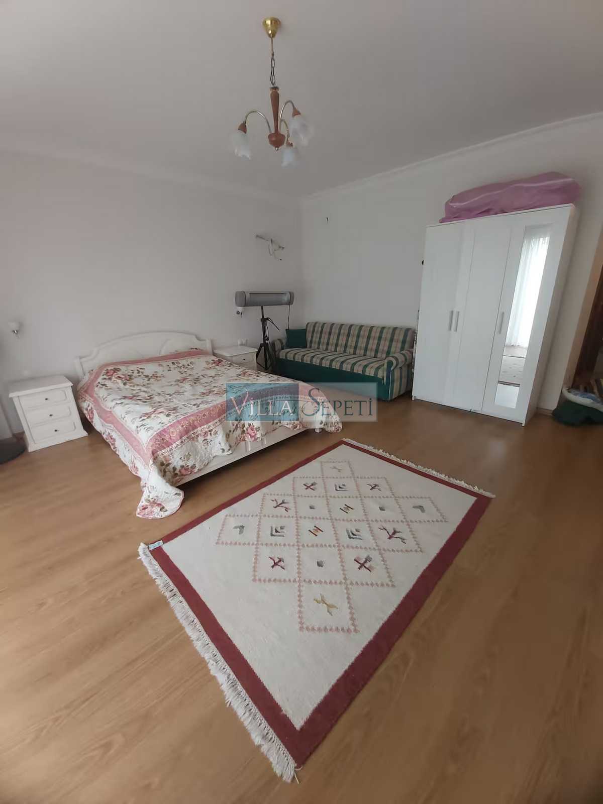 Villamızın içerisinde 4 adet yatak odası ve 4 adet banyo mevcuttur. Bir çift kişilik yatağın bulunduğu yatak odası giriş katta yer alırken, diğer üç adet yatak odası üst katta konumlanmaktadır. Üst katta yer alan yatak odalarının bir tanesi suit oda olmakta olup, oda içinden açılan kapı iki tek kişilik yatağın bulunduğu bölüme açılmaktadır. Diğer yatak odasında bir çift kişilik yatak, wc-duş ve klima, bir diğer yatak odasında ise iki ayrı tek kişilik yatak ve wc-duş mevcuttur. Yatak odalarının tümü ebeveyn banyoludur. Villamızın giriş katında ise açık mutfak, salon TV ve klima mevcuttur.