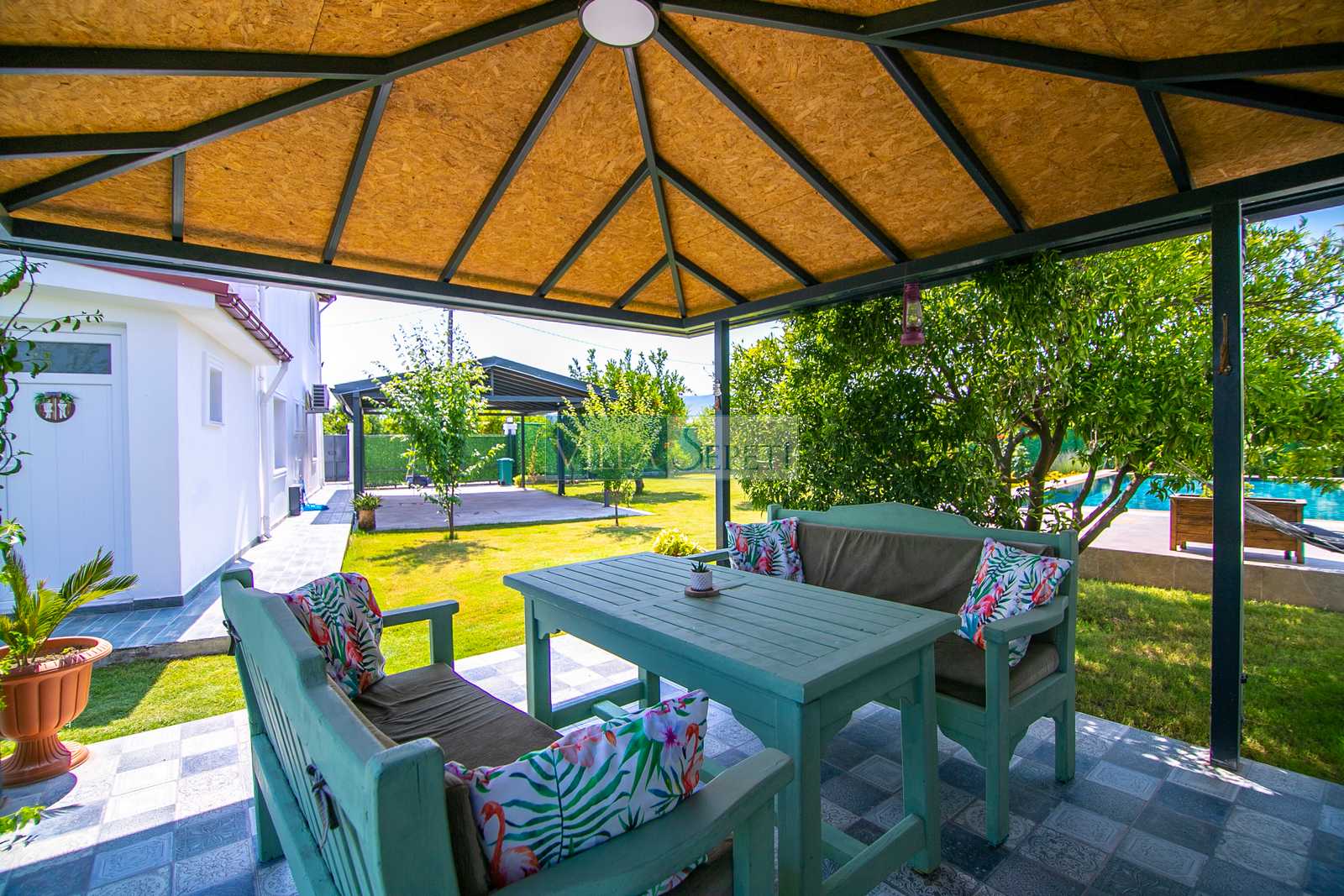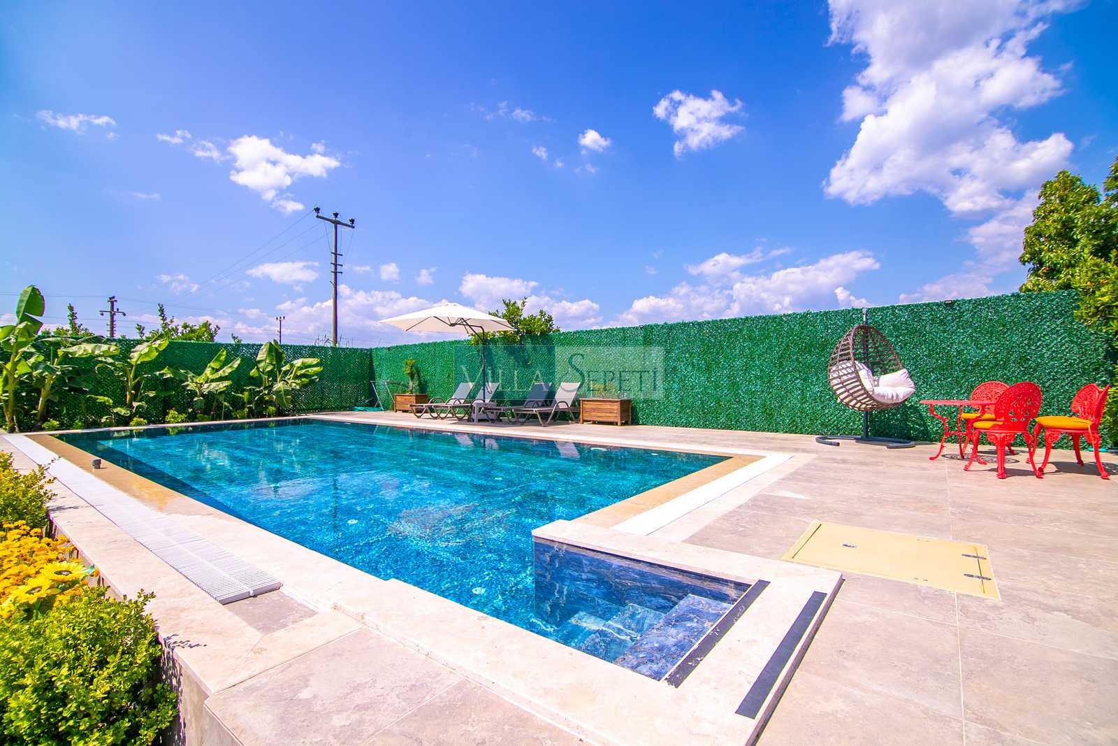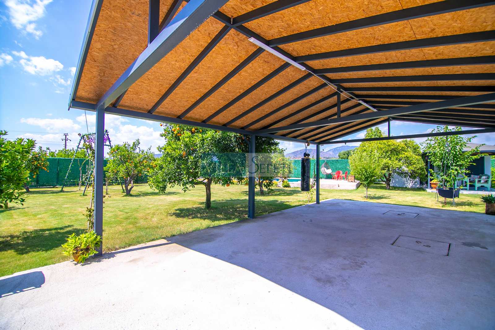 Villa Esterdis, geniş ve yemyeşil bahçe alanı ve portakal ağaçları ile doğanın sıcaklığı ve huzuruyla sarılı bir kaçış sunmaktadır. Havuzun tam korunaklı olması size özel bir gizlilik ve güvenlik sağlarken, bahçe alanında bulunan oturma grubu keyifli vakit geçirmeniz için düşünülmüştür. Akşamın keyfini hamakta çıkararak günün yorgunluğunu atabilirsiniz.