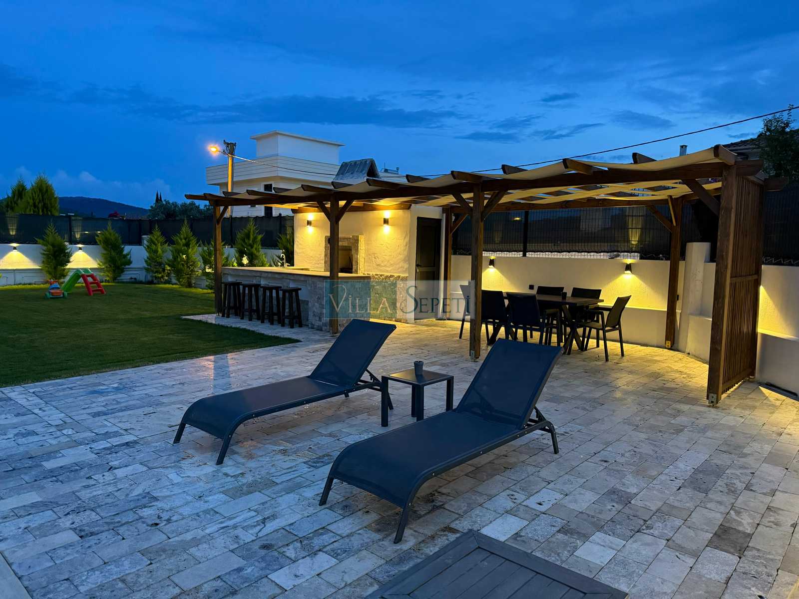Villamızın geniş ve yemyeşil bahçesinde, çocukların keyifli vakit geçirebileceği bir ortam sunuyoruz.