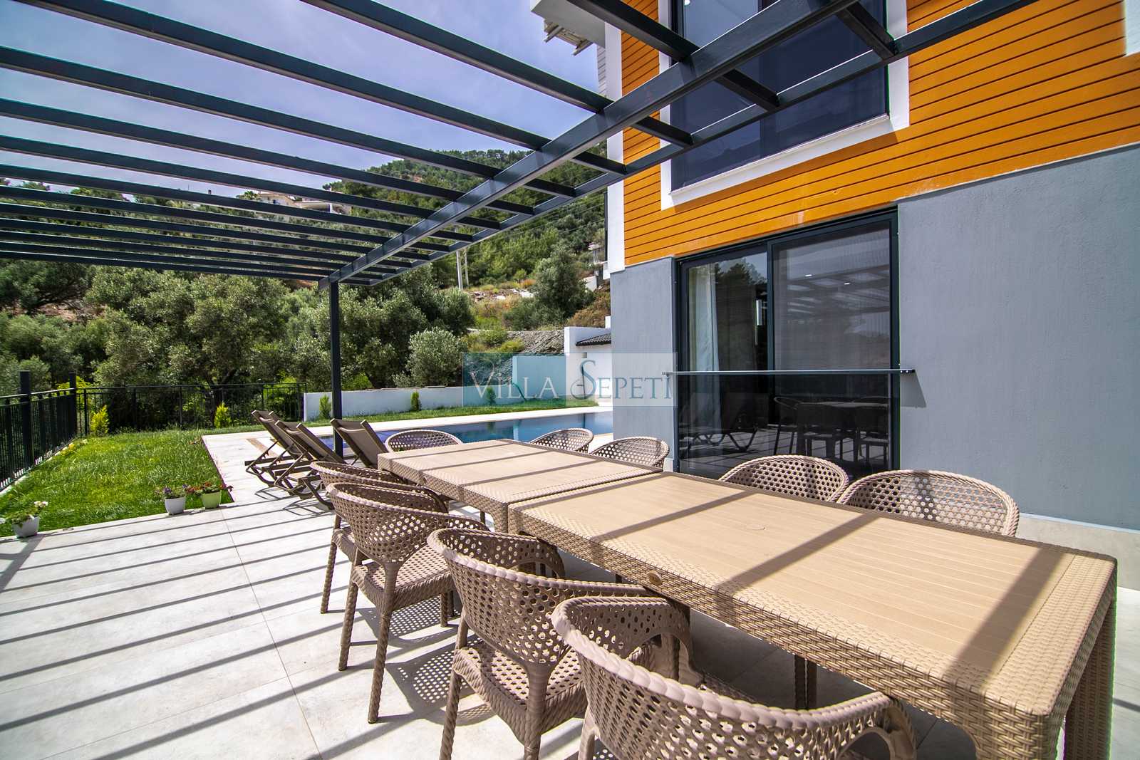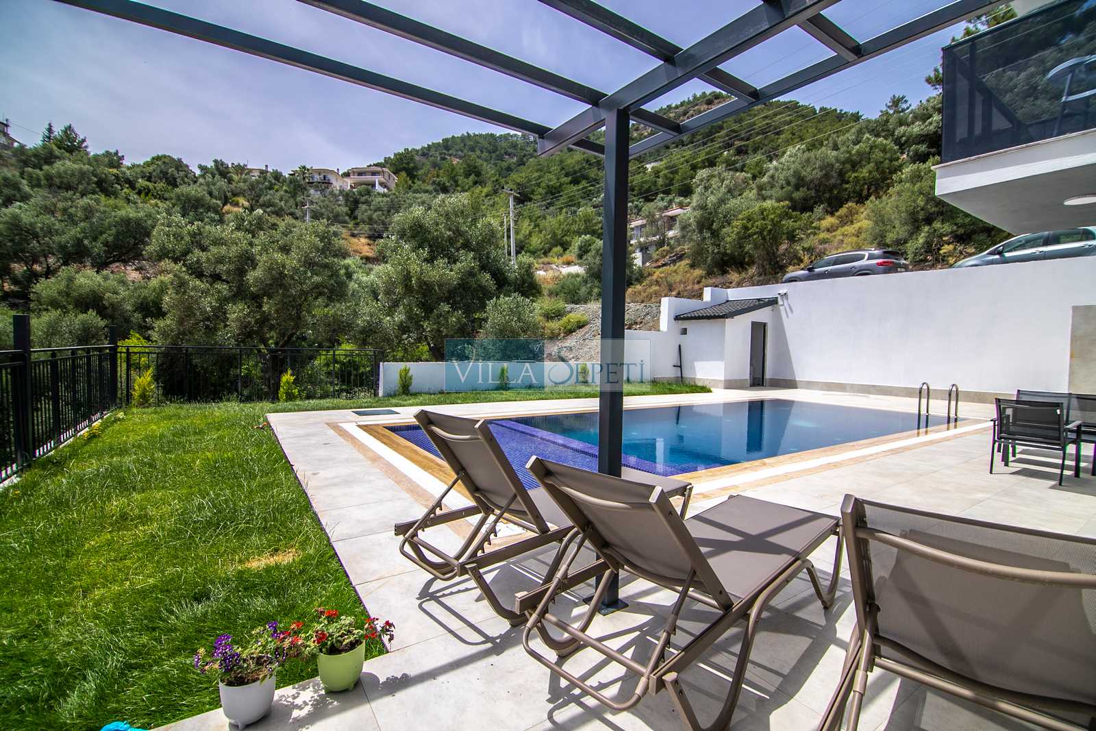 Not 2: Villamız güvenlik açısından kamera ile izlenmektedir. Kameralardan biri, havuz kısmını da görmektedir.