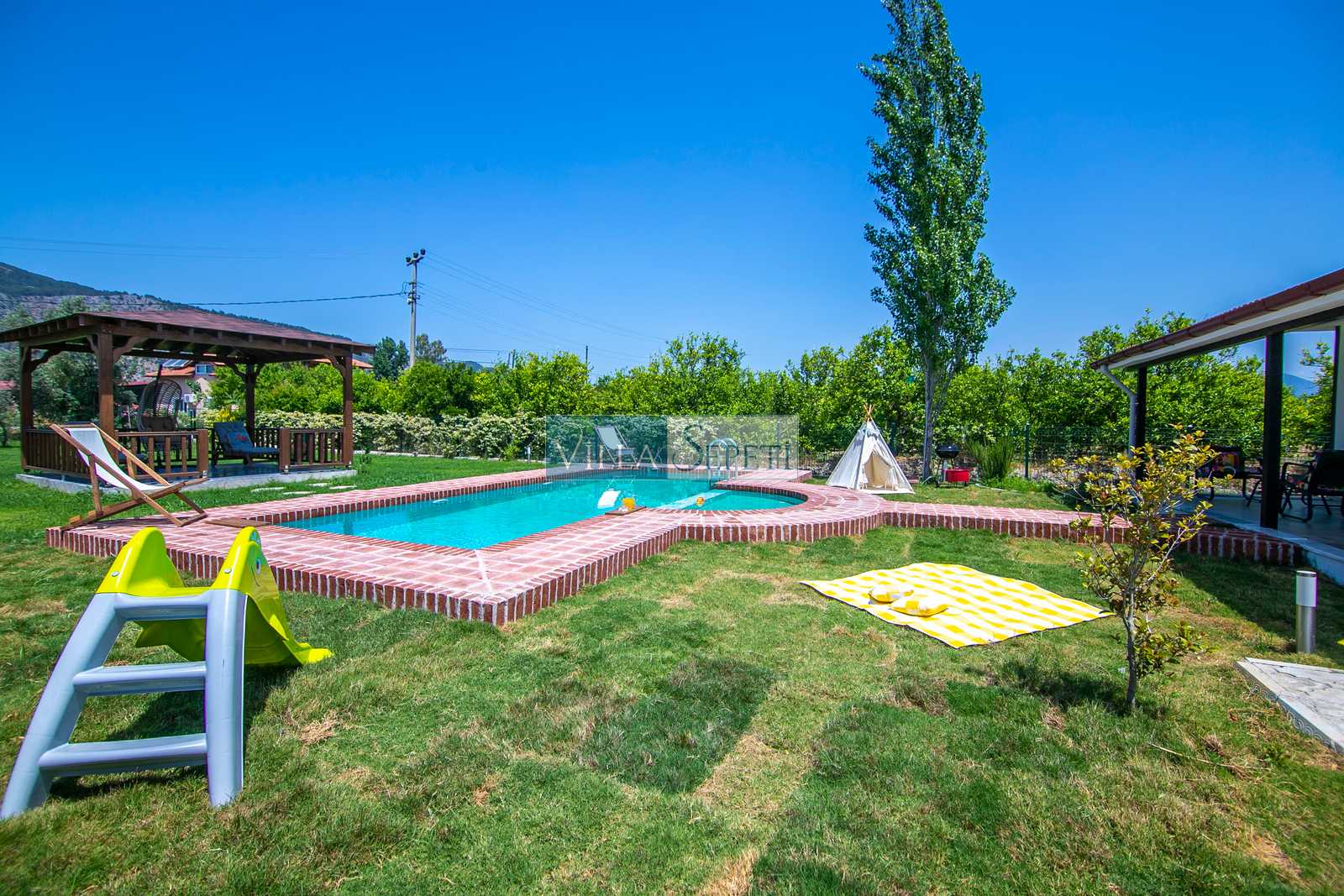 Villa Elrond, Dalyan Yeşilyurt bölgesinde bulunan geniş ve yemyeşil bir bahçe alanına sahip özel havuza ve çocuk havuzuna sahip villamızdır.