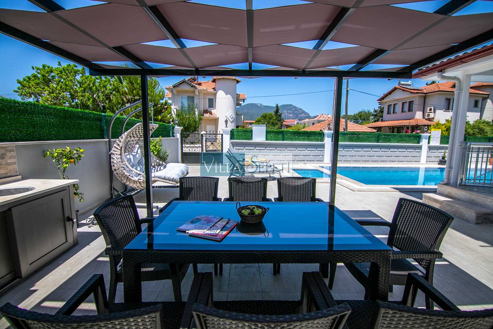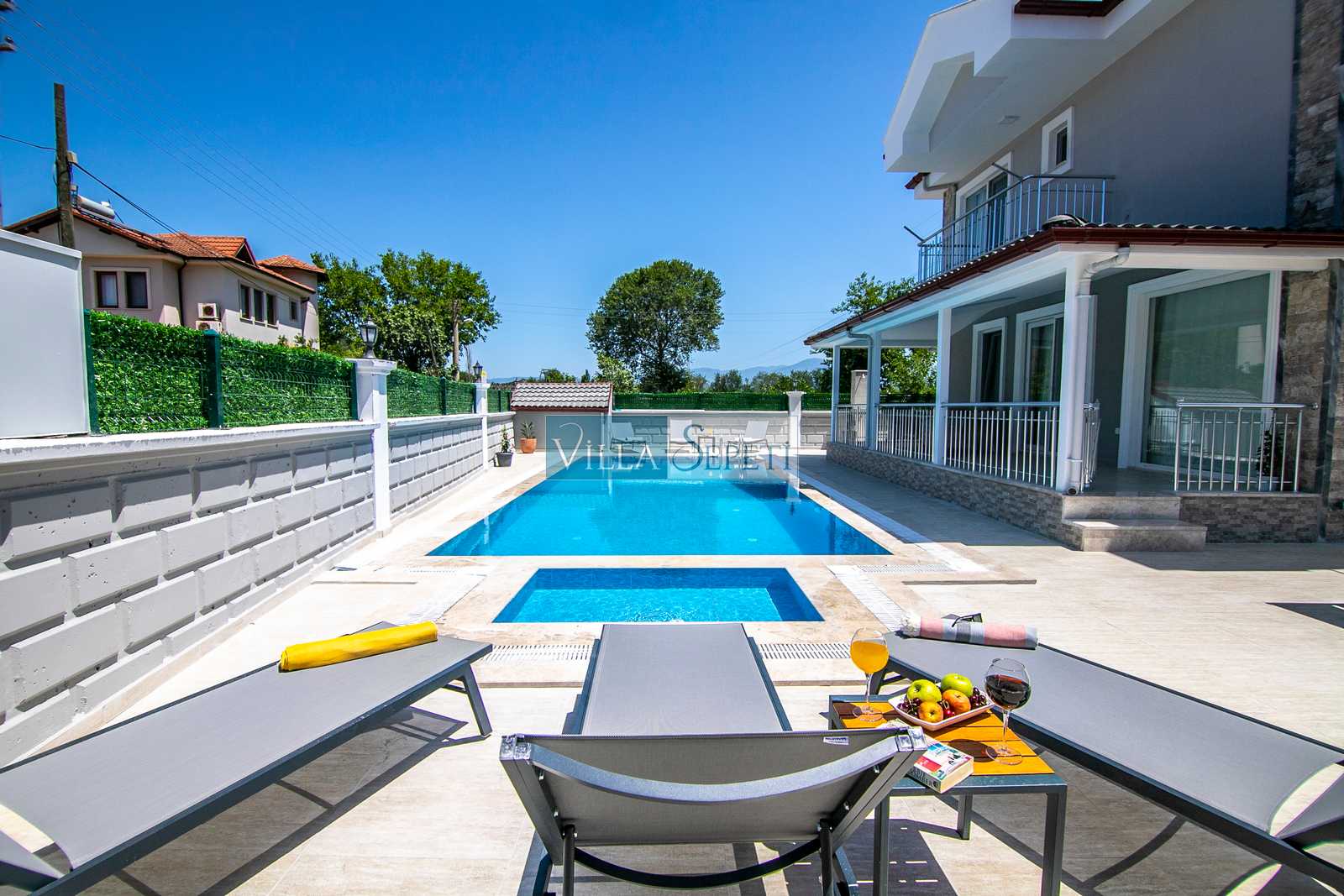 Bahçesindeki çardak alanında ve terasında oturma grupları bulunan, merkeze sadece 700 metre mesafede bulunan villamızın iç ve dış tasarımı oldukça konforlu ve zevkinize uygun olacak şekilde döşenmiştir. Villamızın ayrıca iç kullanım alanı oldukça geniş ve ferahtır.