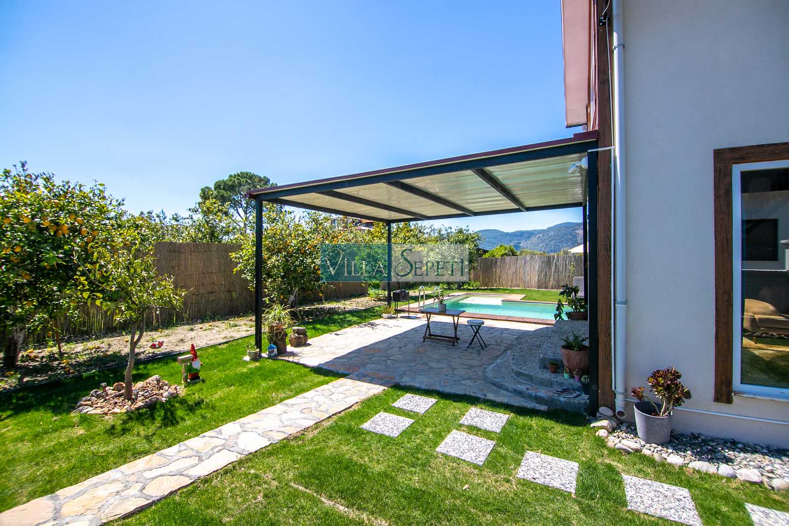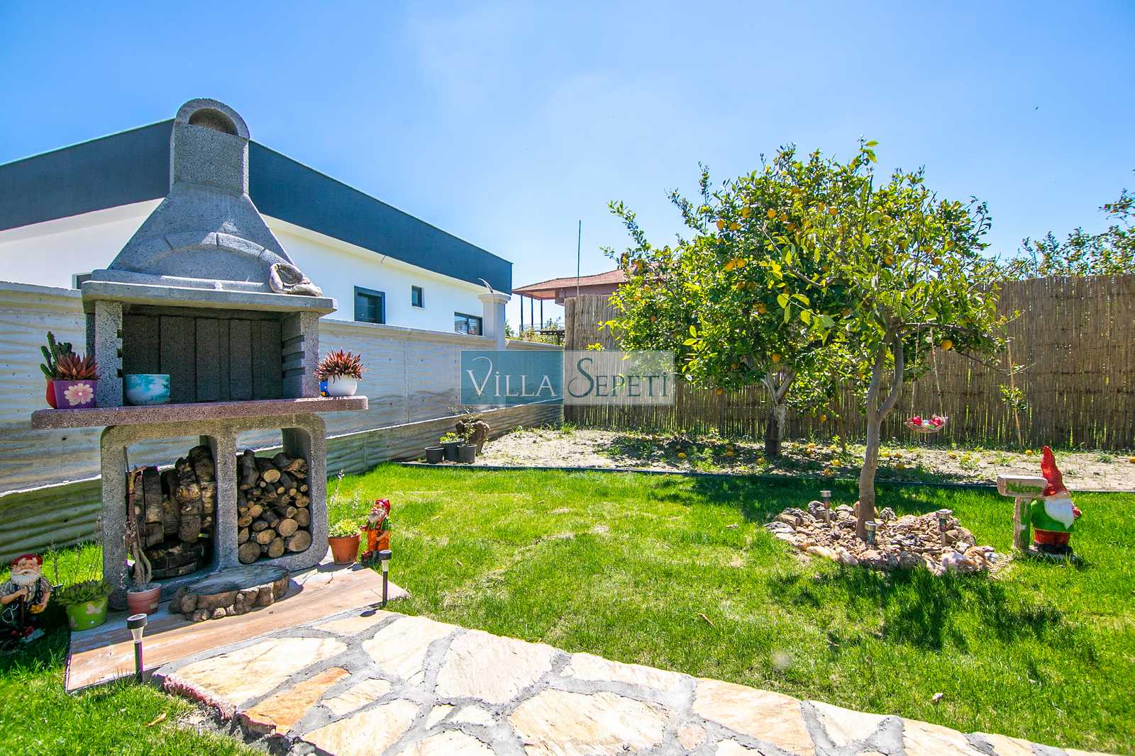 Geniş ve yemyeşil bahçe alanına sahip villamızda istendiği takdirde güvenlik kameraları da mevcuttur.