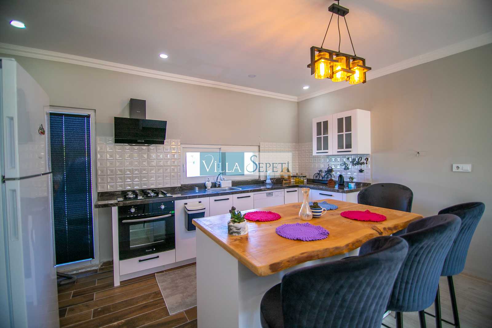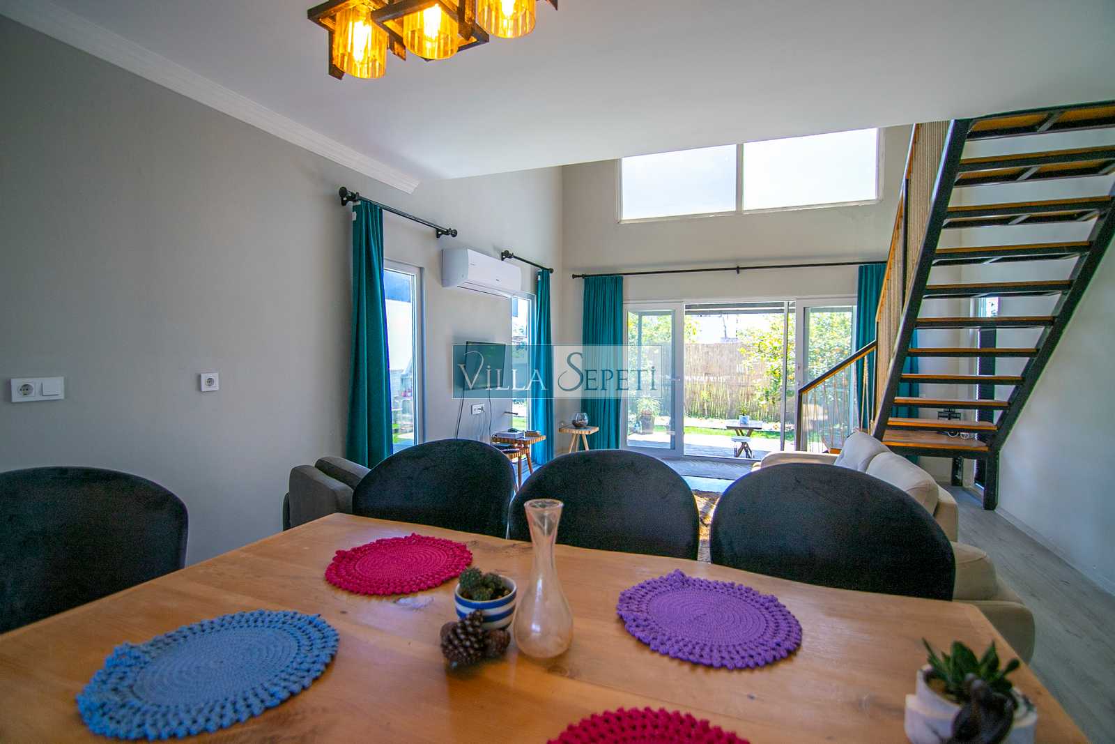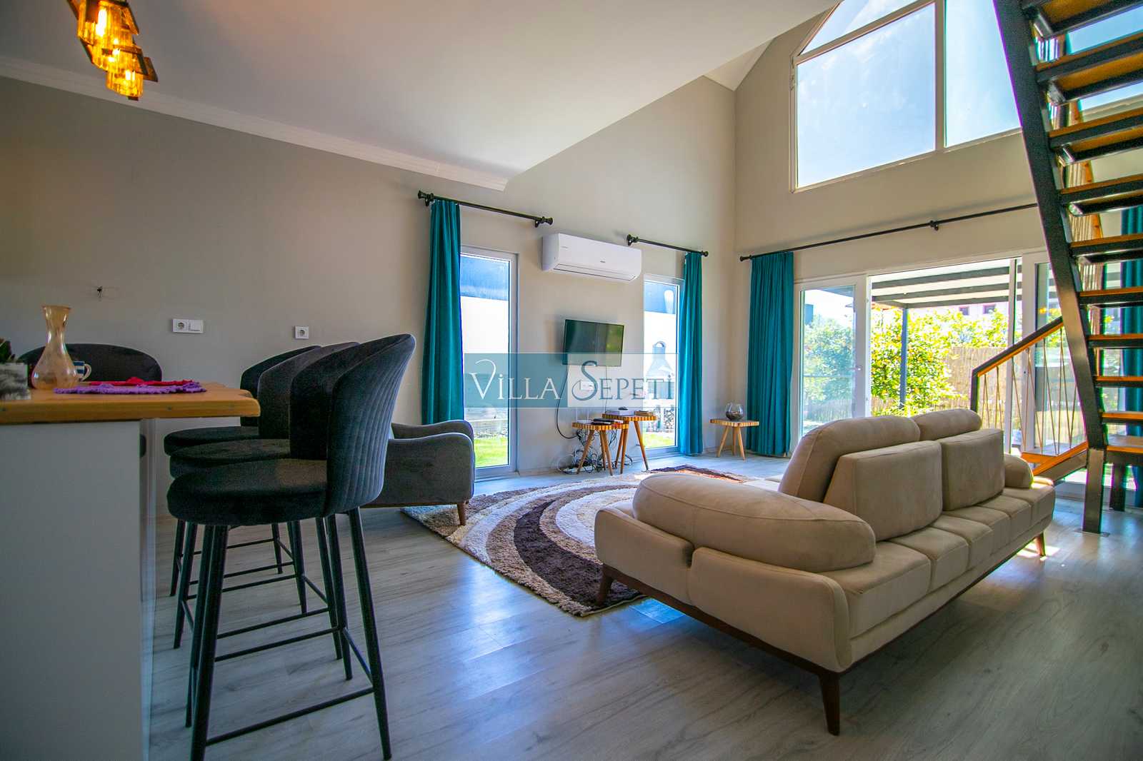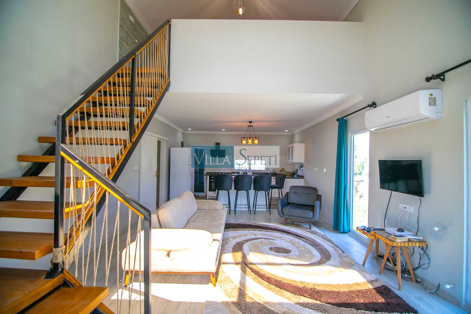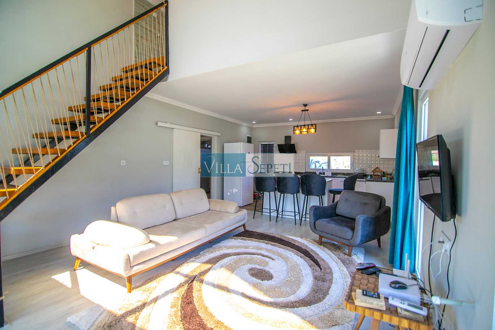 Doğa içerisinde sessiz ve sakin bir konumda bulunan villamızın içi oldukça şık ve konforunuza uygun olarak döşenmiş olup tüm mobilya ve beyaz eşyalar özenle seçilmiştir.
