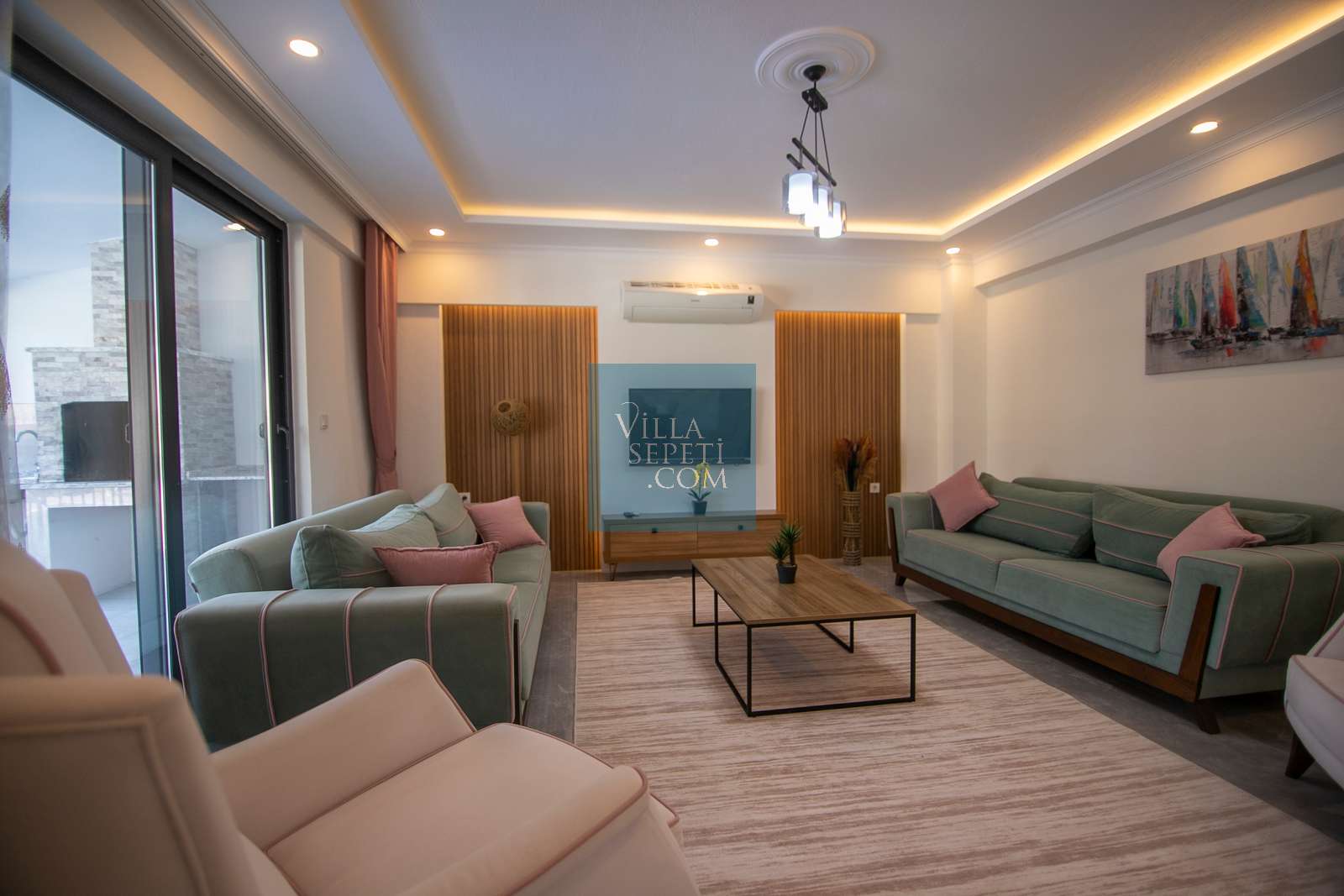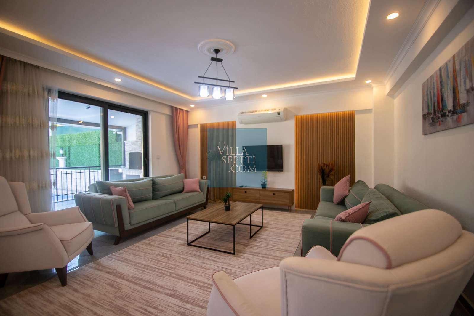 Geniş bahçe alanına sahip villamızın iç ve dış tasarımı oldukça modern olarak tasarlanmış olup misafirlerimizin konforu düşünülerek dizayn edilmiştir.