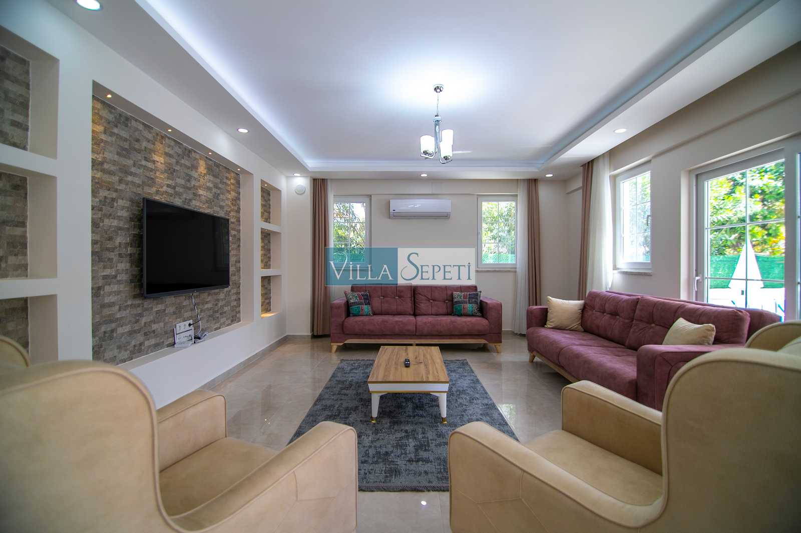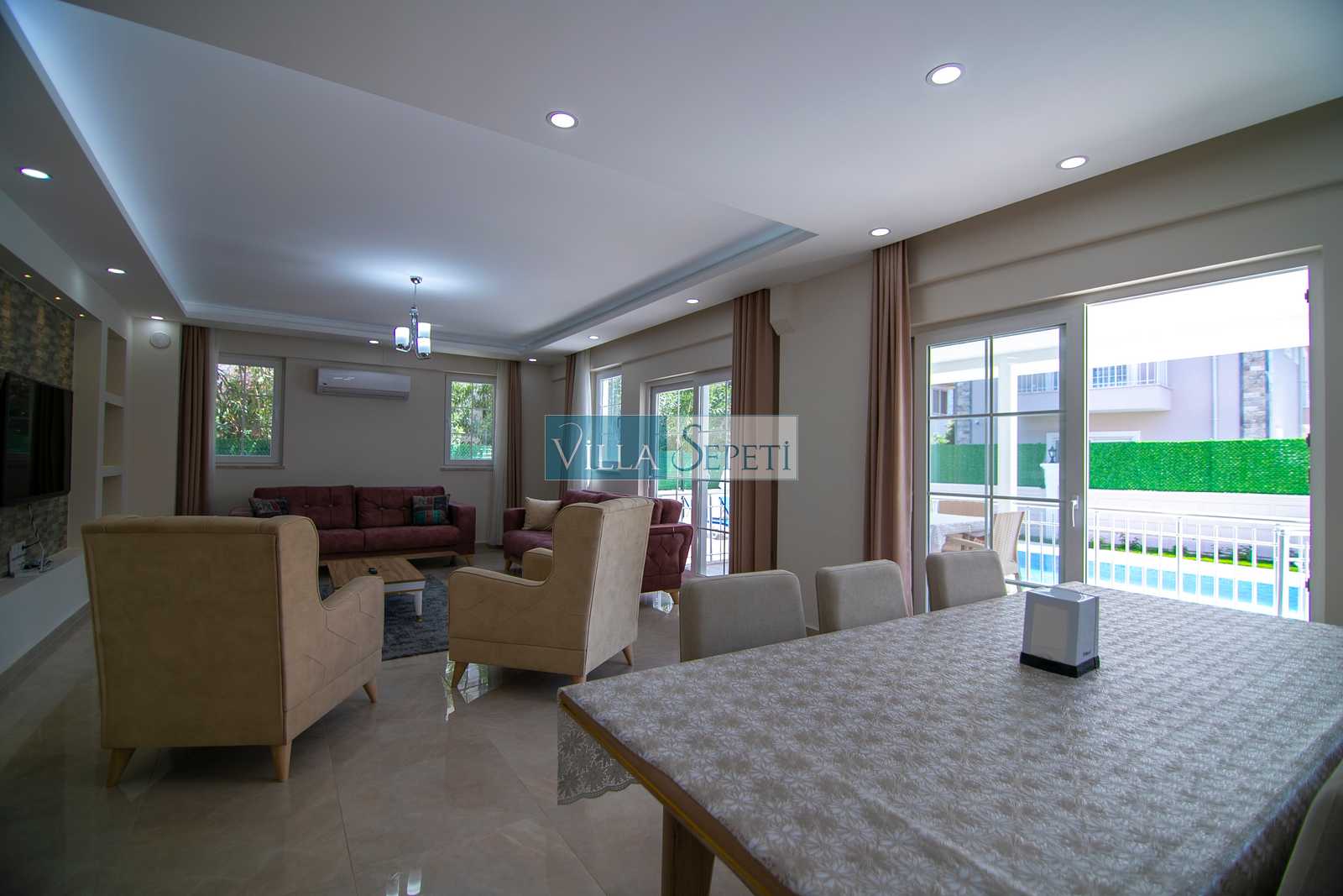 Yeşil bahçesinde keyifli bir mangal alanı bulunan ve merkeze sadece 200 metre mesafede bulunan villamızın iç ve dış tasarımı oldukça konforlu ve zevkinize uygun olacak şekilde döşenmiştir.