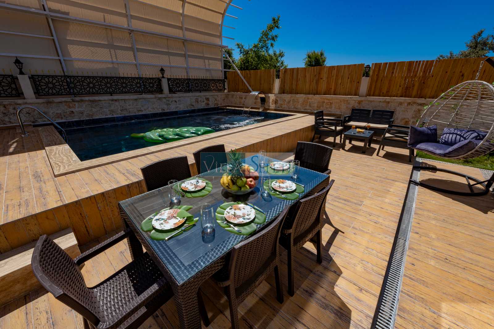 Villa Doğanay, Demre Büyükkum mevkiinde konumlanan, özel havuzu tam korunaklı villamızdır.