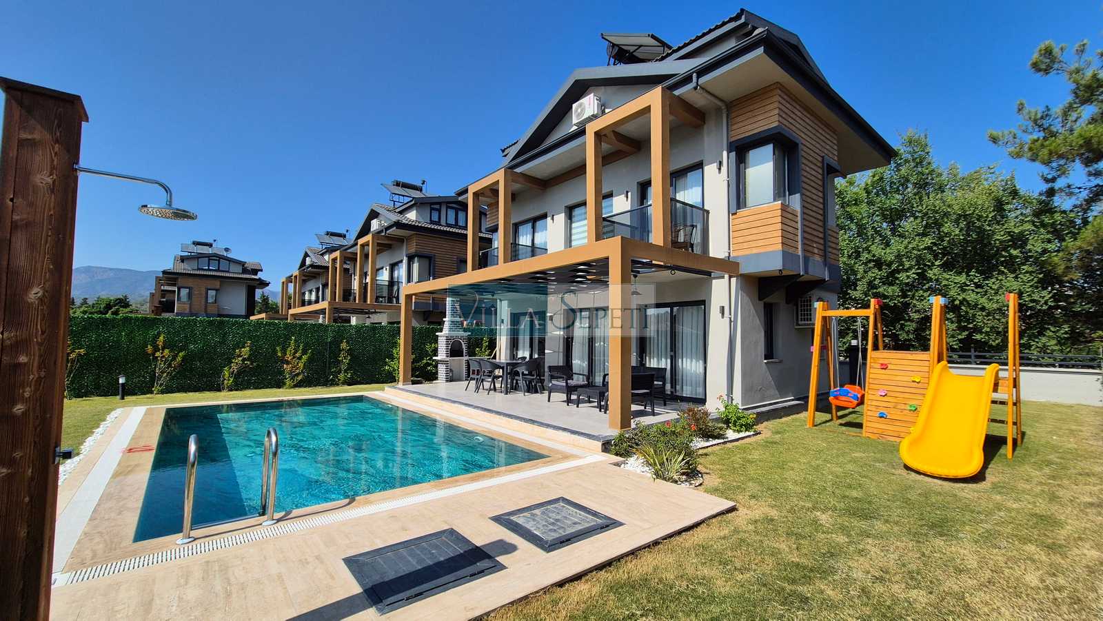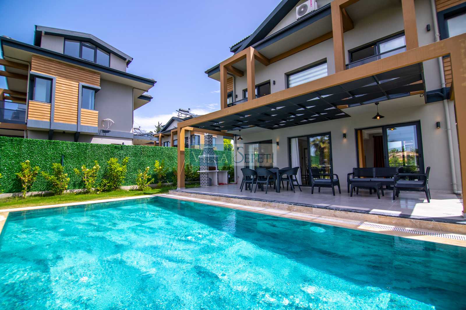 Villa Becet 27, Fethiye Yanıklar mevkiinde konumlanan özel havuzlu villa seçeneğimizdir. Yan yana konaklama fırsatı ile kalabalık ailelerimiz için ideal seçenek oluşturan villamızın içerisinde tüm detaylar en ince ayrıntısına kadar düşünülmüştür.