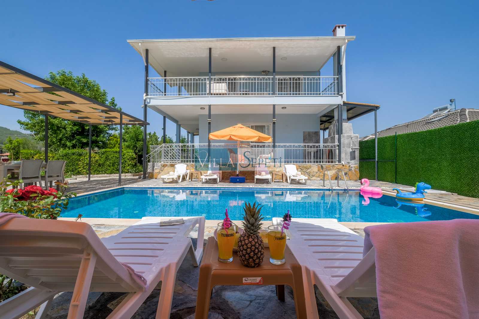 ÖNEMLİ NOT: Villamızın bulunduğu bölge Fethiye-Seydikemer'in kırsal mahalle bölgelerindendir. Sessiz ve sakin konumda yer almaktadır. Villanın yakın çevresinde tarımsal aktivite yapılan seralar mevcut olabilmektedir.