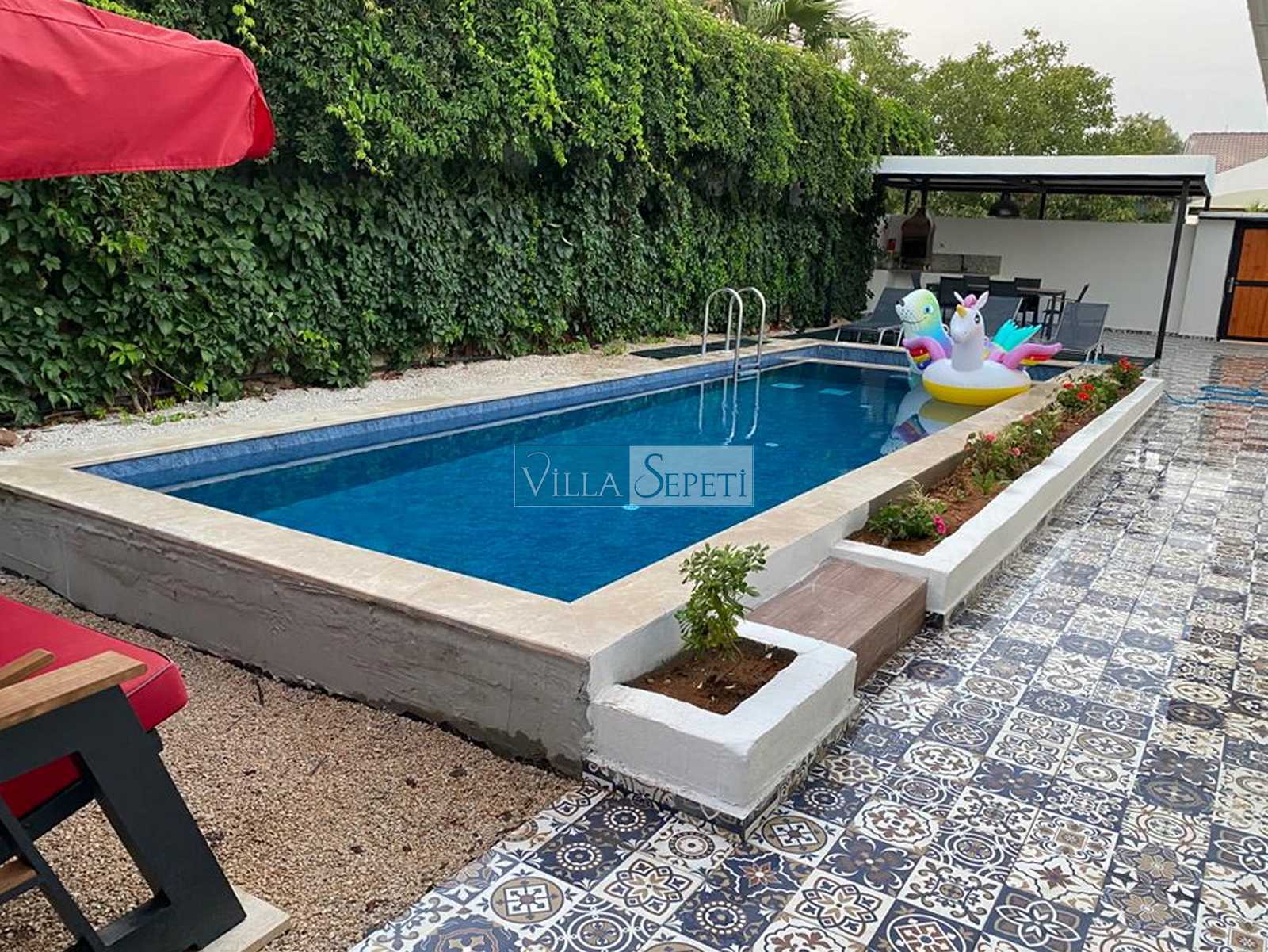 Not 2: Villamızda yer alan dış havuz ısıtma özelliğine sahiptir. Havuz ısıtma talep edildiği taktirde ısıtma ücreti günlük 1.000,-TL (Döneme göre değişiklik gösterebilir) ekstra alınmaktadır. Havuz Isıtma bedeli konaklanacak gün boyunca hesaplanmaktadır. Havuz ısıtması isteyen misafirlerimizin villaya girişlerinden 3 gün önce iletişim kişisi ile irtibata geçmeleri gerekmektedir. Isıtma özelliğine sahip havuzumuzun ulaşabileceği maksimum sıcaklık 25 - 28°C'dir.