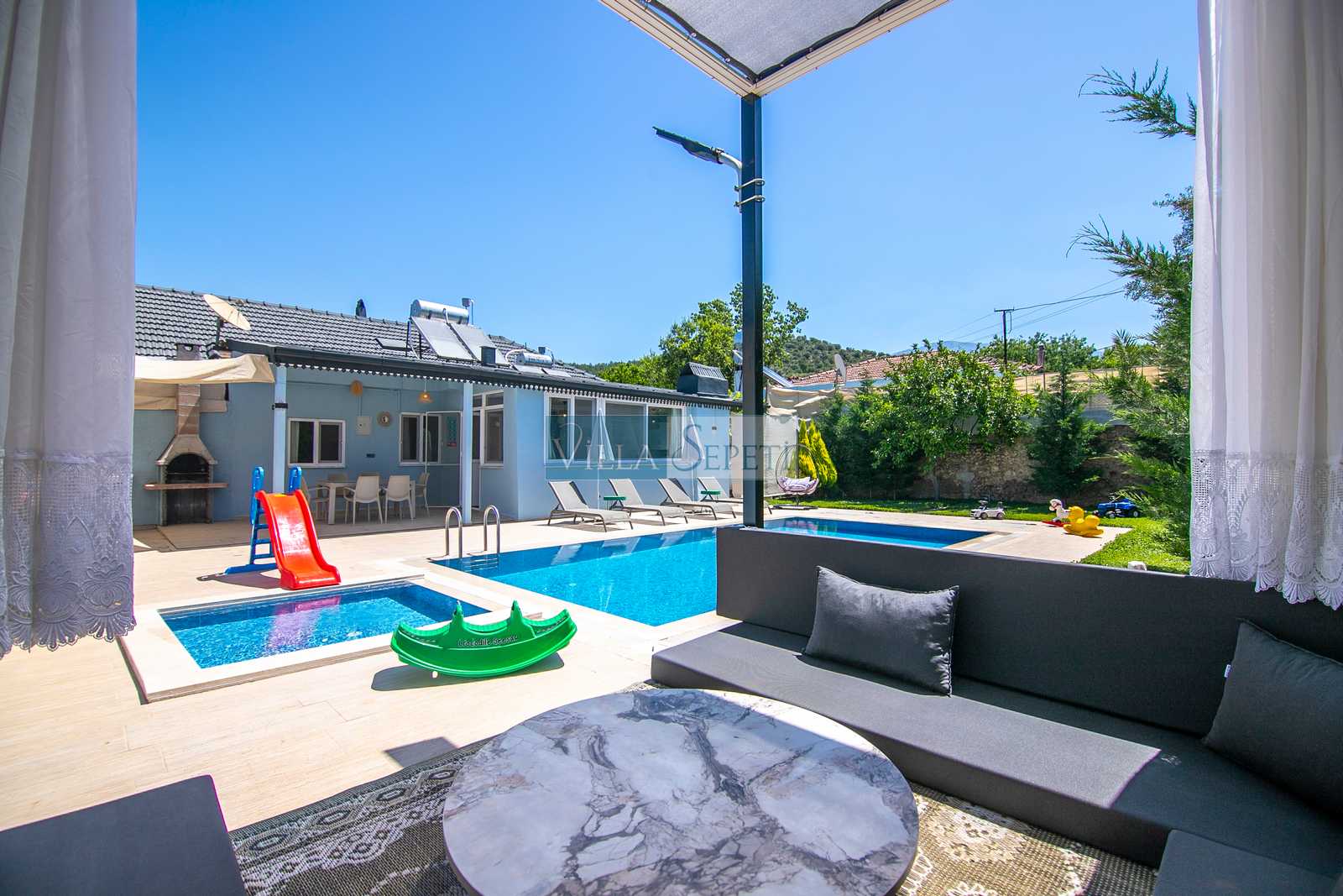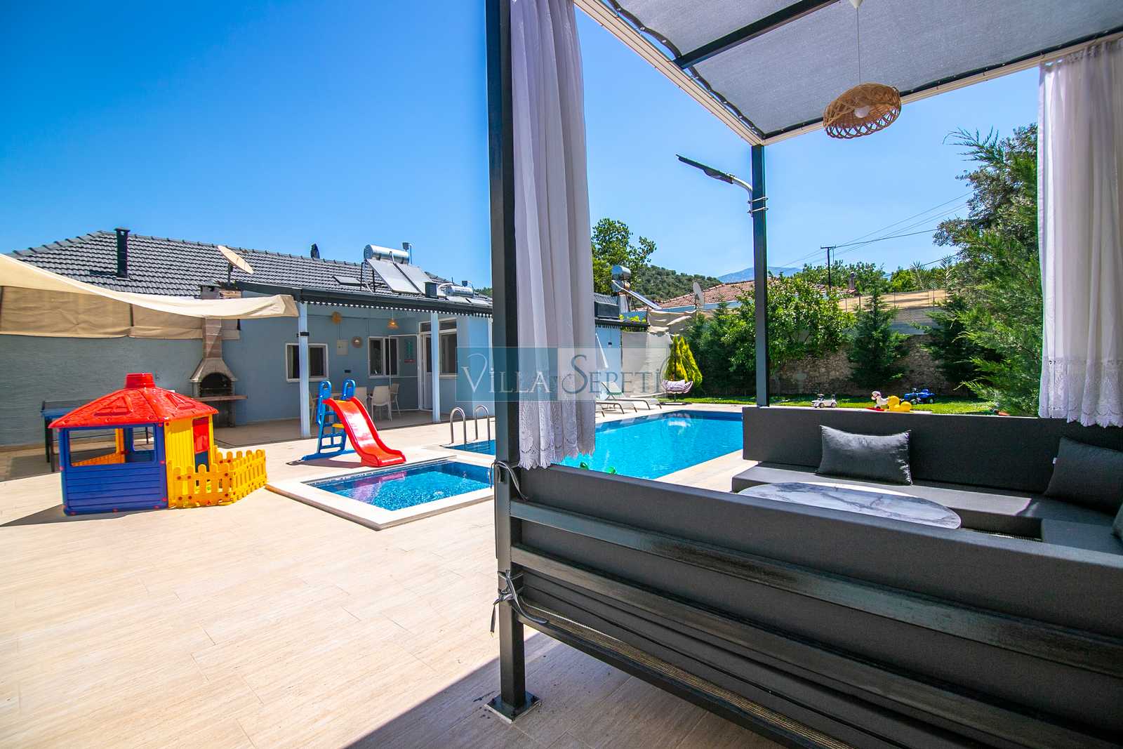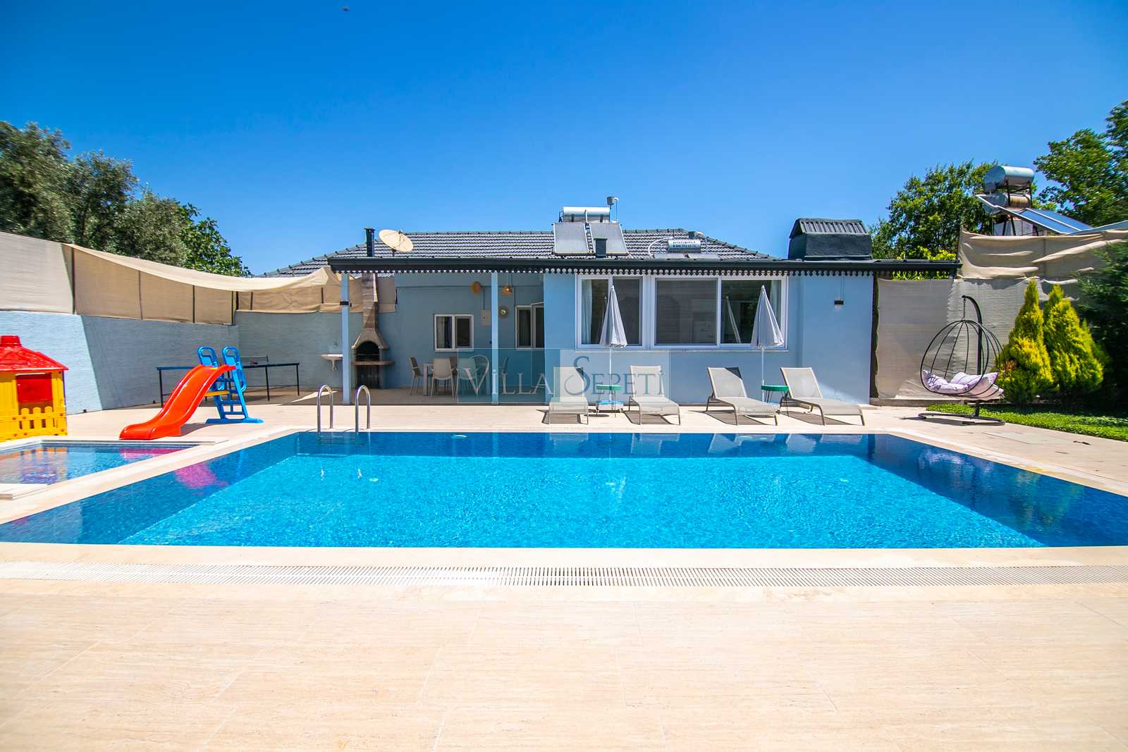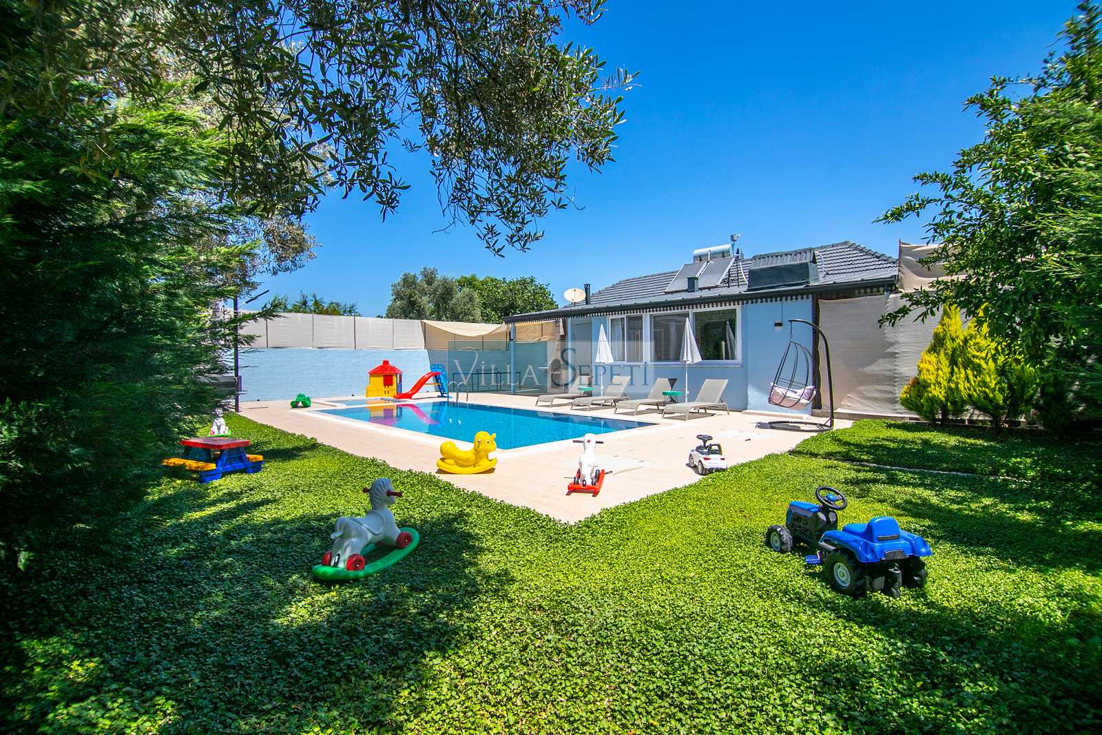 Bu evimizin yan tarafında Villa Nuröz Lavanta yer almaktadır. Takvimlerinde müsaitlik olduğu takdirde villaları aynı anda kiralama imkanınız bulunmaktadır.