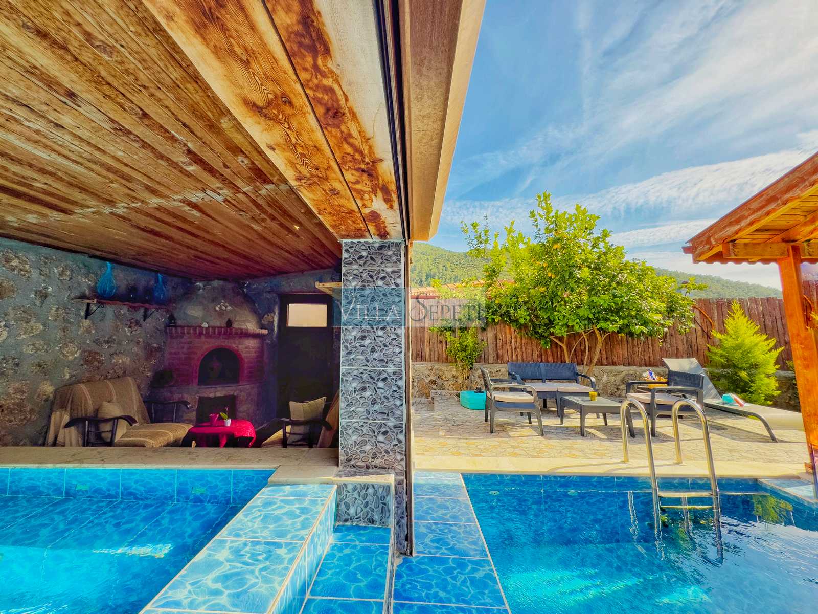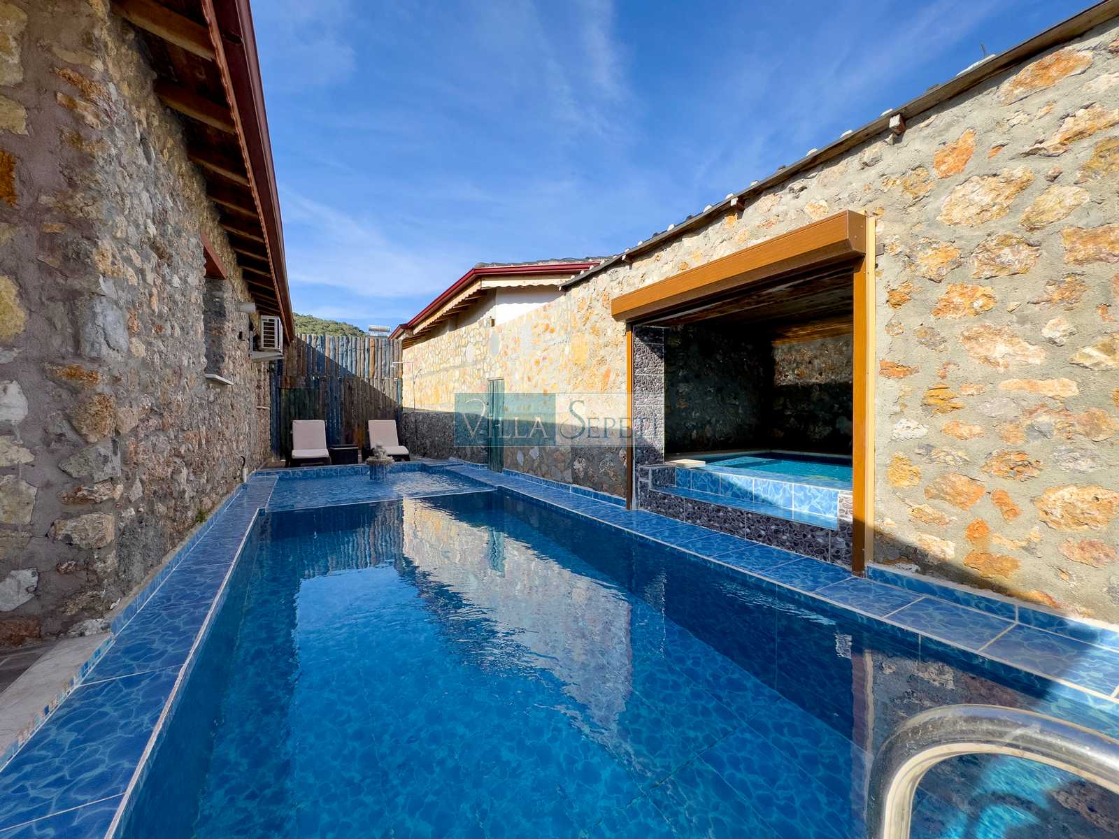 Villa Kınalı, Fethiye Kayaköy de yer almaktadır. Doğal ve tarihi güzellikleri bir arada bulunduran Kayaköy'de muhteşem bir tatil fırsatı sunan, özenle döşenmiş iç tasarıma sahip olan Villa Kınalı korunaklı havuzu ve kapalı jakuzi odası ile muhafazakar ve balayı tatilcilerine özel bir seçenektir.