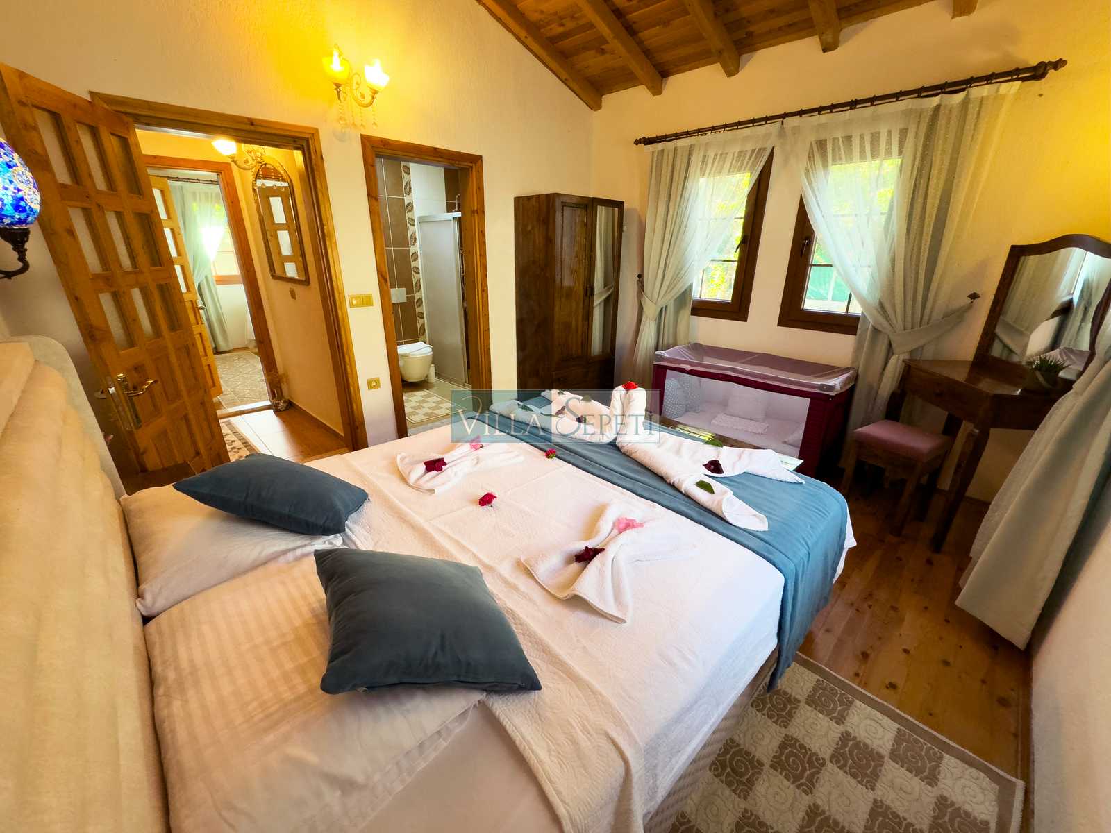 Genel not : Doğa içerisinde konuma sahip olan villalarımızın tamamı böcek ve haşereler için düzenli olarak temizlenmekte ve ilaçlanmaktadır. Doğa içerisinde konuma sahip olan evlerimizde, merkezde yer alan villalara nazaran böcek vb. çıkma ihtimali daha yüksektir. Bu not, bu evle ilgili değil doğa içerisinde konuma sahip olan tüm evlerin bilgilerinde yazılmaktadır.
