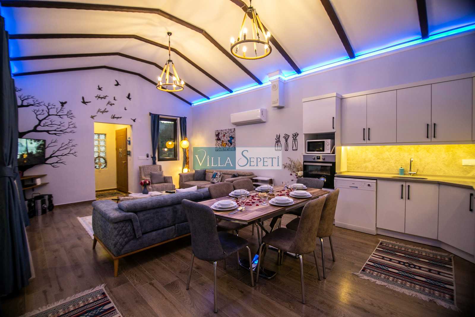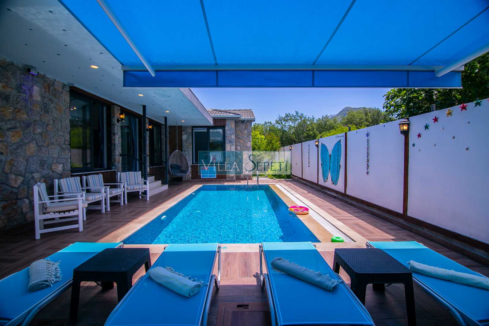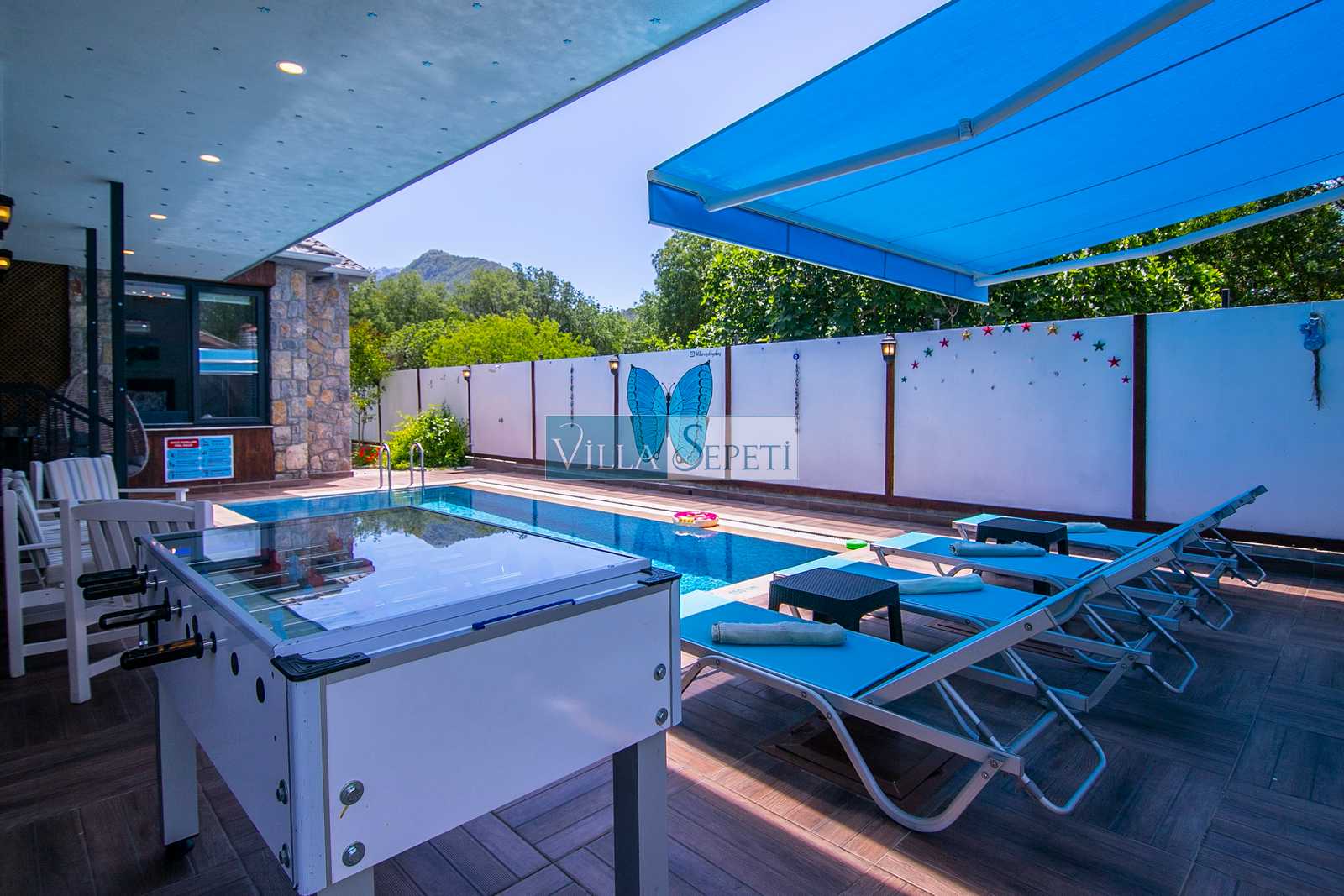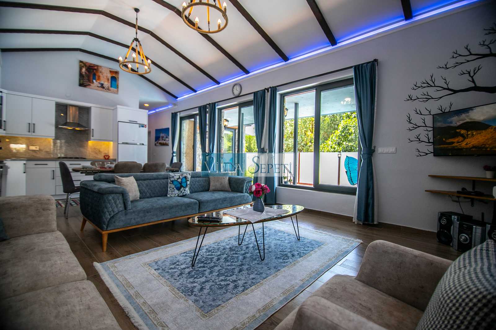 Villa Mega, Fethiye Kayaköy'de doğa içerisinde konuma sahip 2019 yılında düzenlenip portföyümüze eklenmiş şirin mi şirin çok güzel bir evdir. Yemyeşil çim bahçeye sahip olan evin etrafı da yeşilliklerle çevrilidir. Muhafazakar aileler ve balayı çiftleri için çok ideal bir seçenektir.
