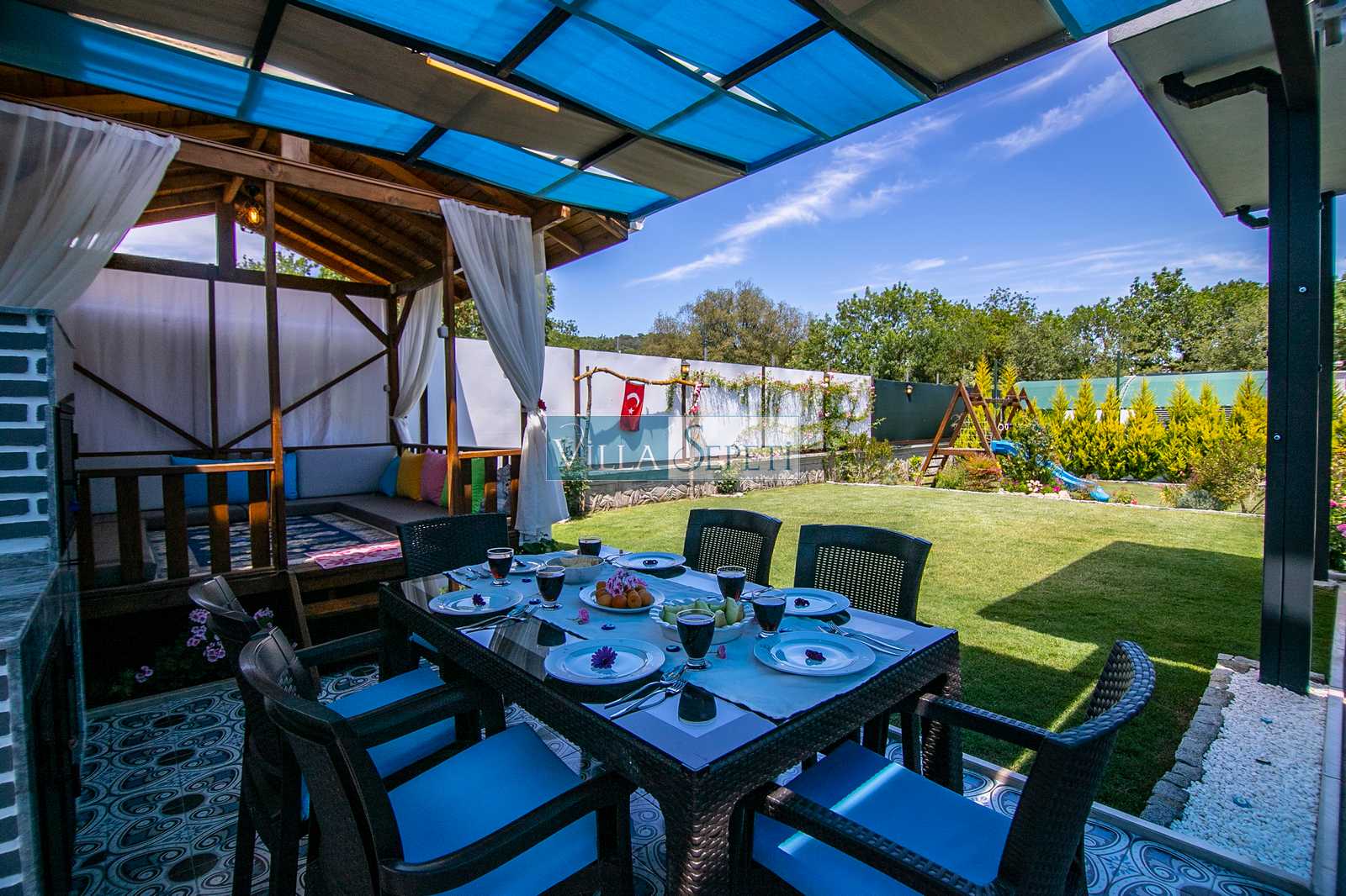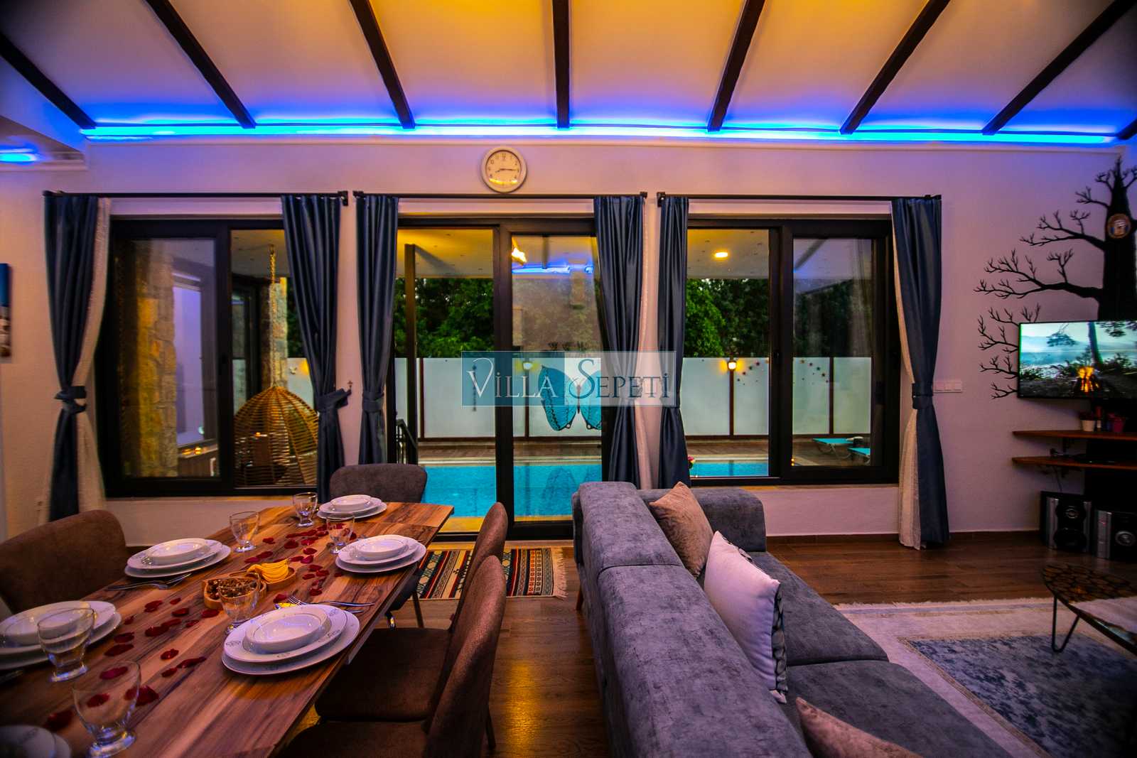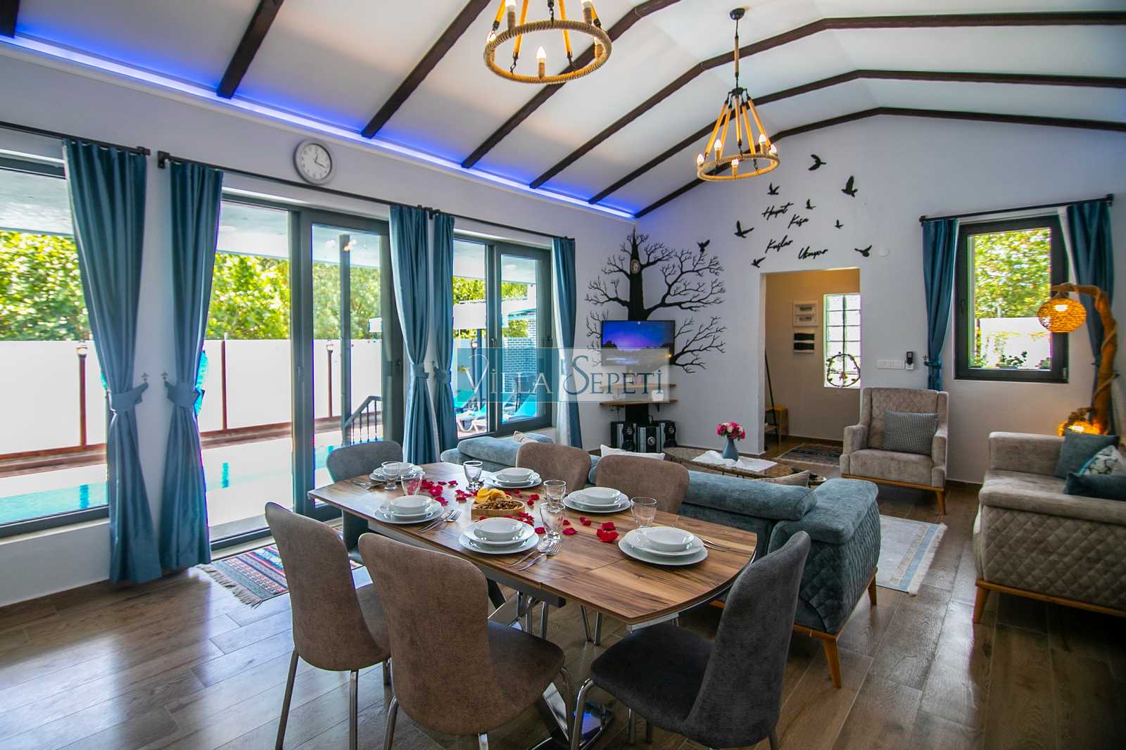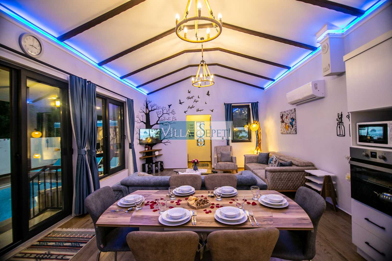 Villa Mega, Fethiye Kayaköy'de doğa içerisinde konuma sahip 2019 yılında düzenlenip portföyümüze eklenmiş şirin mi şirin çok güzel bir evdir. Yemyeşil çim bahçeye sahip olan evin etrafı da yeşilliklerle çevrilidir. Muhafazakar aileler ve balayı çiftleri için çok ideal bir seçenektir.