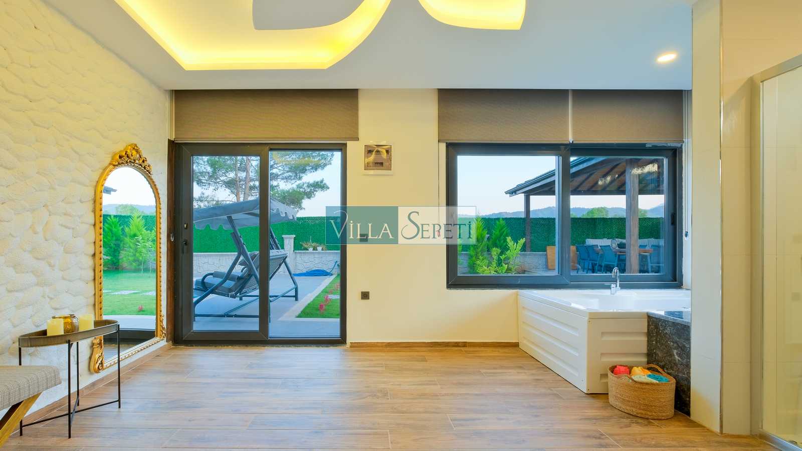 Genel not : Doğa içerisinde konuma sahip olan villalarımızın tamamı böcek ve haşereler için düzenli olarak temizlenmekte ve ilaçlanmaktadır. Doğa içerisinde konuma sahip olan evlerimizde, merkezde yer alan villalara nazaran böcek vb. çıkma ihtimali daha yüksektir. Bu not, bu evle ilgili değil doğa içerisinde konuma sahip olan tüm evlerin bilgilerinde yazılmaktadır.