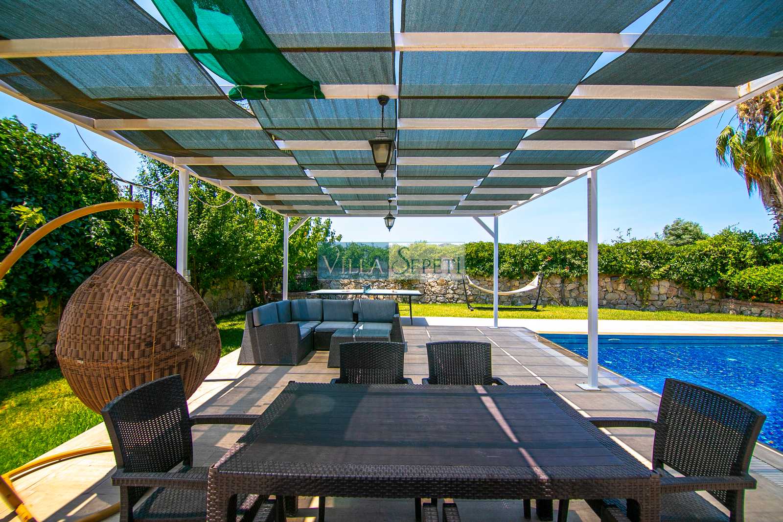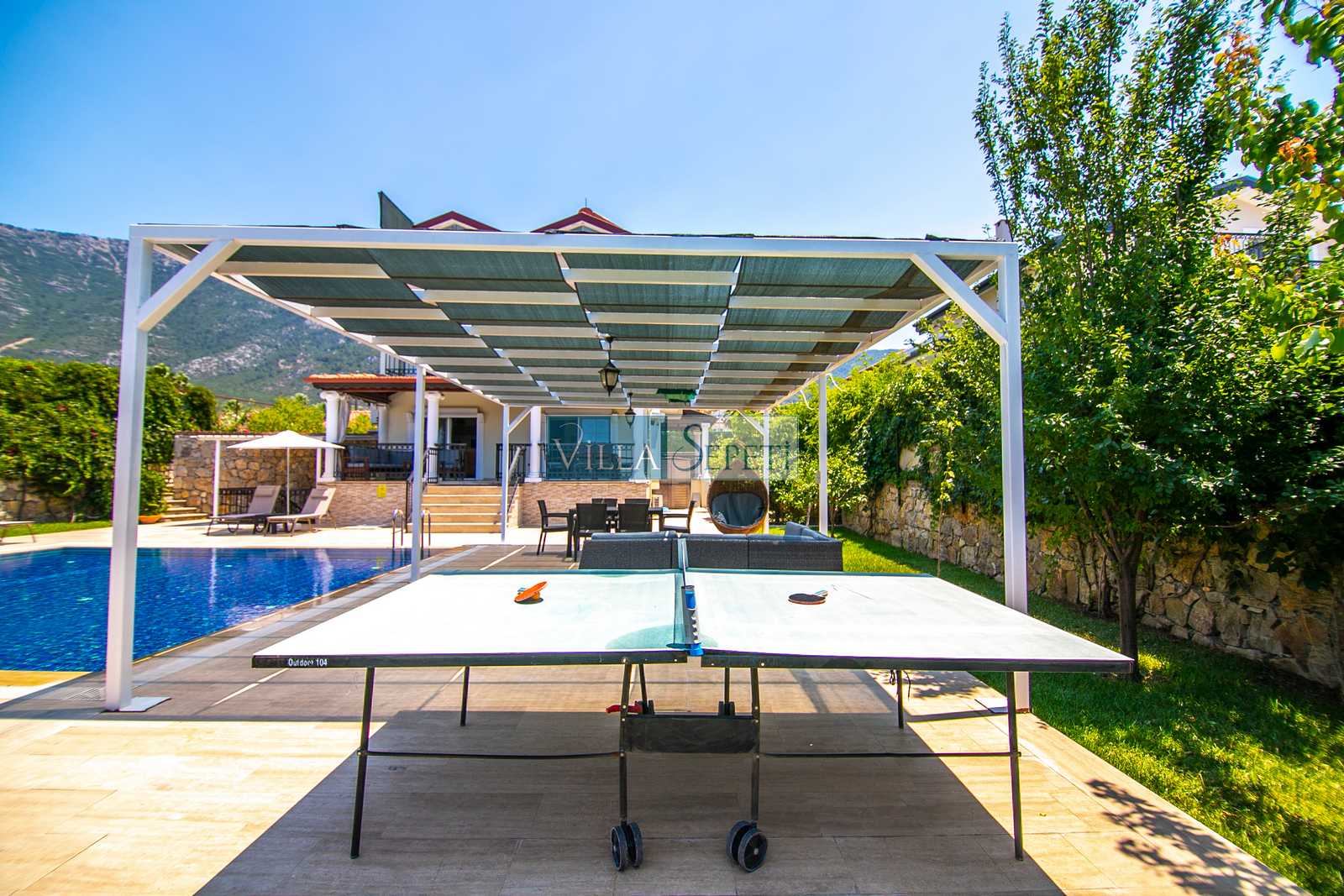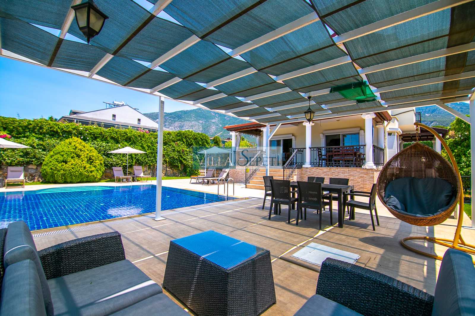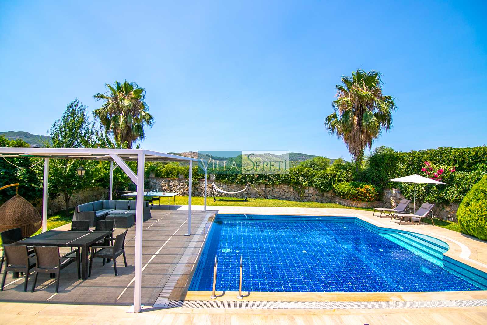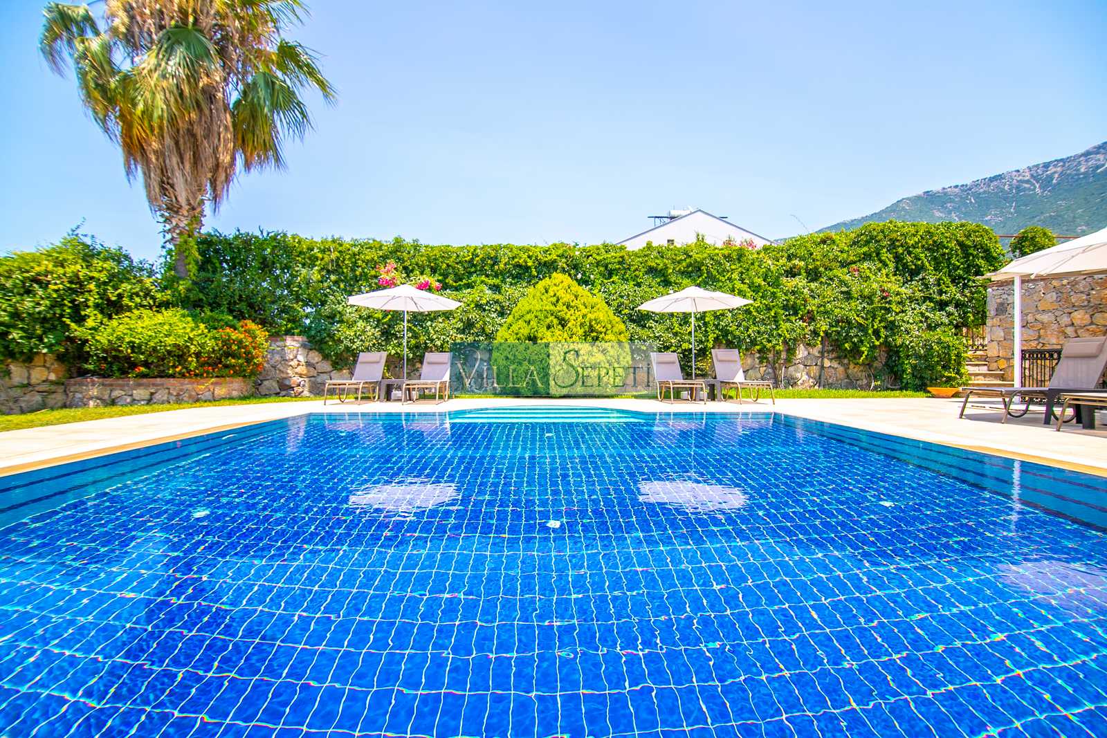 Oldukça korunaklı olan havuzu standart villa havuzlarından daha büyüktür. Havuz korunaklılığı ile ilgili olarak oldukça demememizin sebebi yanındaki villanın çok az kullanılan çatı katındaki küçük pencereden görünme imkanıdır.