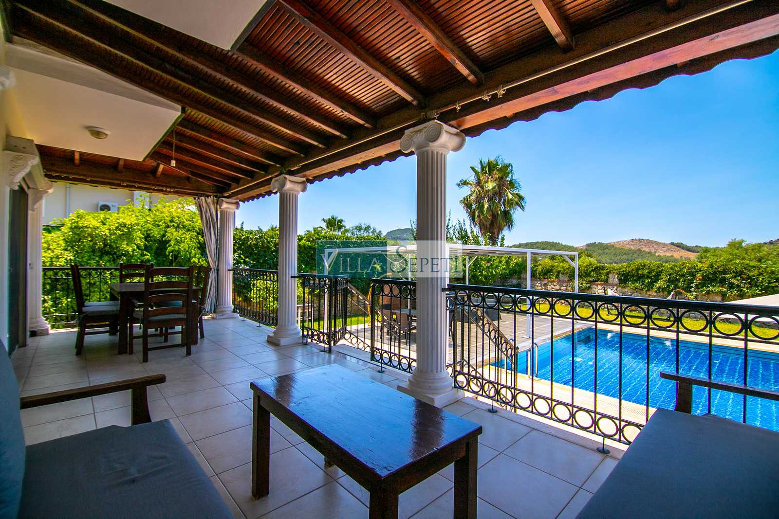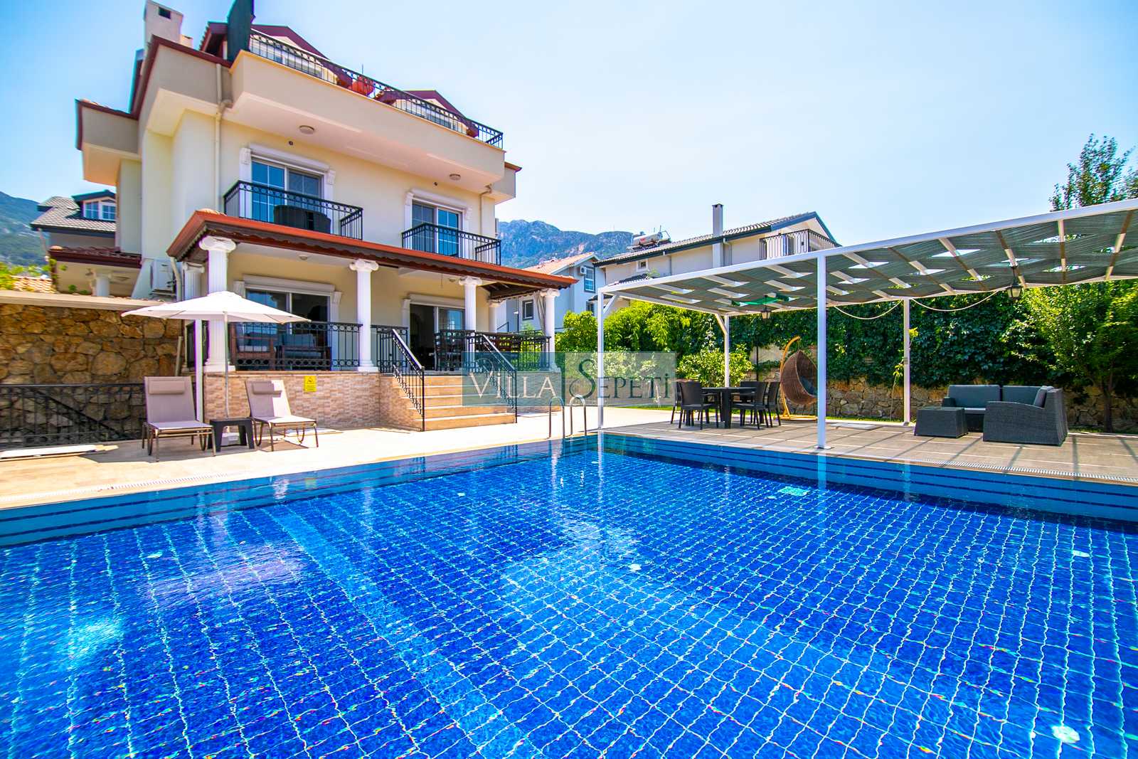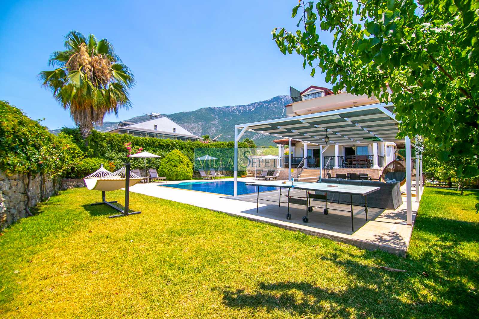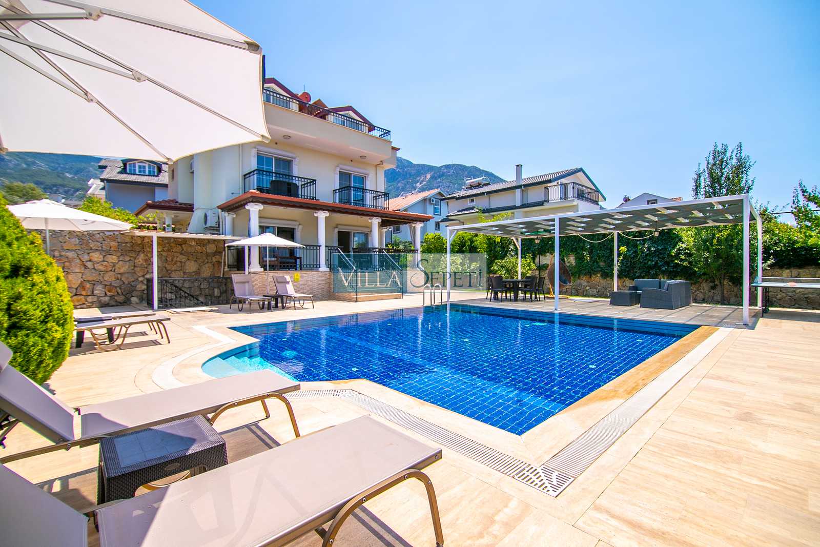 Oldukça korunaklı olan havuzu standart villa havuzlarından daha büyüktür. Havuz korunaklılığı ile ilgili olarak oldukça demememizin sebebi yanındaki villanın çok az kullanılan çatı katındaki küçük pencereden görünme imkanıdır.