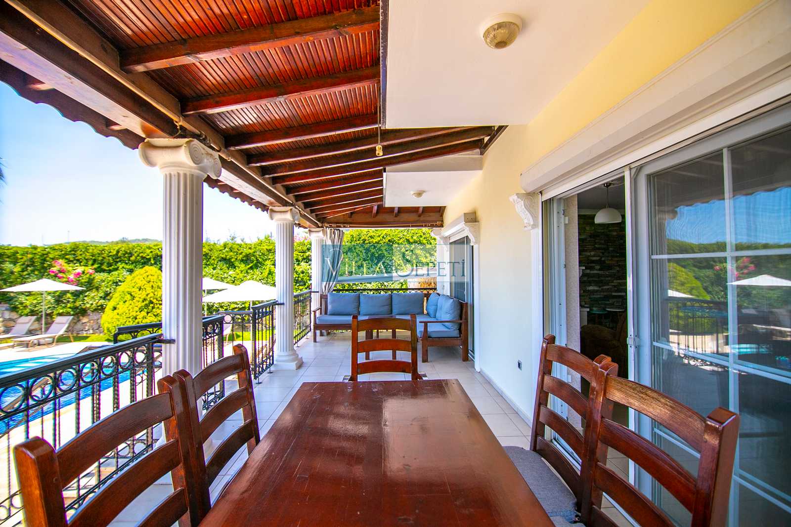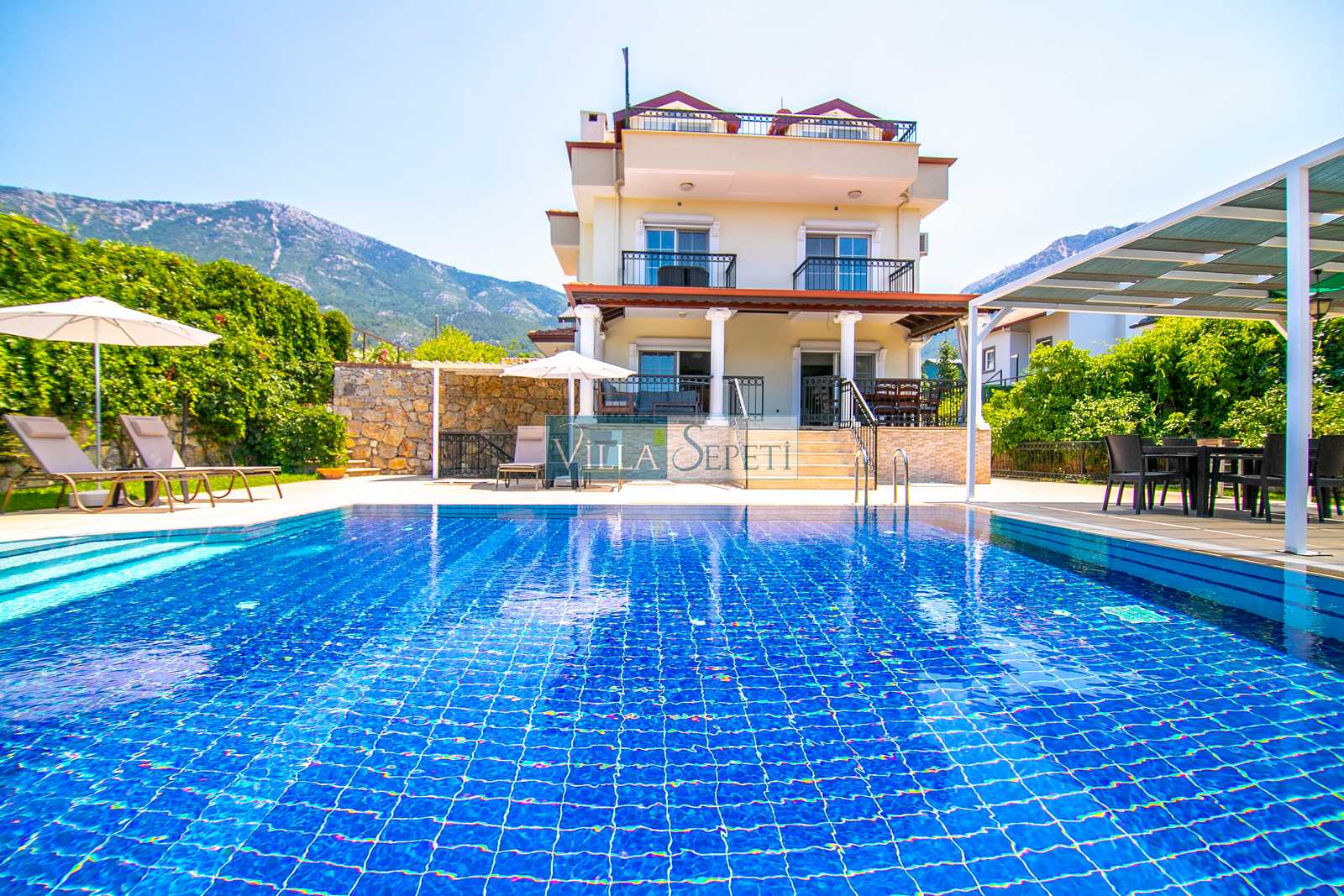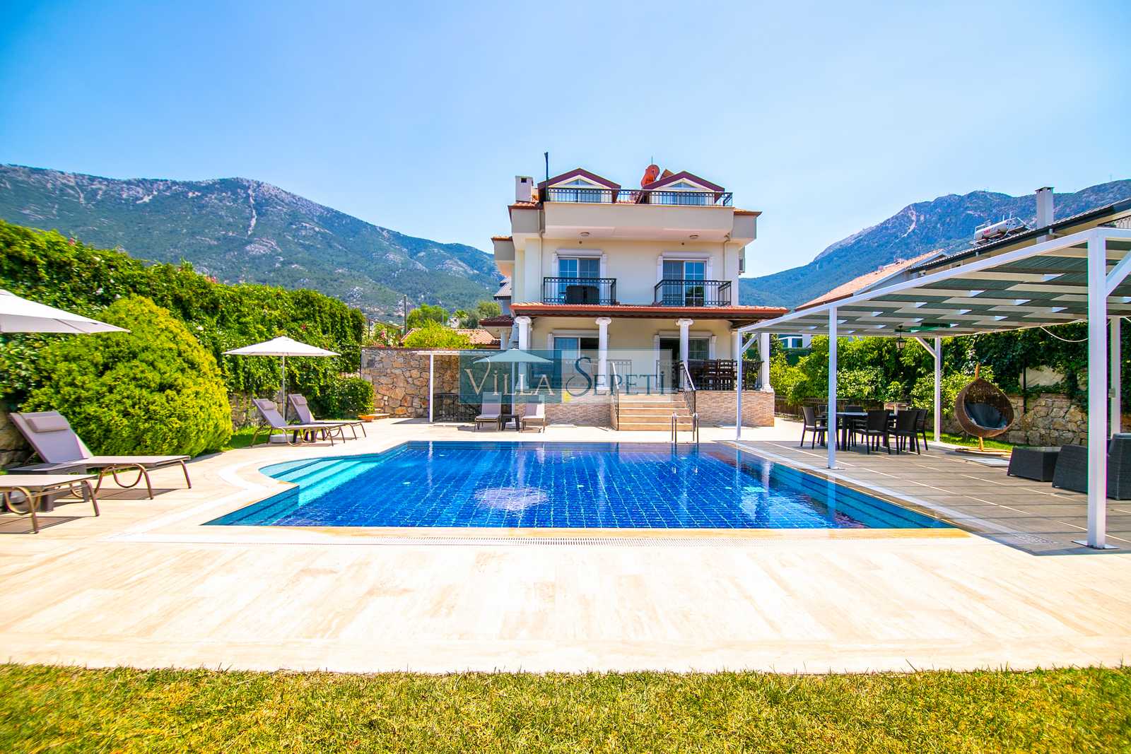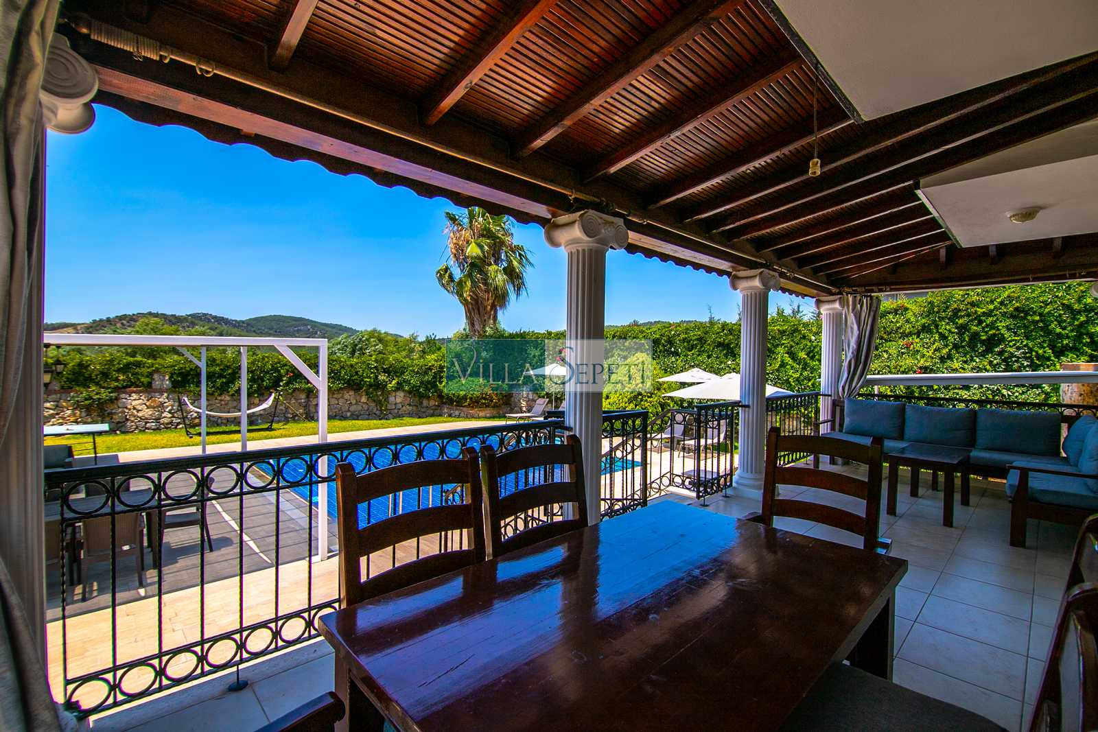 Oldukça korunaklı olan havuzu standart villa havuzlarından daha büyüktür. Havuz korunaklılığı ile ilgili olarak oldukça demememizin sebebi yanındaki villanın çok az kullanılan çatı katındaki küçük pencereden görünme imkanıdır.