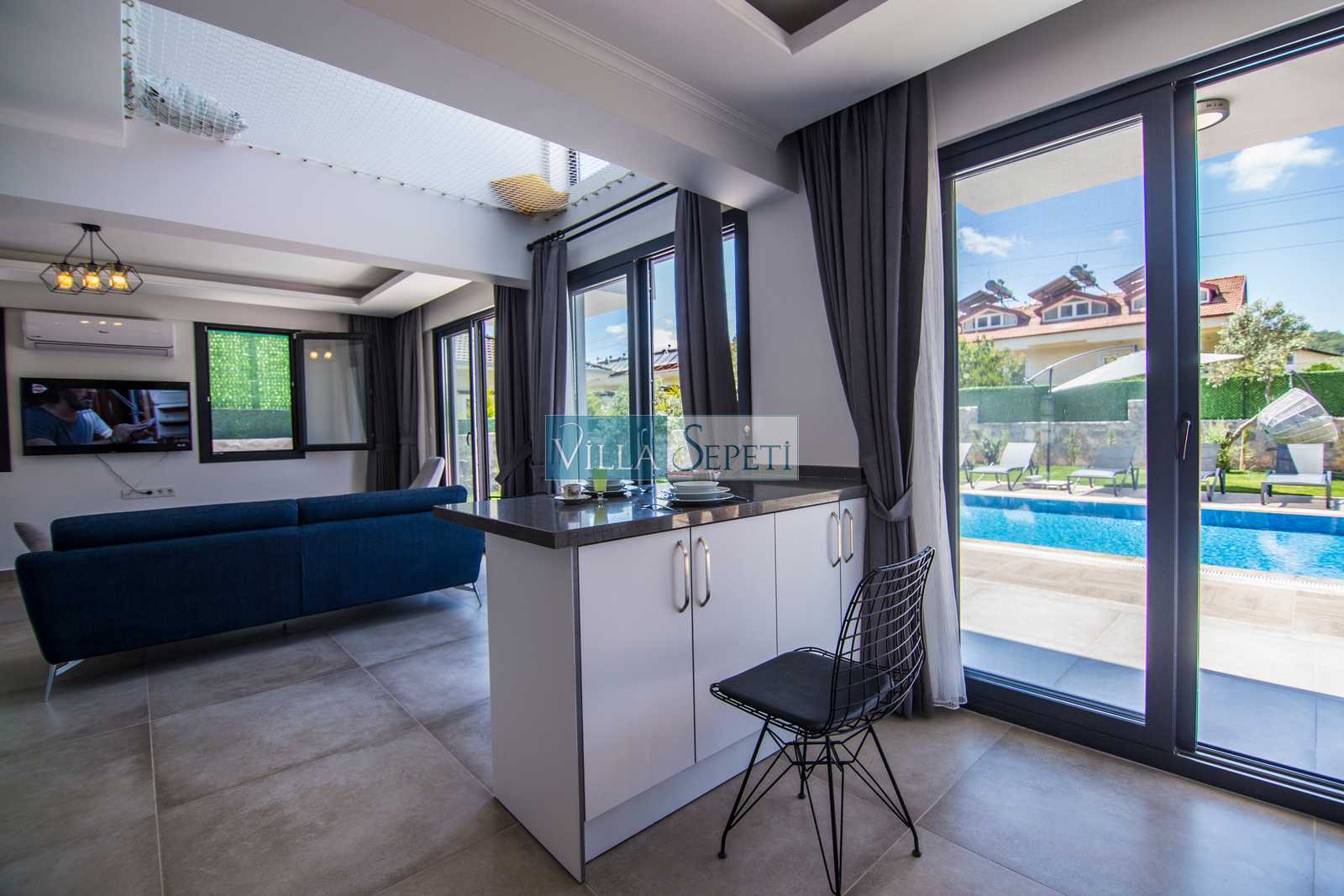 Villa Sedna, Fethiye'nin Ovacık - Hisarönü mevkiinde yer almaktadır. Lüks ve Modern mimarisiyle öne çıkan bu evimizde 3 adet yatak odası bulunmaktadır. Her odasında özel banyosu bulunan Villa Sedna, bu özelliği ile 3 farklı aileye unutulmaz bir tatil imkanı sağlamaktadır.