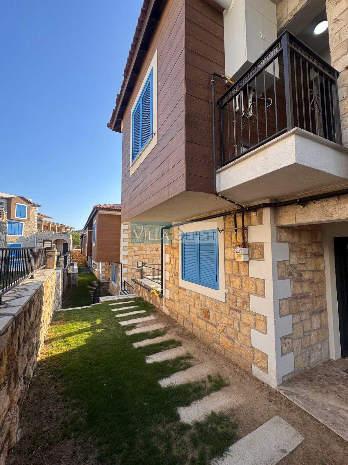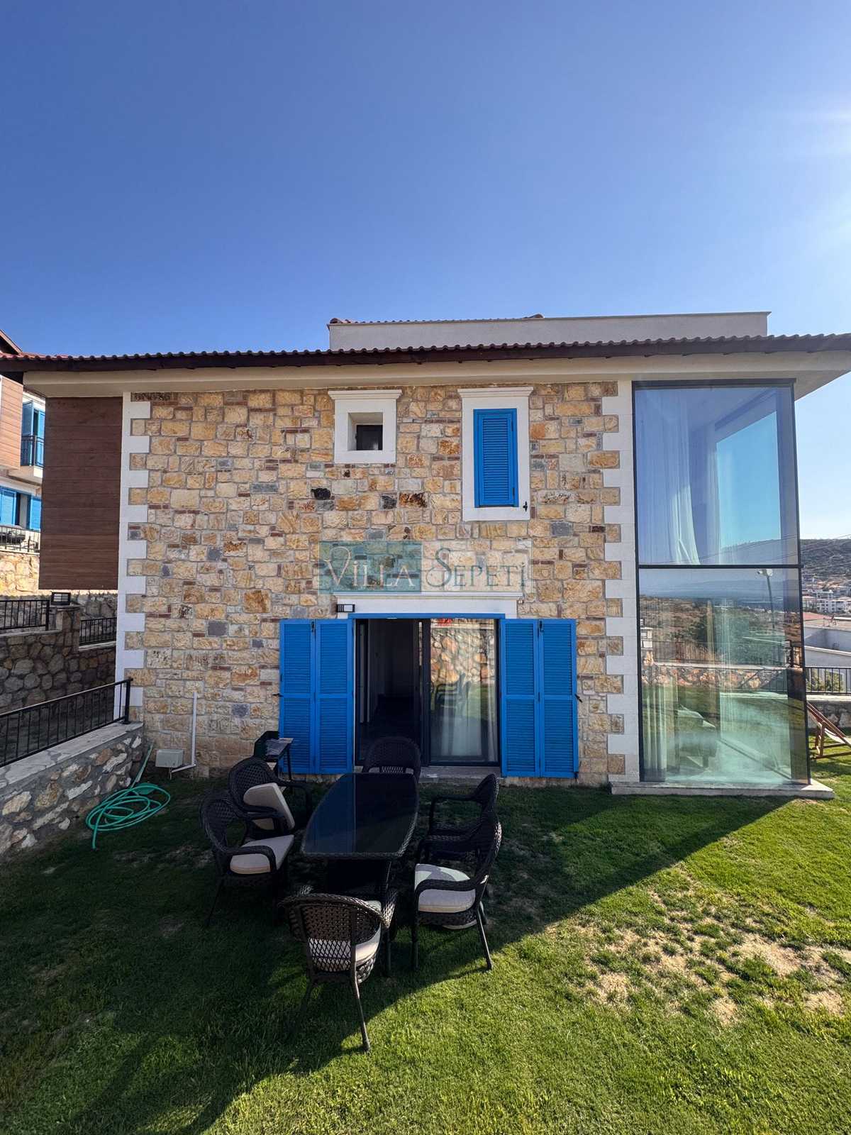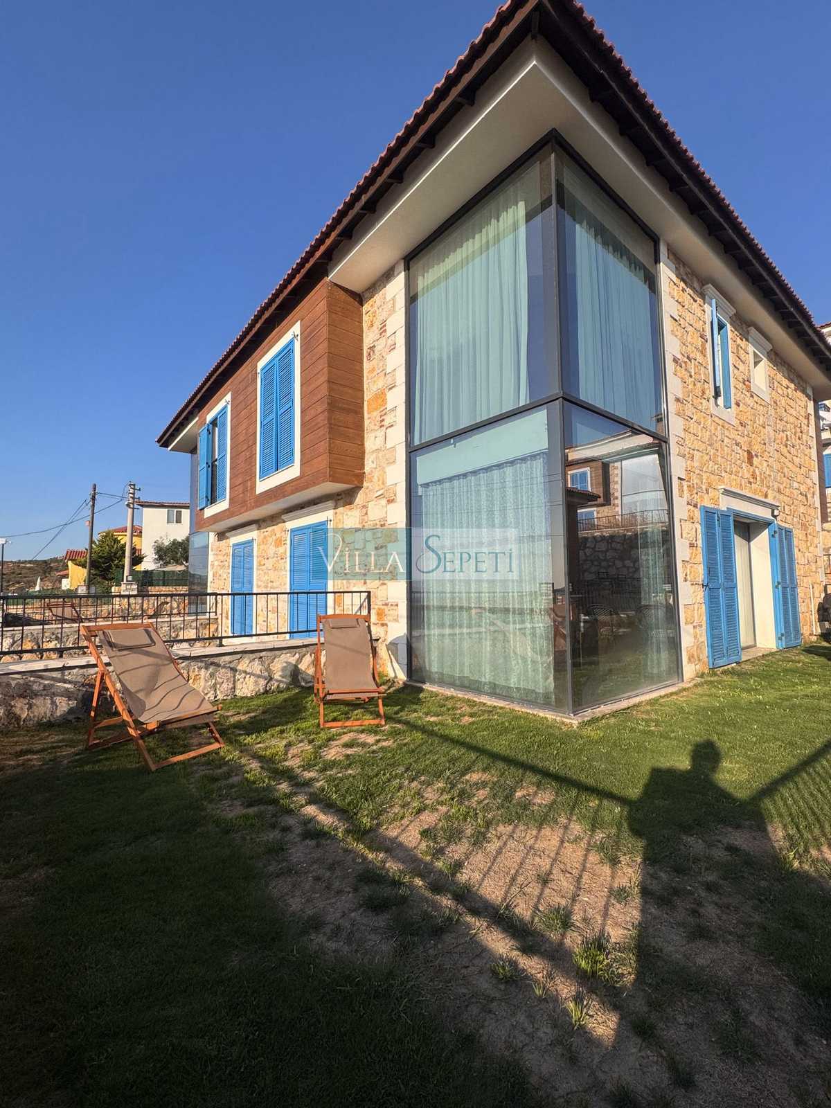 Üç katlı, özel mimari tasarıma sahip Villa Endülüs 1, Yeni Foça mevkiinde konumlanan, kalabalık aileler için ideal, ortak havuzlu bir villa seçeneğidir.