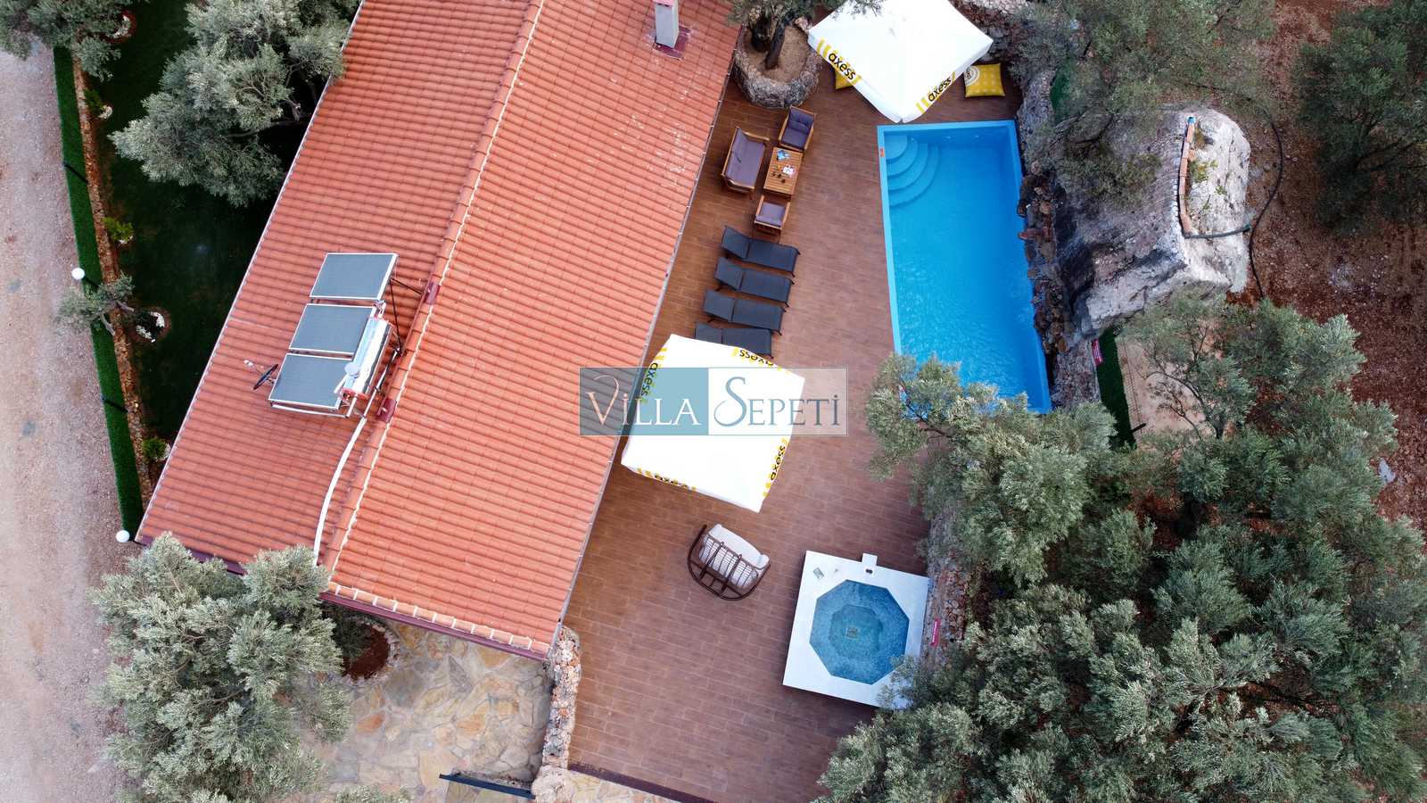 Tamamen sessiz ve sakin, ormanlık bir alan içerisinde konumlanan villamız geniş ve yemyeşil bir bahçe içerisinde yer almaktadır. Ayrıca bahçede bir de jakuzi bulunmaktadır. Villamızın yakın konumunda başka yerleşim yerleri bulunmamaktadır.