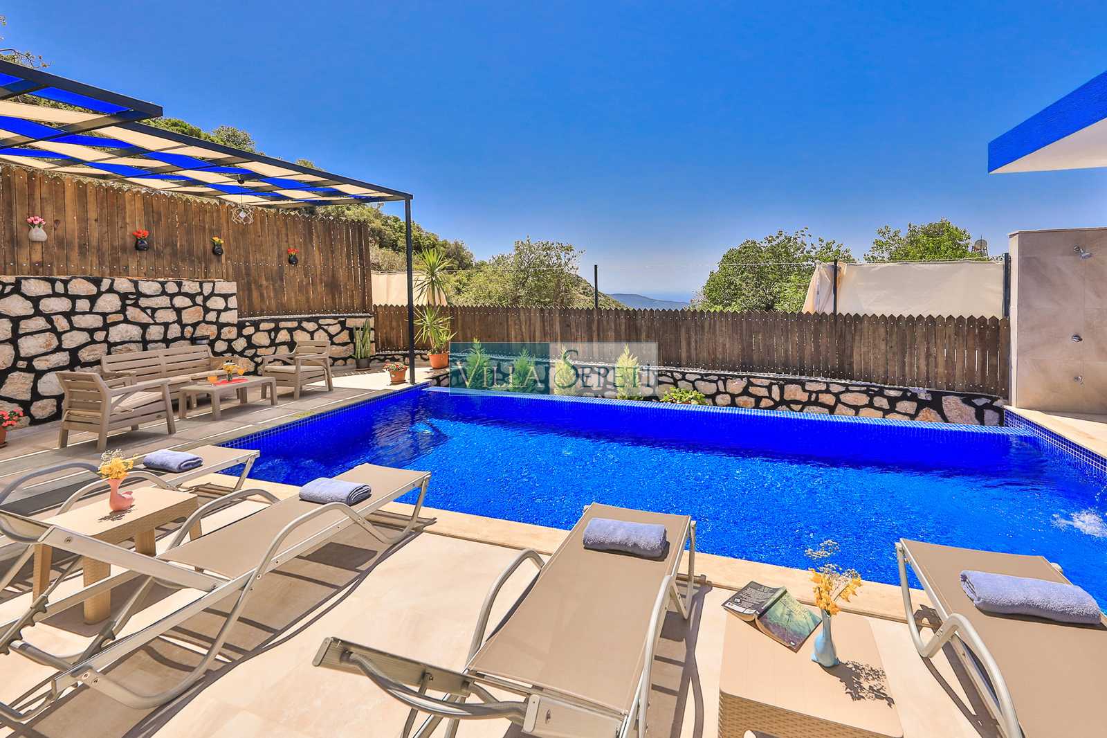 Villa Cangül, Kalkan İslamlar mevkiinde yer alan özel havuzu tam korunaklı villamızdır. Renkli ve keyifli bir iç dizayna sahip olan villamızda, muhafazakar ailelerin ve balayı misafirlerimizin konforu için her şey düşünülerek tasarlanmıştır. Bütün bir yılın yorgunluğunu üzerinden atmak isteyen misafirlerimize, harika bir tatil imkanı sunmaktadır.