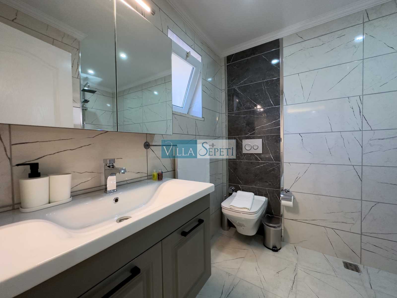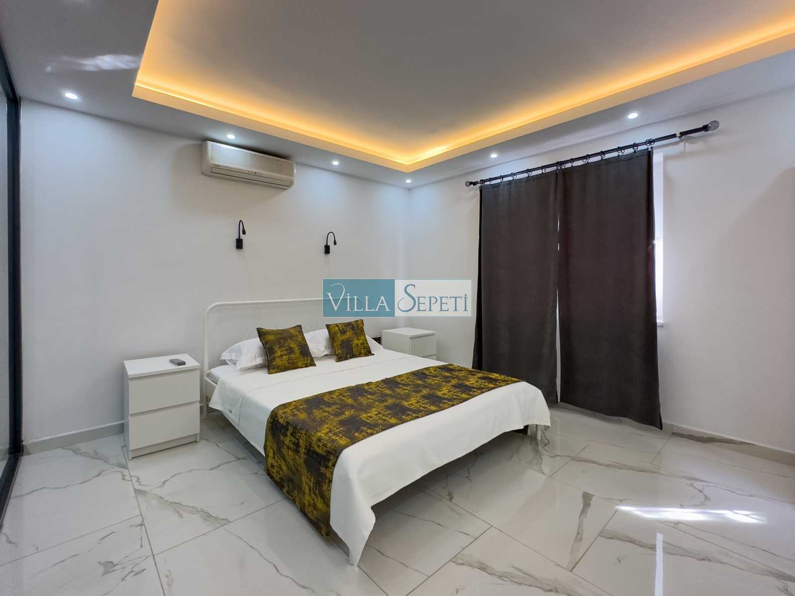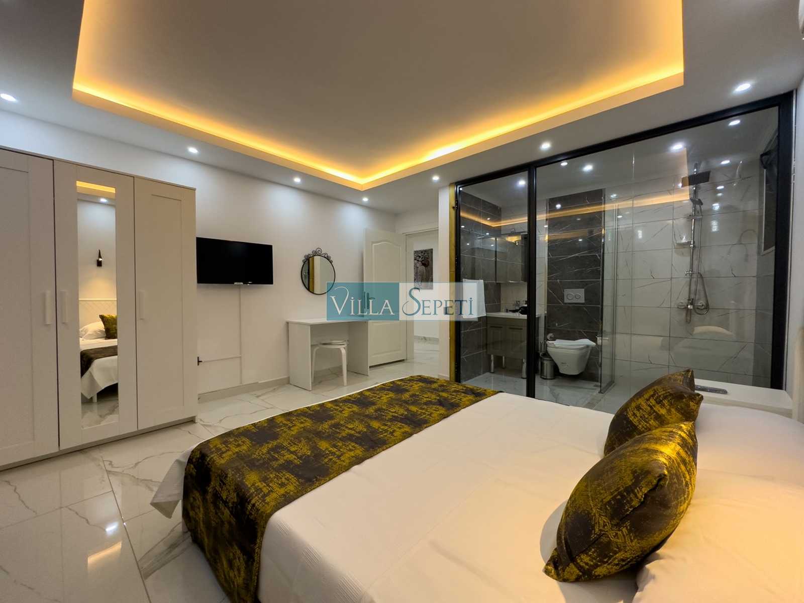 Villamızın beş adet yatak odası ve beş adet banyosu bulunmaktadır. Birinci yatak odası içerisinde bir adet çift kişilik yatak, banyo, jakuzi, klima ve televizyon; İkinci yatak odası içerisinde bir adet çift kişilik yatak, banyo ve klima; Üçüncü yatak odası içerisinde bir adet çift kişilik yatak, banyo, jakuzi, klima ve televizyon; Dördüncü yatak odası içerisinde bir adet çift kişilik yatak, banyo, klima ve televizyon; Beşinci yatak odası içerisinde bir adet çift kişilik yatak, banyo, klima ve televizyon yer almaktadır. Villamızın iki adet salonu bulunmaktadır. İçerisinde mutfak, oturma grubu, klima, televizyon ve bir oda da spor odası olarak kullanılmaktadır.