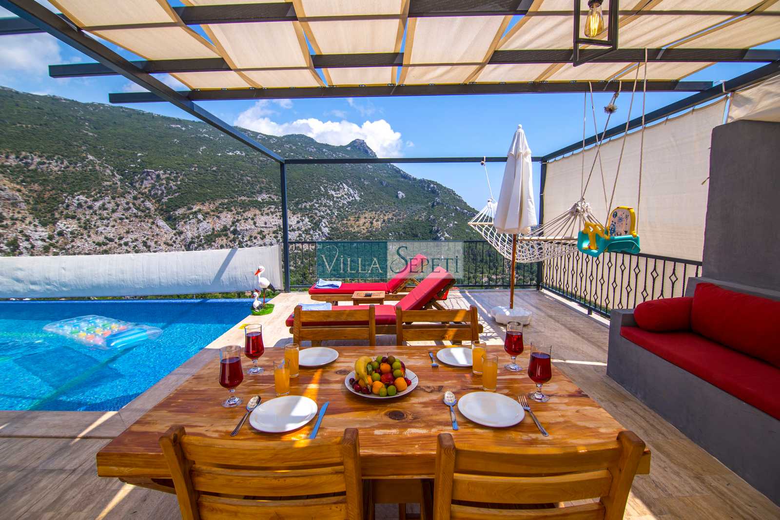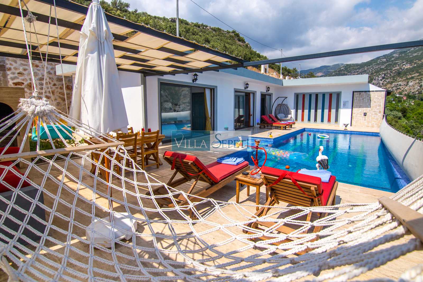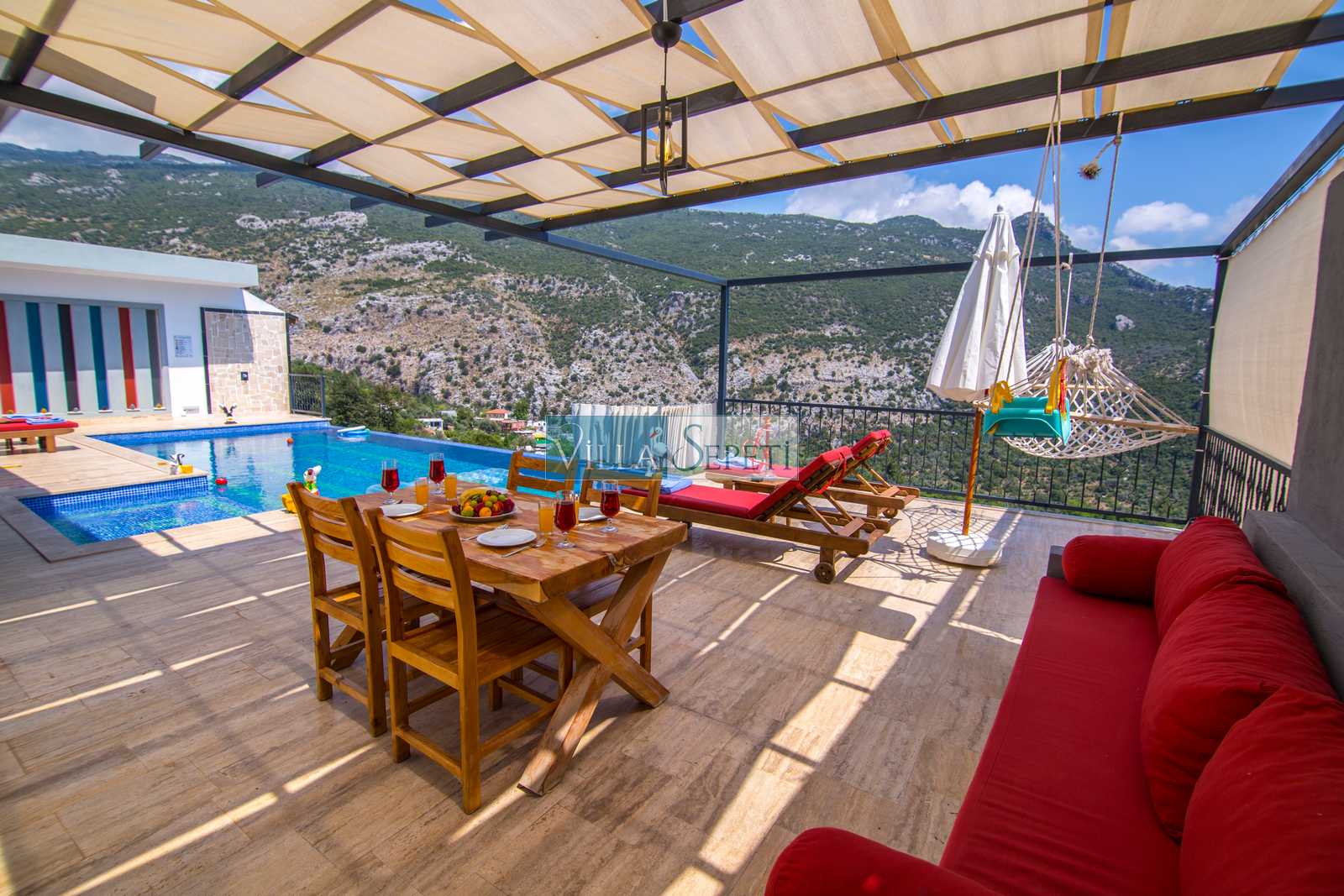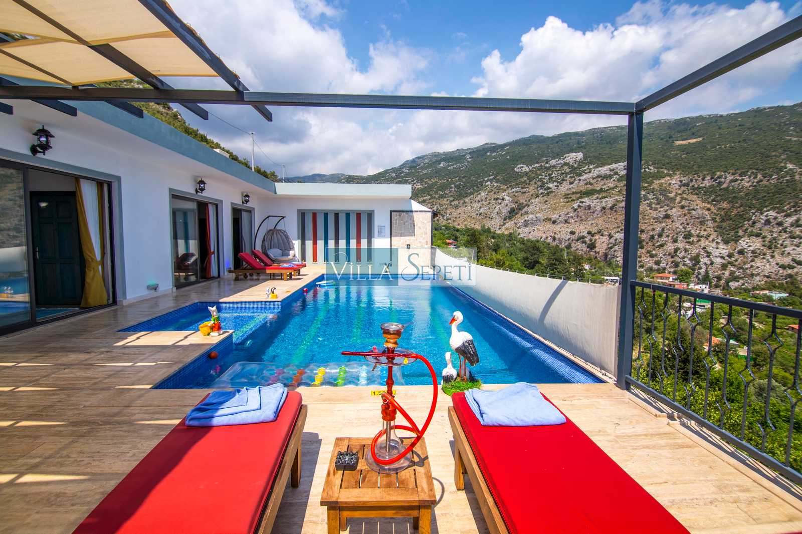 Villa Dimare, Kalkan İslamlar mevkiinde sakin bir konumda yer alan havuzu tam korunaklı villamızdır. Villamız muhteşem bir doğa manzarasına karşı konumlandırılmıştır. Konforlu bir iç mekana sahip olan villamız, kış aylarında dahi rahatlıkla havuz keyfini yaşamanız adına ısıtmalı iç havuz bulunmaktadır.