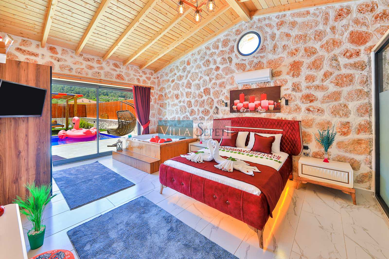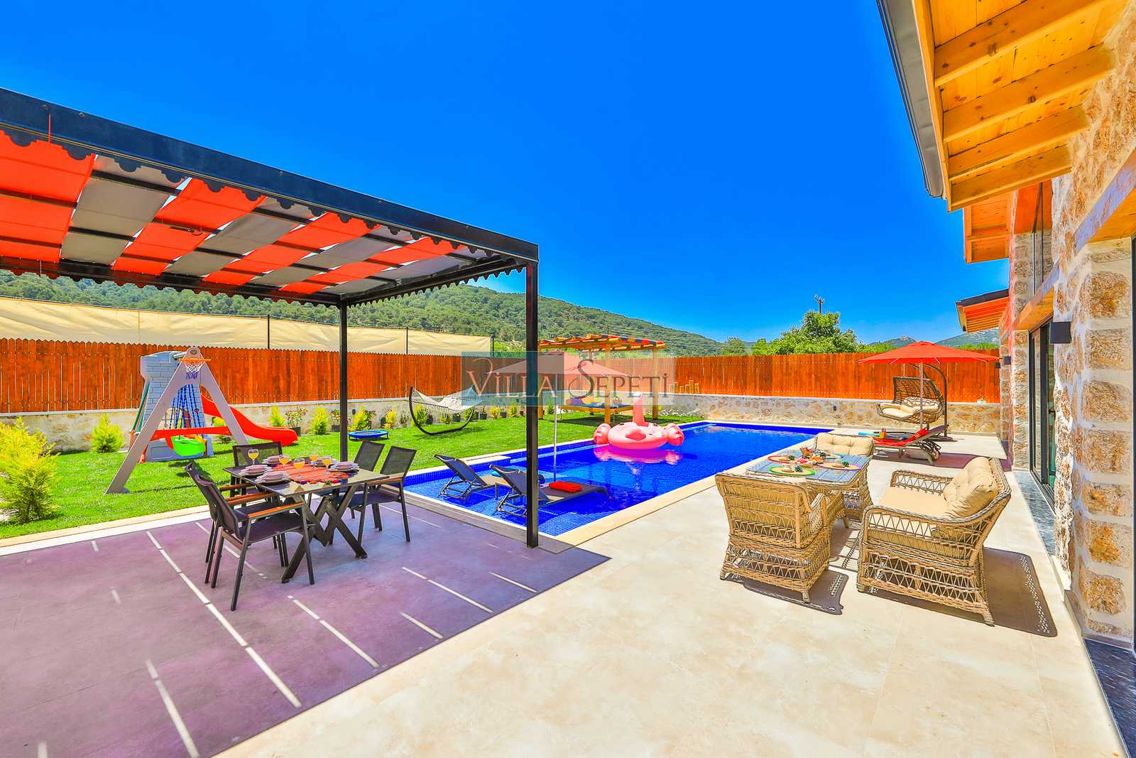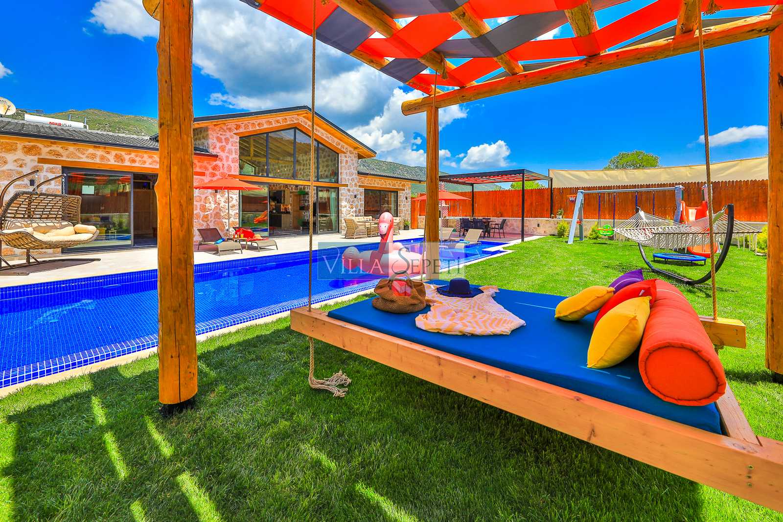 Villa Düşler Bahçesi, Kalkan Sarıbelen mevkiinde yer alan, özel havuzu tam korunaklı villamızdır. Villamız da hamak, çocuk oyun alanı, salıncak ile keyifli bir tatil geçirebilirsiniz. Çekirdek aileler ve balayı çiftleri için ideal olan villamızda size özel havuzu ve jakuzisi sayesinde tüm yılın vermiş olduğu yorgunluğunuzu üzerinizden atabilme fırsatı bulabileceksiniz. Konforlu eşyaları ve modern dizaynı sayesinde tatilinizin hiç bitmemesini isteyeceksiniz.
