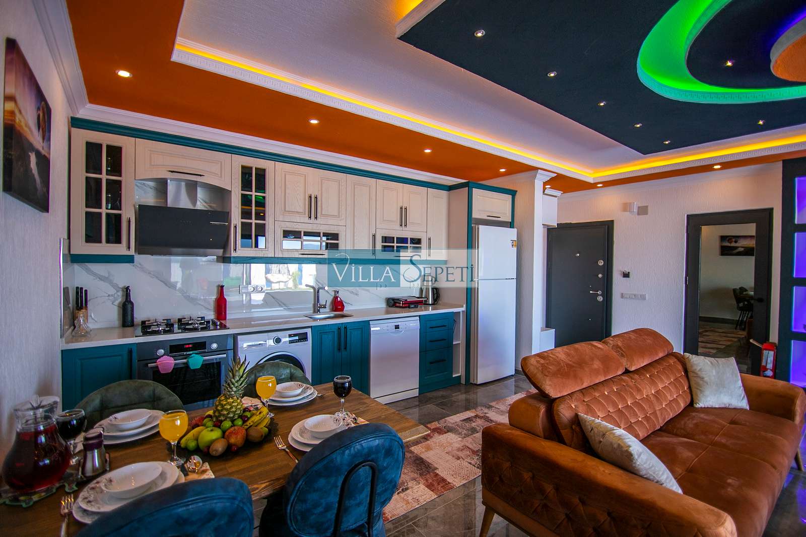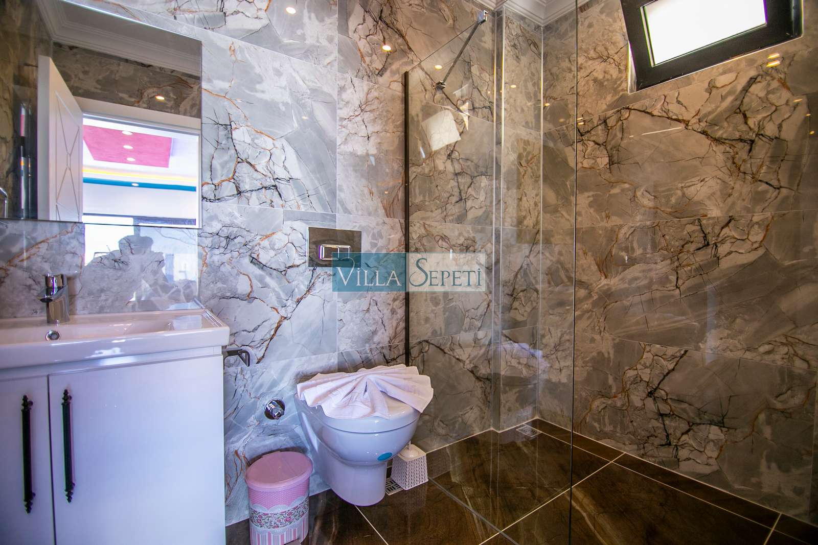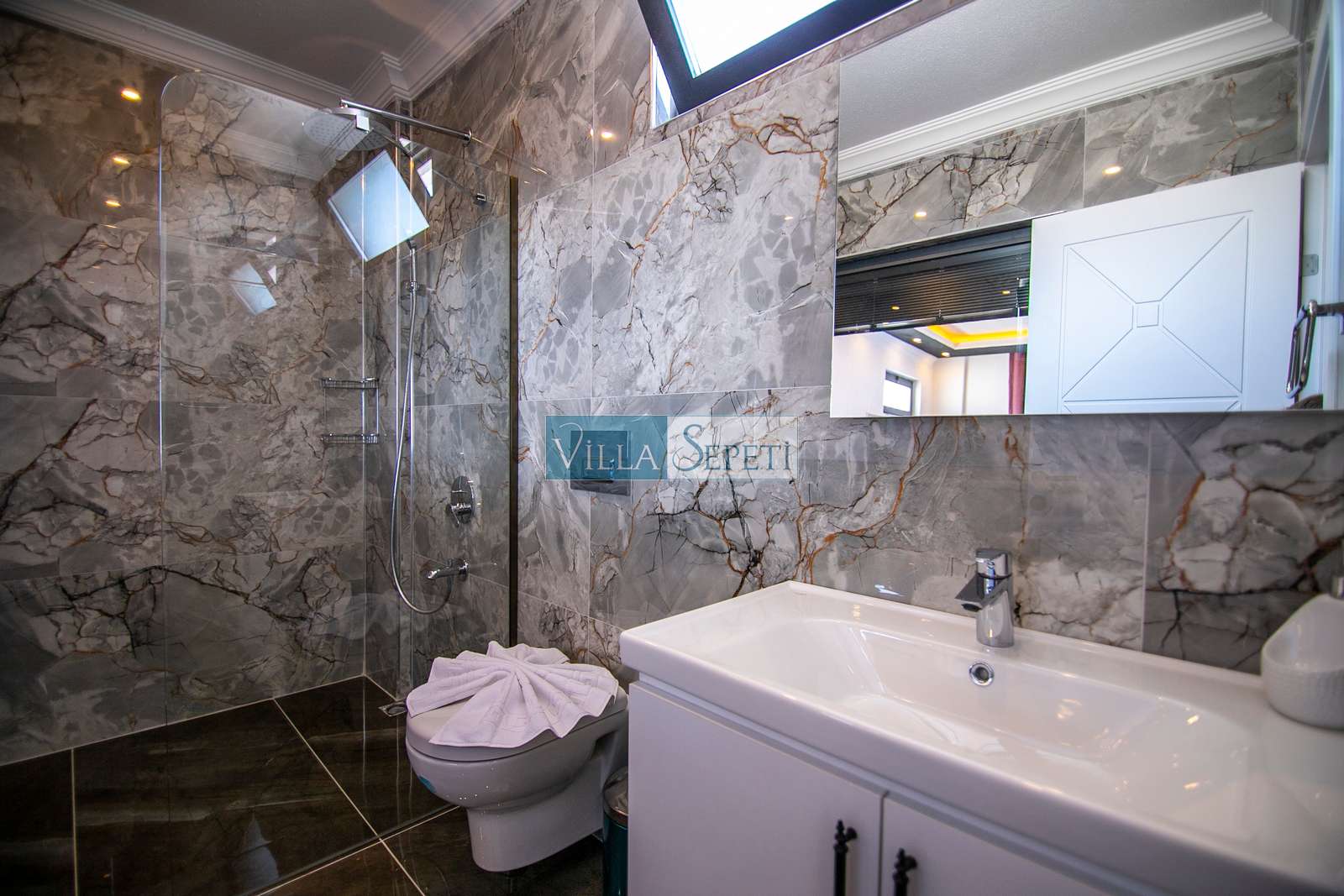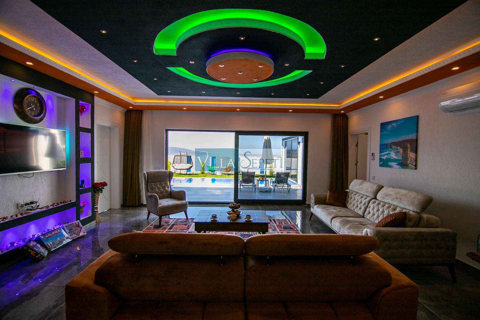 Villamızda iki yatak odası ve iki banyo bulunmaktadır. Birinci yatak odasında çift kişilik yatak, klima, jakuzi, televizyon, ısıtmalı iç havuz ve banyo bulunmaktadır. İkinci yatak odasında ise iki tek kişilik yatak, klima ve banyo yer almaktadır. Salon içerisinde mutfak, oturma grubu, televizyon ve klima mevcuttur.