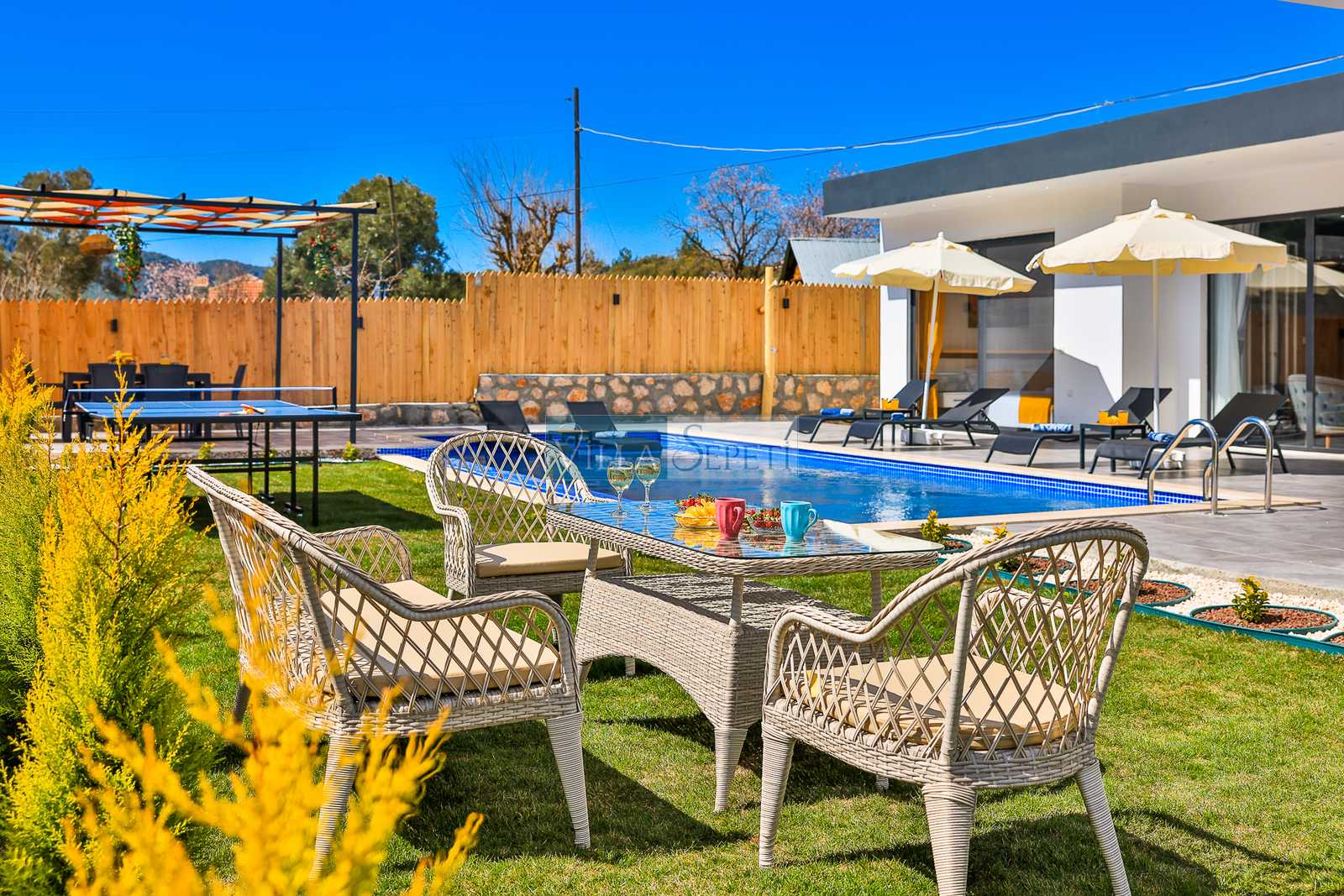 Genel not : Doğa içerisinde konuma sahip olan villalarımızın tamamı böcek ve haşereler için düzenli olarak temizlenmekte ve ilaçlanmaktadır. Doğa içerisinde konuma sahip olan evlerimizde, merkezde yer alan villalara nazaran böcek vb. çıkma ihtimali daha yüksektir. Bu not, bu evle ilgili değil doğa içerisinde konuma sahip olan tüm evlerin bilgilerinde yazılmaktadır.