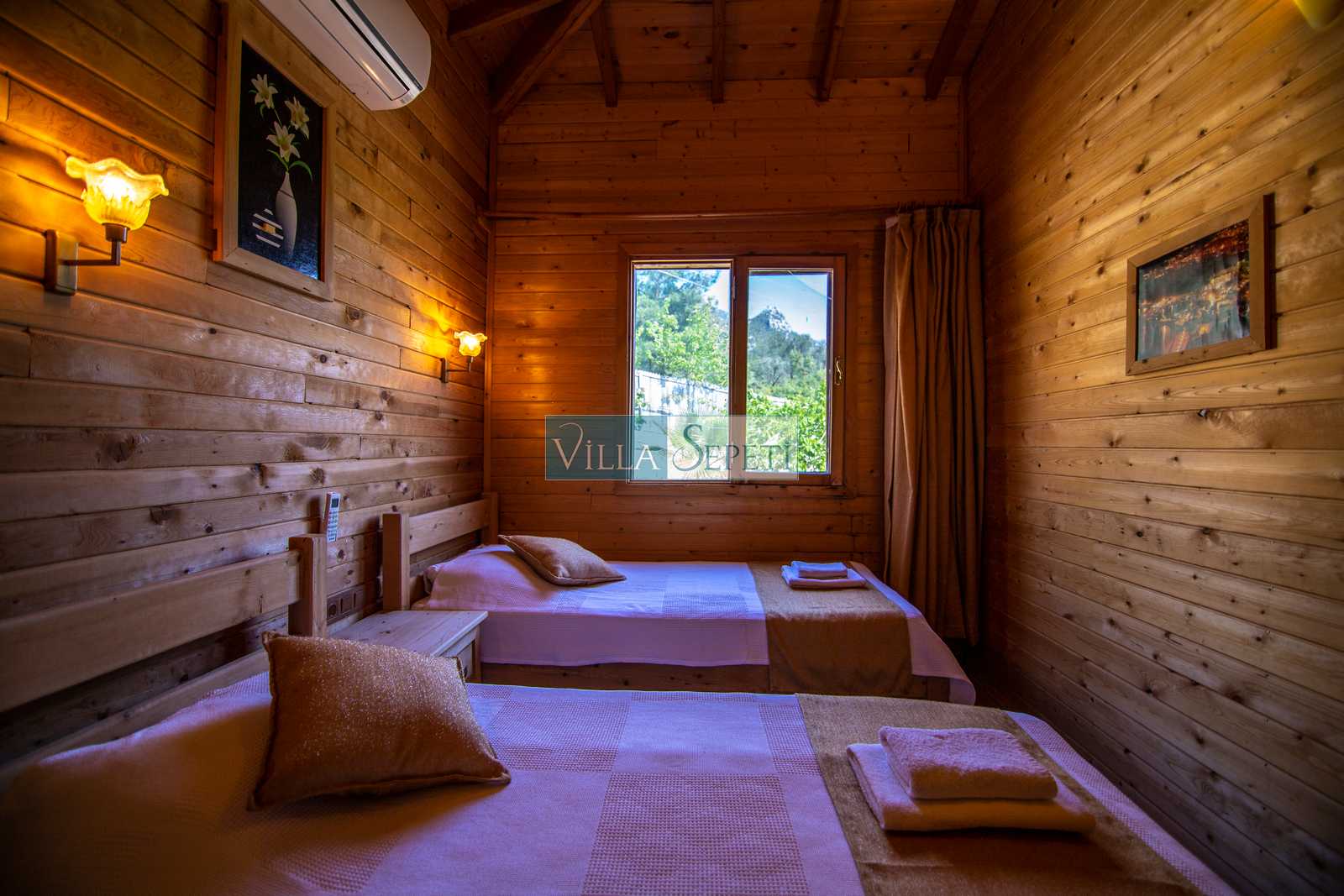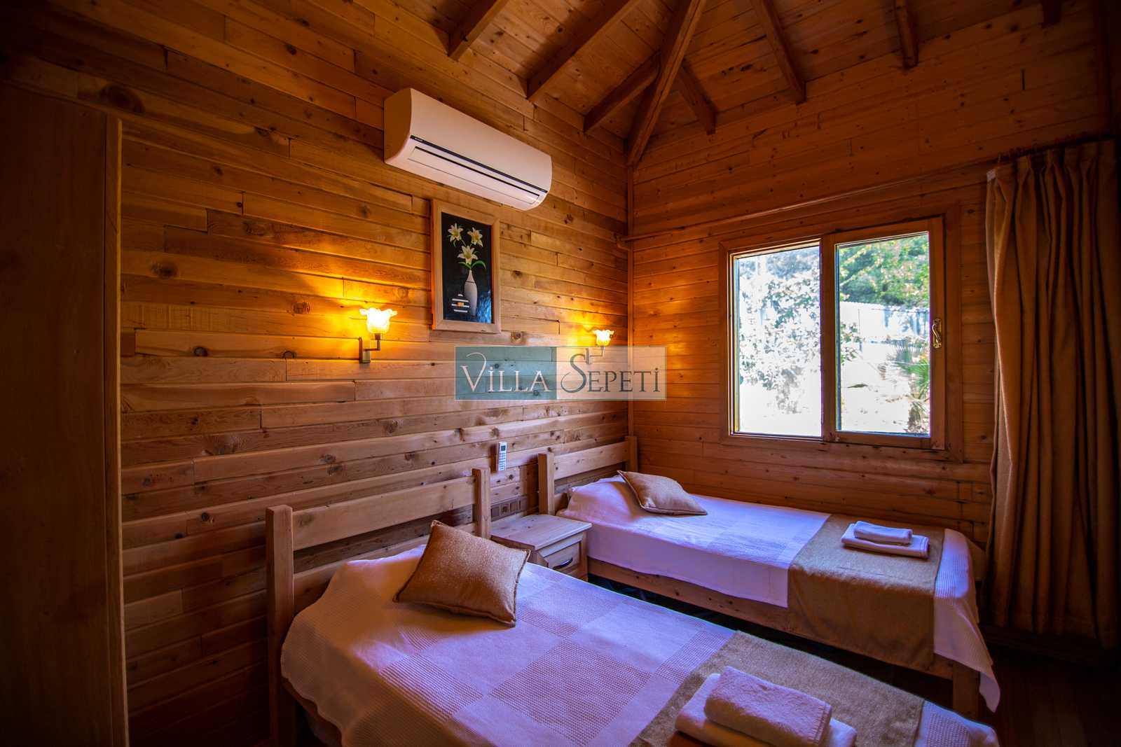 Villamızda iki yatak odası iki adet banyo bulunmaktadır. Birinci yatak odasında çift kişilik yatak, klima, jakuzi ve banyo bulunmaktadır. İkinci yatak odasında ise iki adet tek kişilik yatak, klima yer almaktadır. Salon içerisinde mutfak, oturma grubu, televizyon, banyo ve klima mevcuttur.