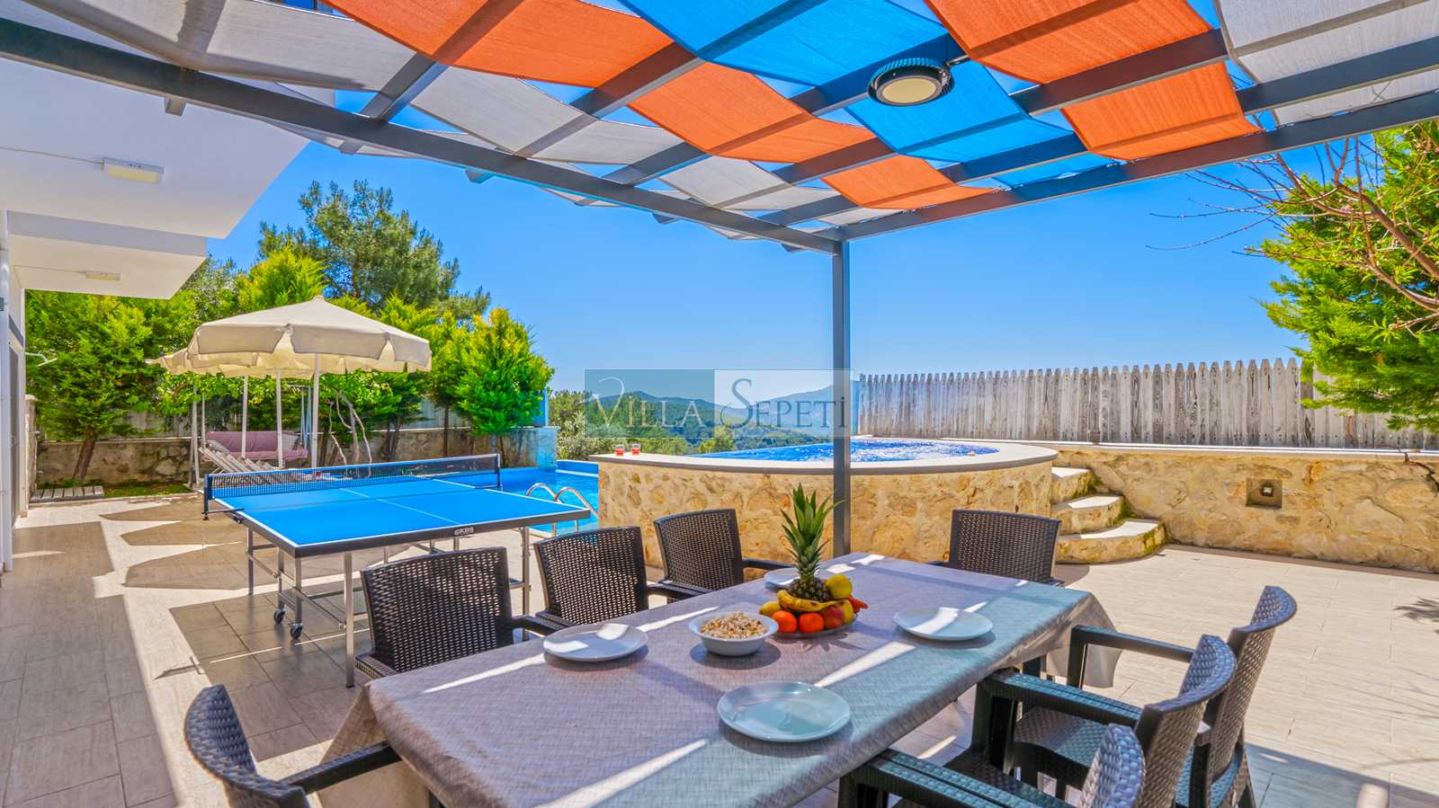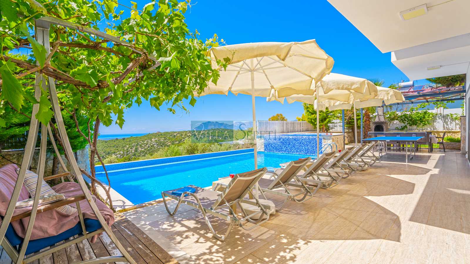 Villa Nogay, Üzümlü Köyü'nde yer alan 4 yatak odasına sahip çok özel ve güzel tatil villasıdır. Bu evimiz için mutluluk garantili bir ev demek yanlış olmaz her sene düzenlenen Villa Sepeti Ödüllerinden yorum notu kategorisinde defalarca ödül kazanmıştır. İslamlar Köyü'nün hemen yanında yer alan Üzümlü Köyü'nde muhteşem bir doğa içerisinde bulunan 8 kişi kapasiteli villamızın oldukça geniş bir müstakil yüzme havuzu bulunmaktadır ve bu havuz dışarıya karşı tamamen korunaklıdır. Bu özelliği ile villamızda gönlünüze göre bir tatili özgürce yaşayabilirsiniz.