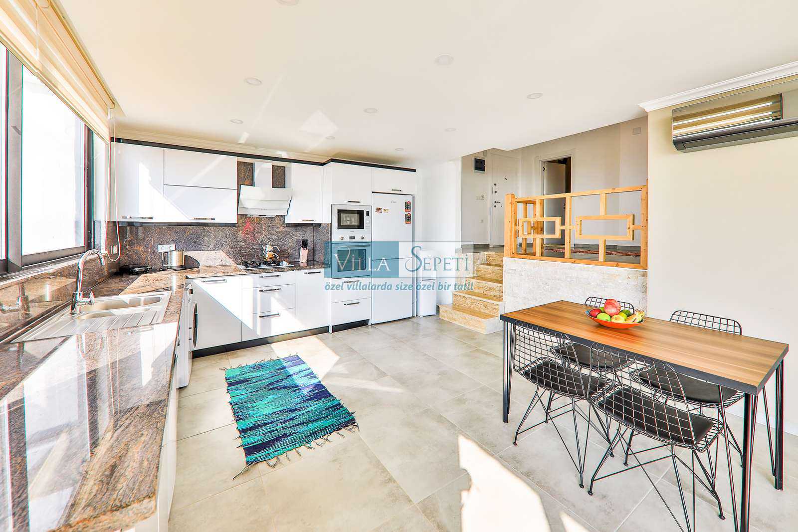 Açık mutfak salon özelliklere sahip villamızın havuz terasından kısmi deniz manzarasının tadını çıkarabilirsiniz. Kalkan merkeze yakın olan villamız, sakin bir konumda olup romantik bir tatil geçirmek isteyen çiftlerimiz için özel dizayn edilmiştir.