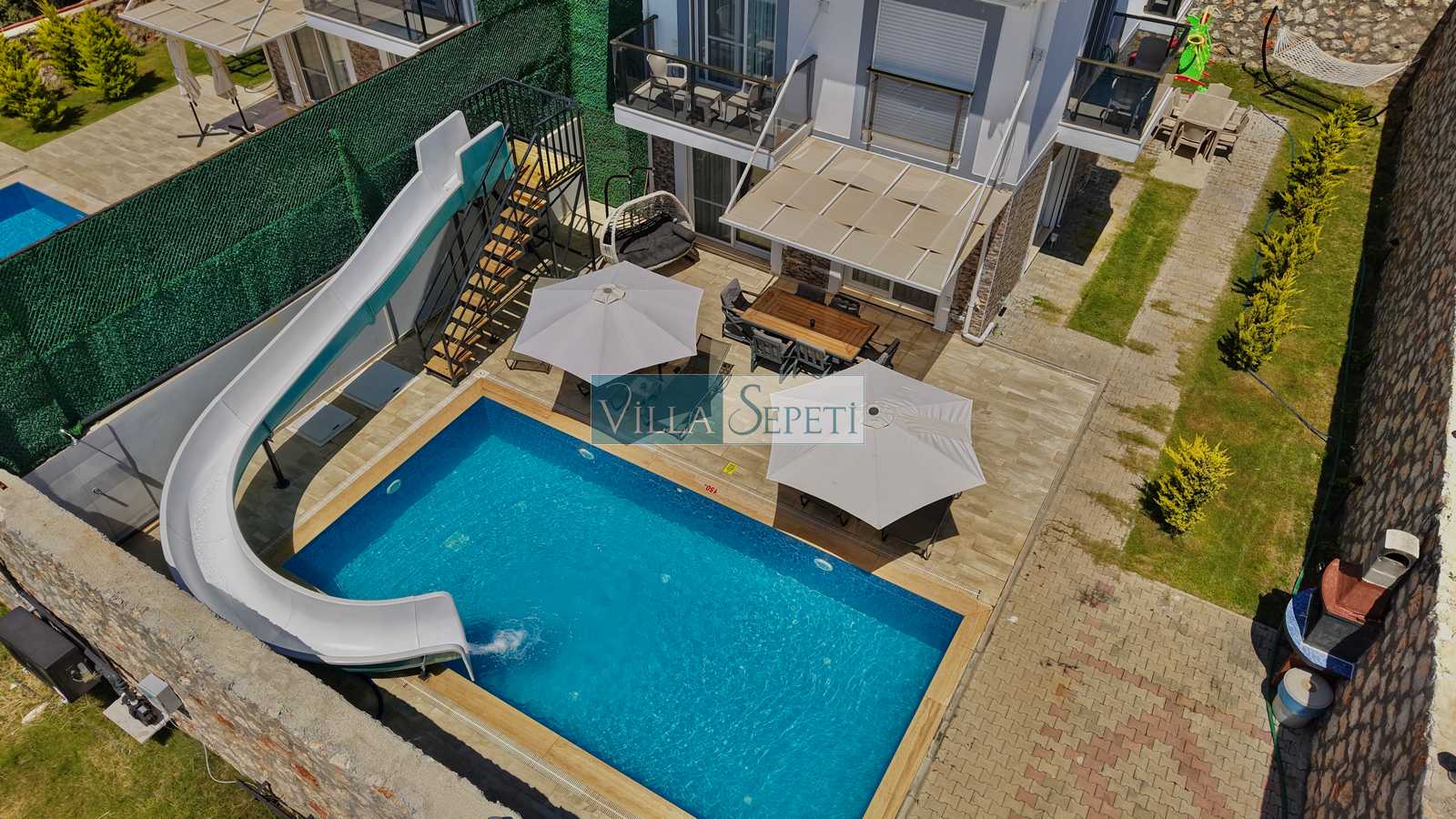 Not 1: Yan tarafta bulunan Villa Panteon 2 ile villamızın havuzları, bahçeleri ve girişleri birbirinden bağımsızdır. Villalarımızın takvimi müsait olduğu takdirde ikisini aynı anda kiralama imkanı bulunmaktadır.