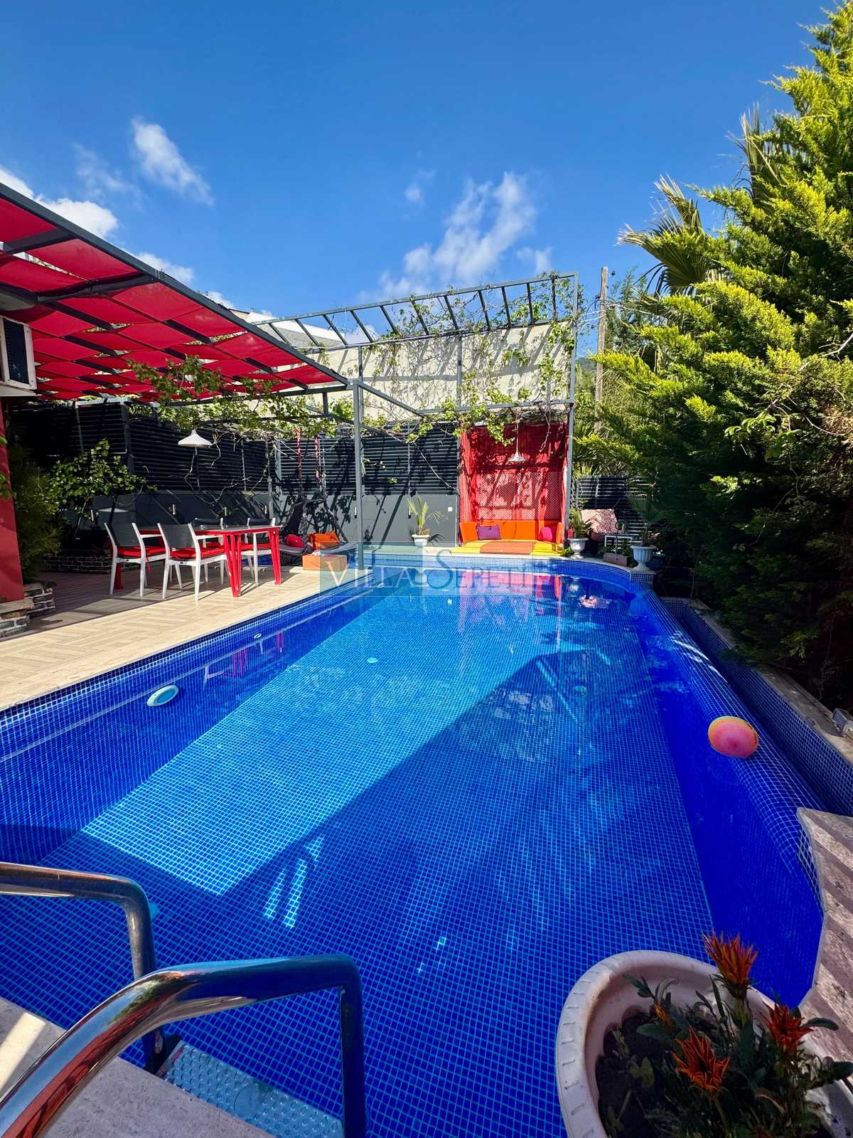 Villa Renk, İslamlar Köyü'nde yer alan özel havuzu tam korunaklı çok şirin bir balayı villamızdır. Tek yatak odalı olan villamızın çok güzel bir tasarımı bulunmaktadır. Renkli bir tasarıma sahip evimizin bahçe şemsiyelerle dekore edilmiştir.