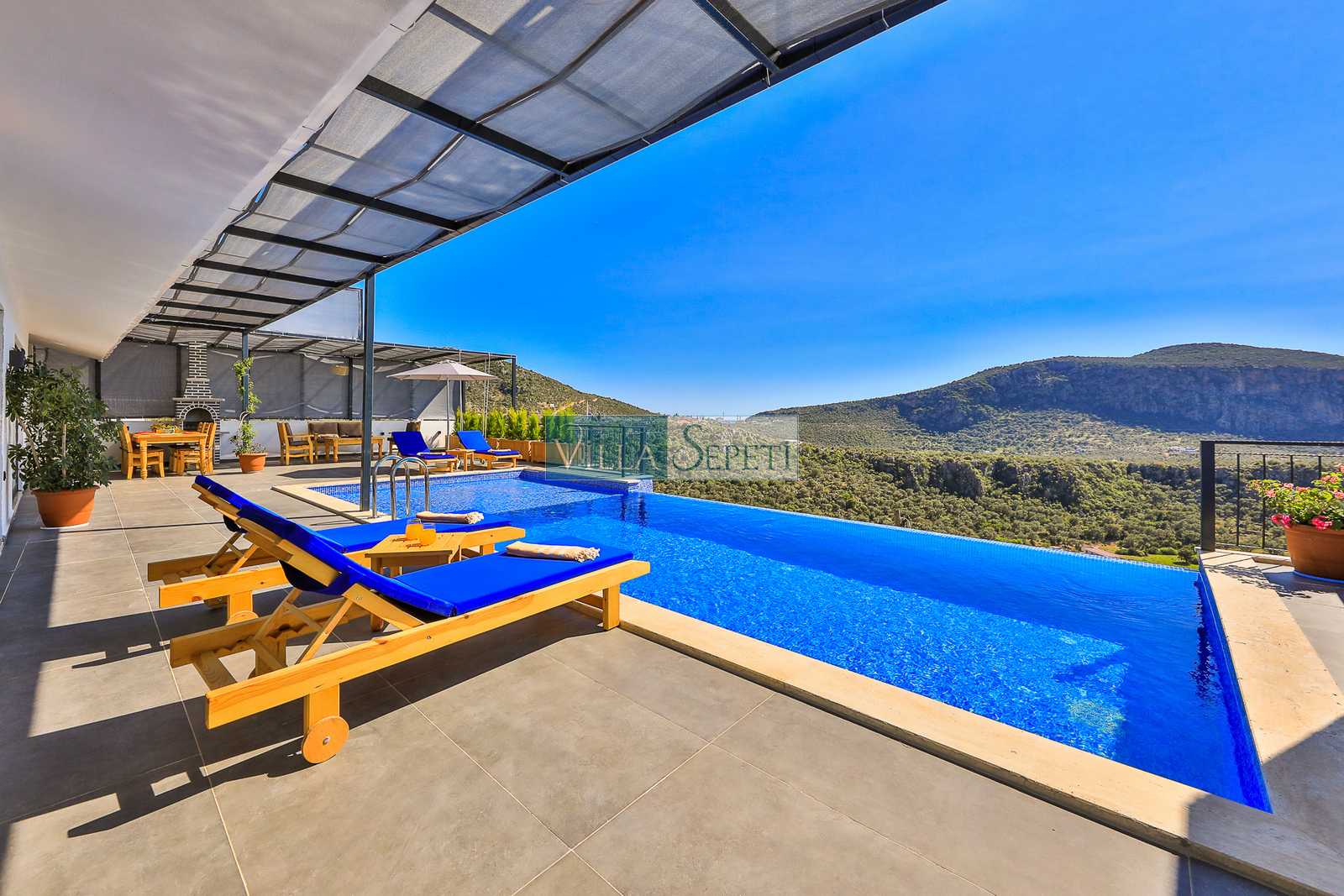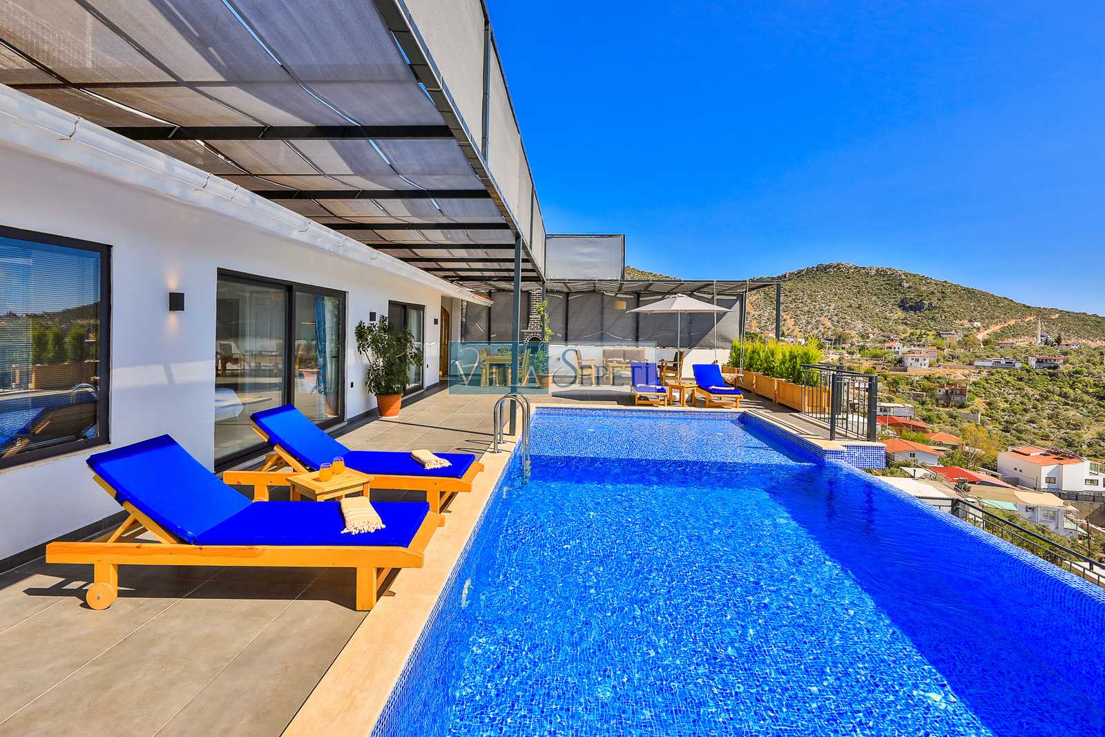 Villa Strabon, Kalkan Ulugöl mevkiinde konumlanan, özel havuzu tam korunaklı villa seçeneğimizdir. İki yatak odalı olup, 4 kişilik kapasiteye sahiptir. Misafirlerimizin rahat edebilmesi için mobilyaları özenle, konforlu bir şekilde seçilmiştir. Doğa manzarasında sahip villamızın havuzunun tam korunaklı olması sayesinde ise muhafazakar ailelere oldukça uygundur.