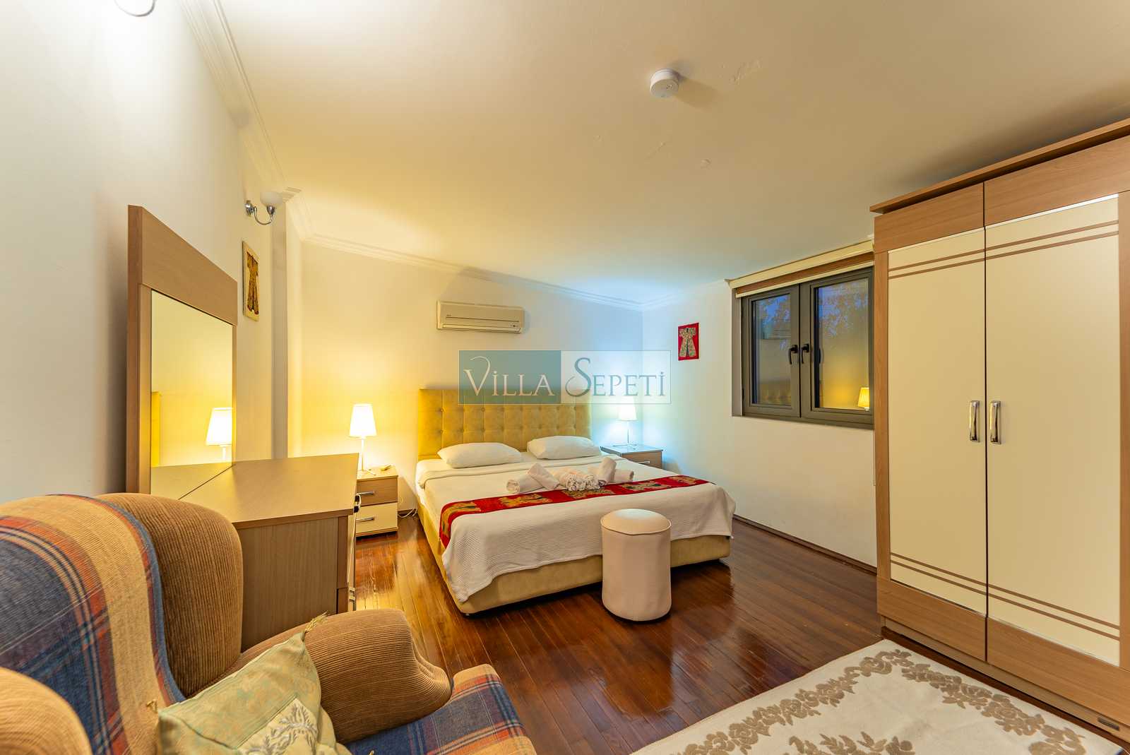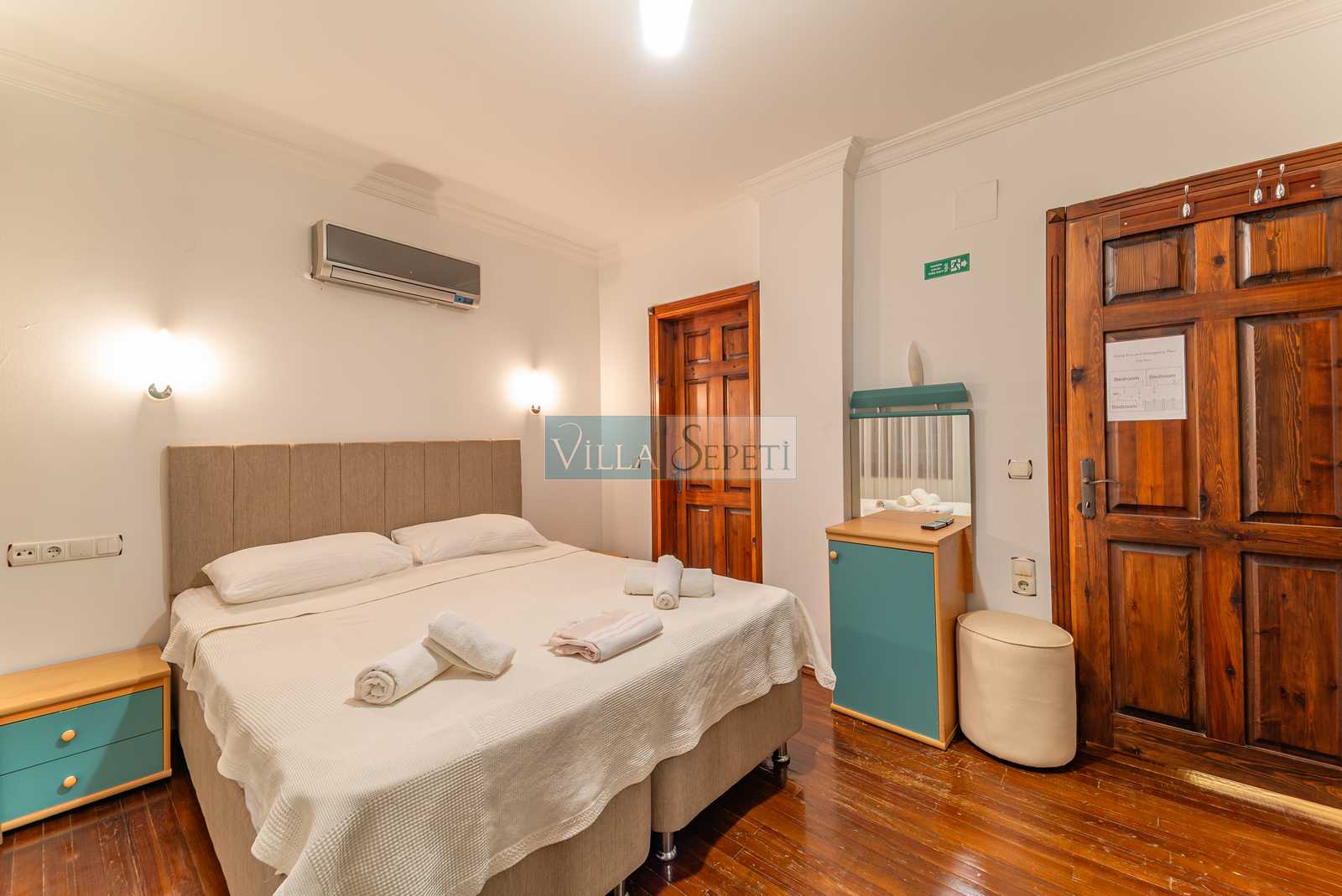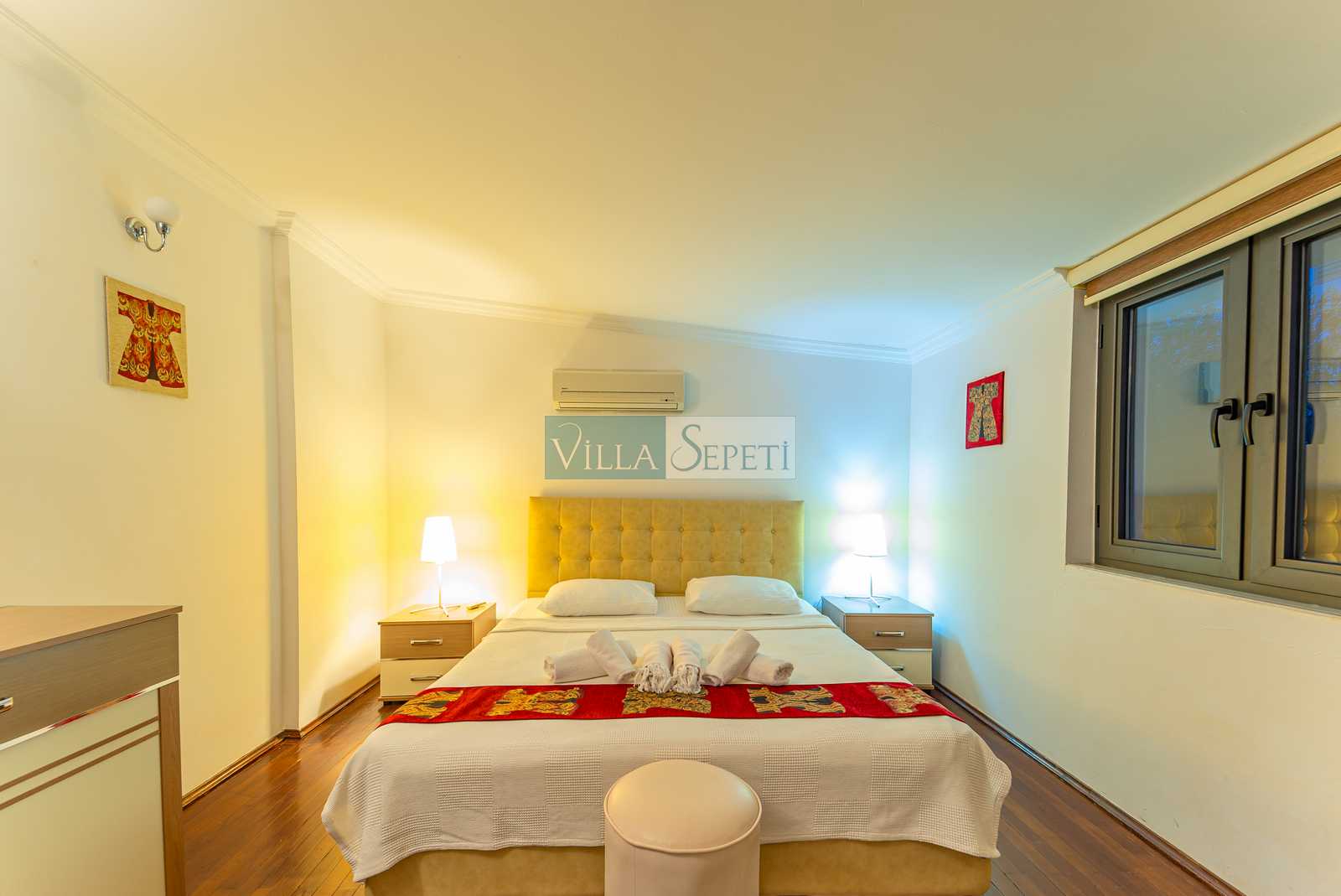 ÖNEMLİ NOT: Nisan, Mayıs, Eylül, Ekim tarihlerinde yapılan konaklamalar da misafirler iki veya dört kişi olarak gelir ise villanın sadece iki yatak odası aktif olacaktır. Bu yatak odalarının içerisinde bir çift kişilik yatak, banyo ve klima bulunmaktadır. Bunlarda üçüncü ve ikinci katta yer almaktadır.
