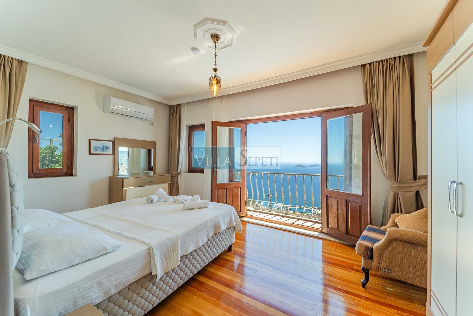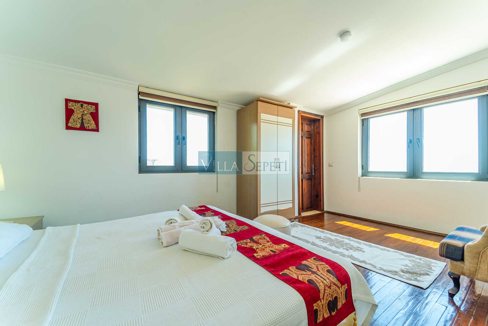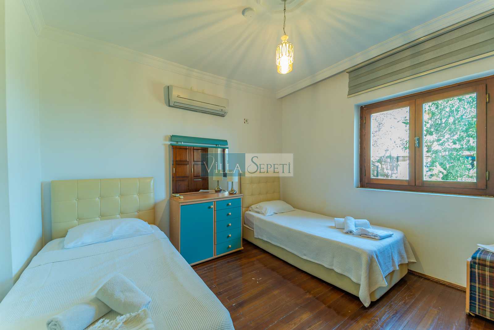 ÖNEMLİ NOT: Nisan, Mayıs, Eylül, Ekim tarihlerinde yapılan konaklamalar da misafirler iki veya dört kişi olarak gelir ise villanın sadece iki yatak odası aktif olacaktır. Bu yatak odalarının içerisinde bir çift kişilik yatak, banyo ve klima bulunmaktadır. Bunlarda üçüncü ve ikinci katta yer almaktadır.
