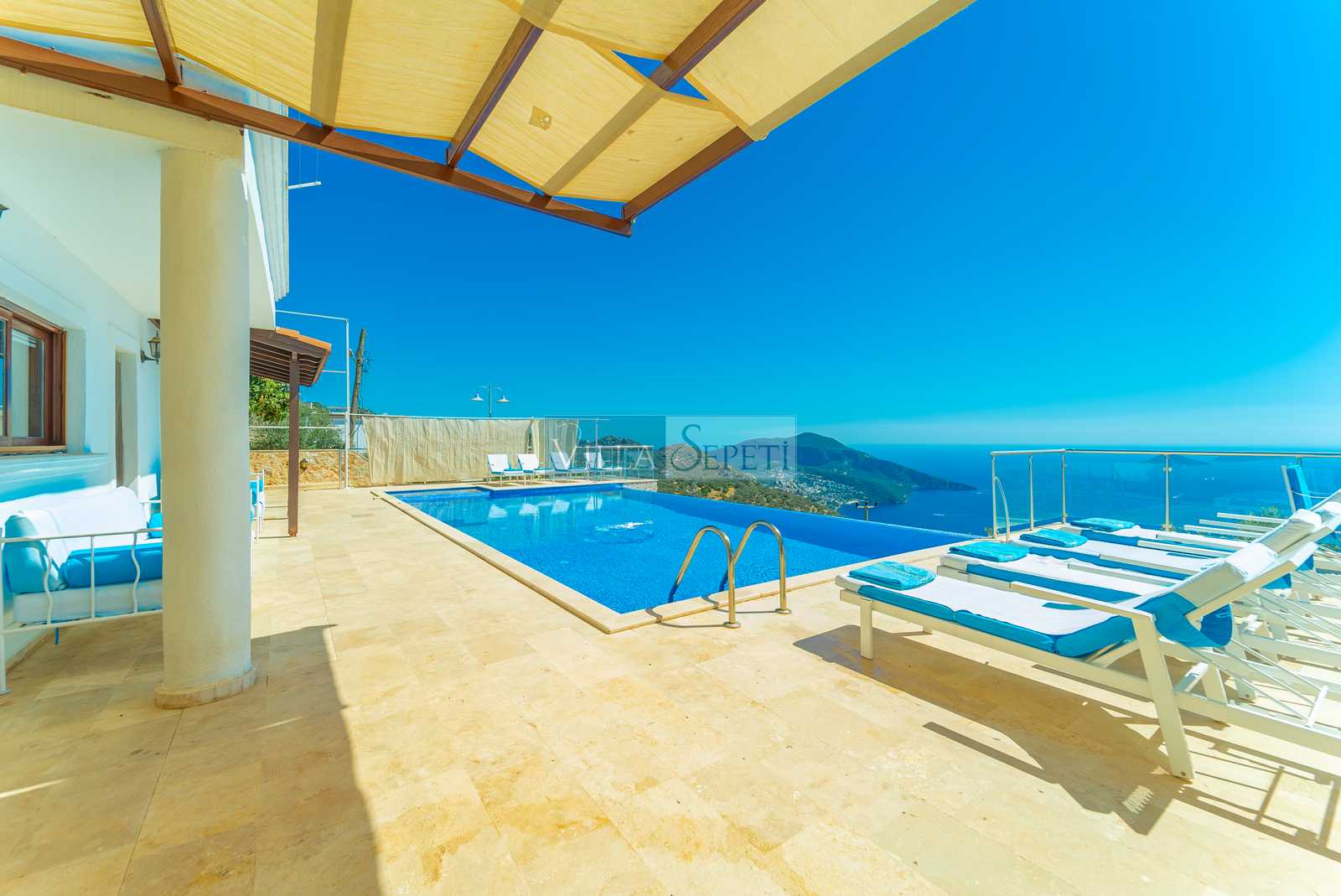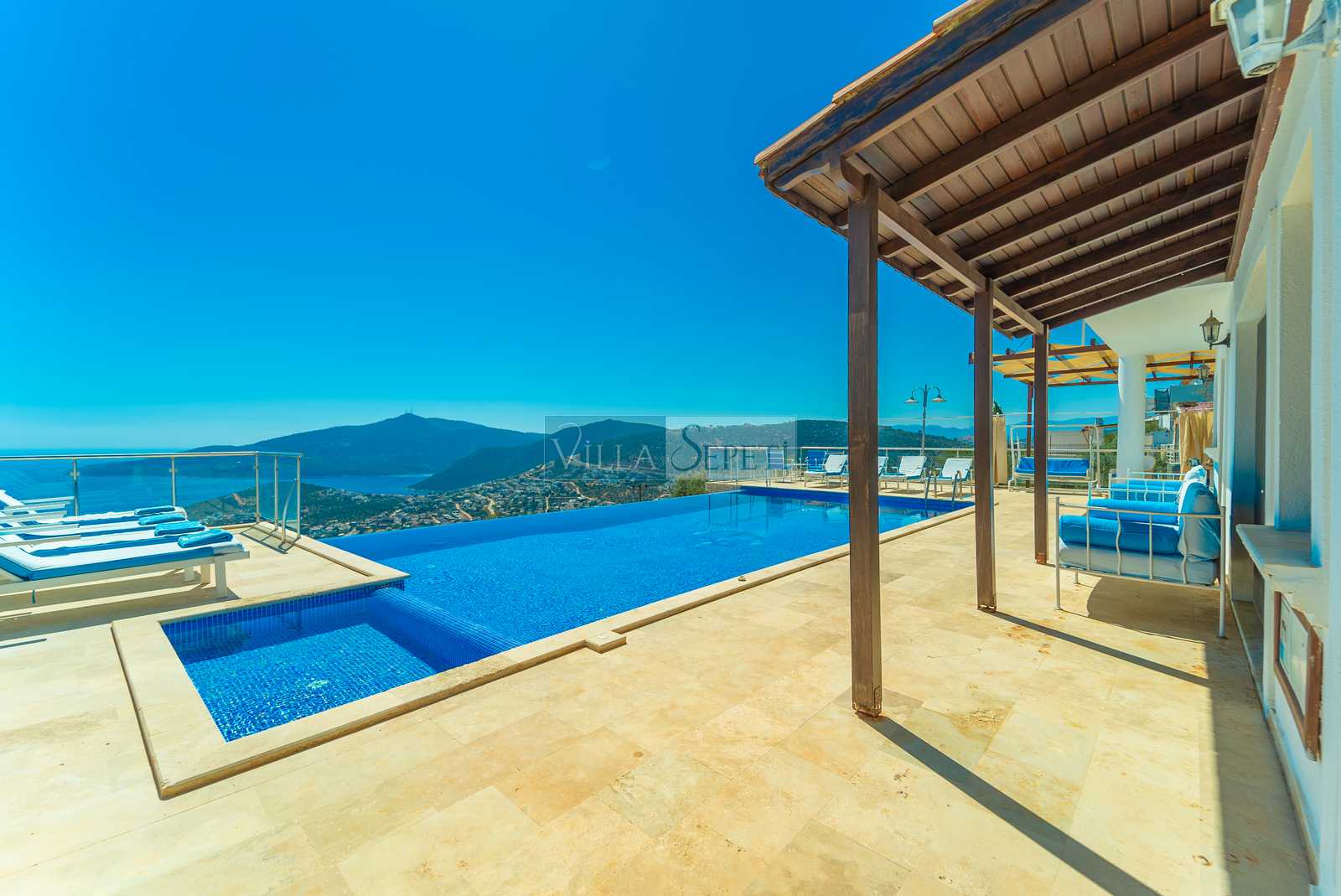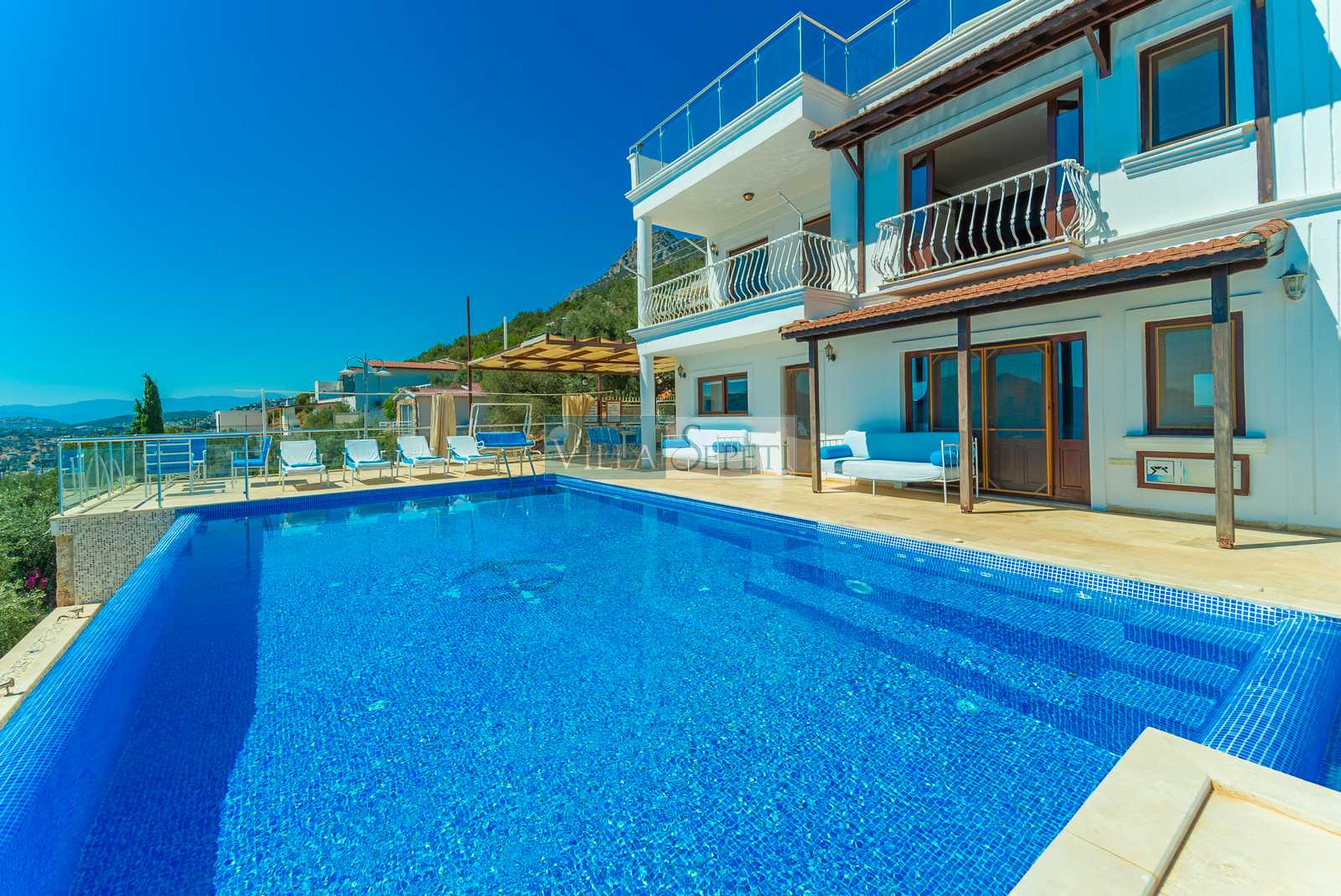Villa Tesir, Kalkan Kördere mevkiinde konumlanan özel havuzlu villamızdır. Muhteşem bir manzaraya karşı konumlanan villamızın çok geniş bir havuz terası bulunmaktadır. Kalabalık aileler için ideal olan villamız, standart bir iç donanıma sahiptir.