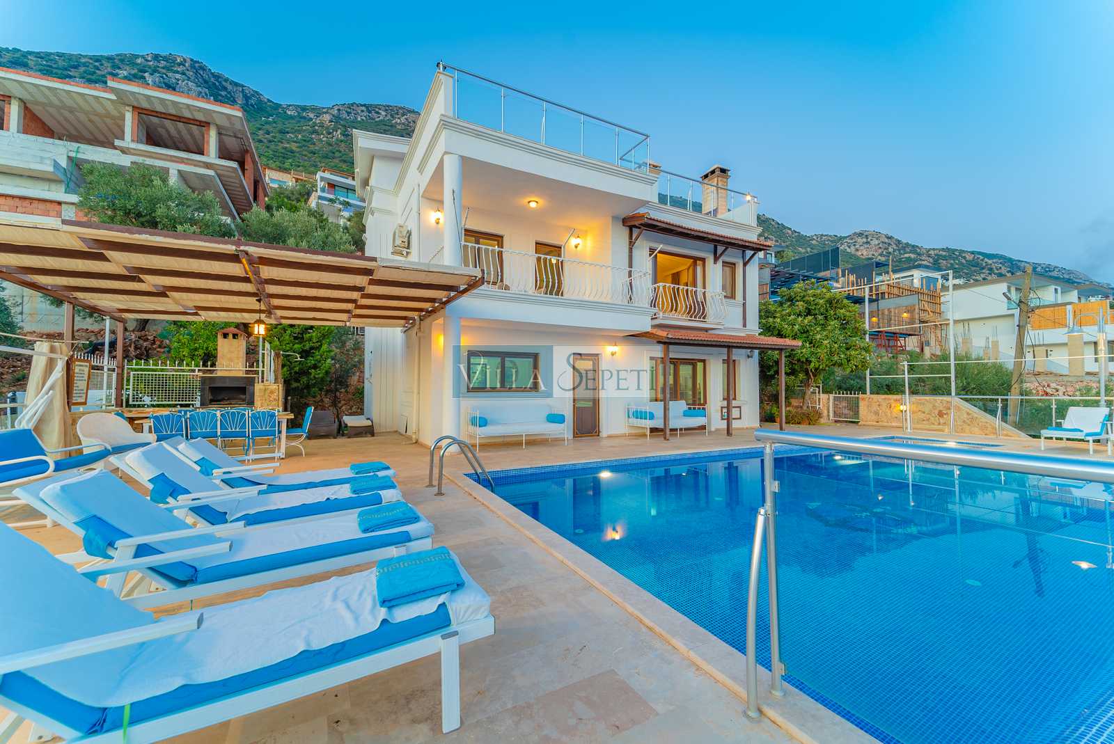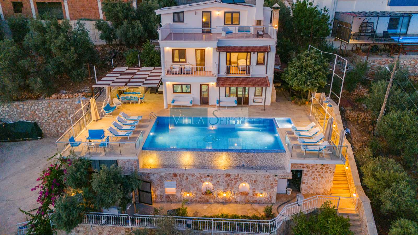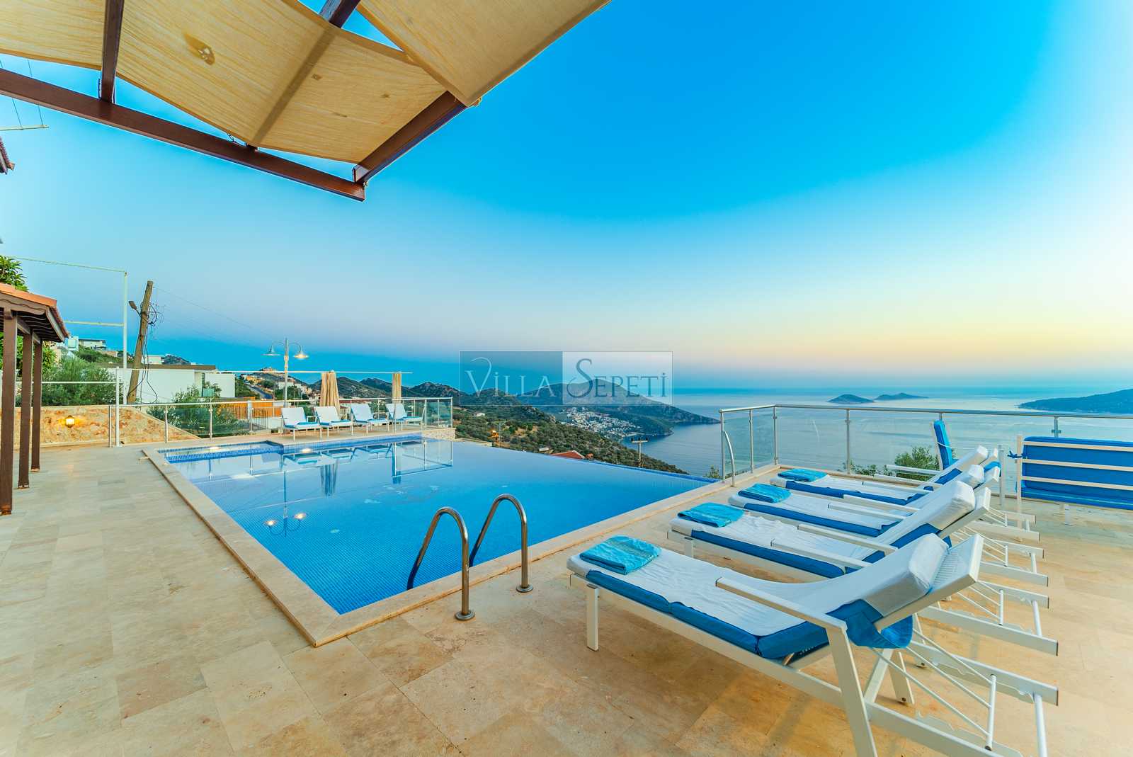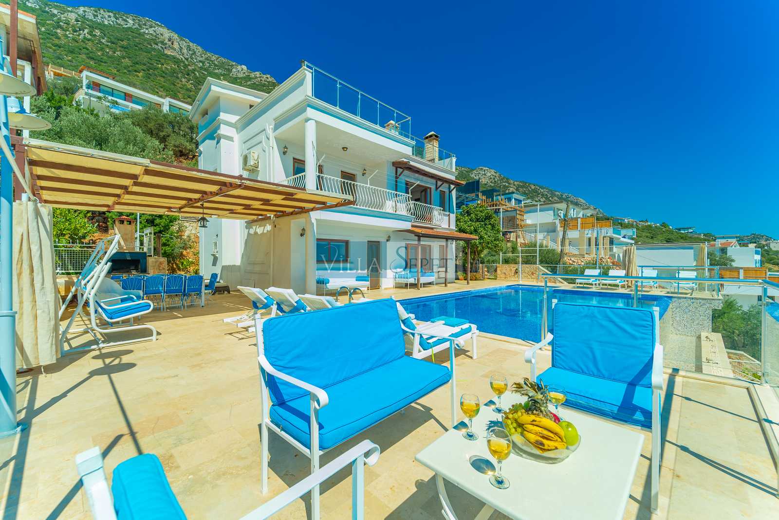Villa Tesir, Kalkan Kördere mevkiinde konumlanan özel havuzlu villamızdır. Muhteşem bir manzaraya karşı konumlanan villamızın çok geniş bir havuz terası bulunmaktadır. Kalabalık aileler için ideal olan villamız, standart bir iç donanıma sahiptir.
